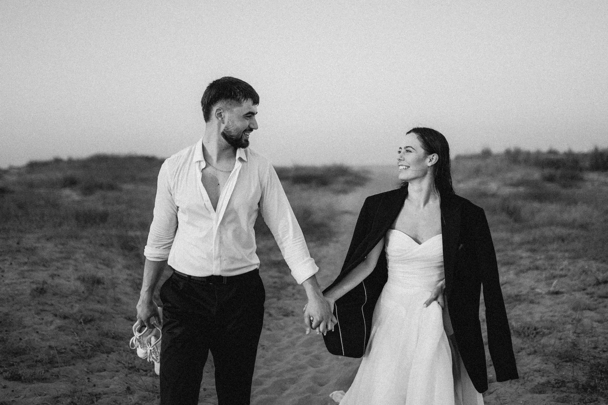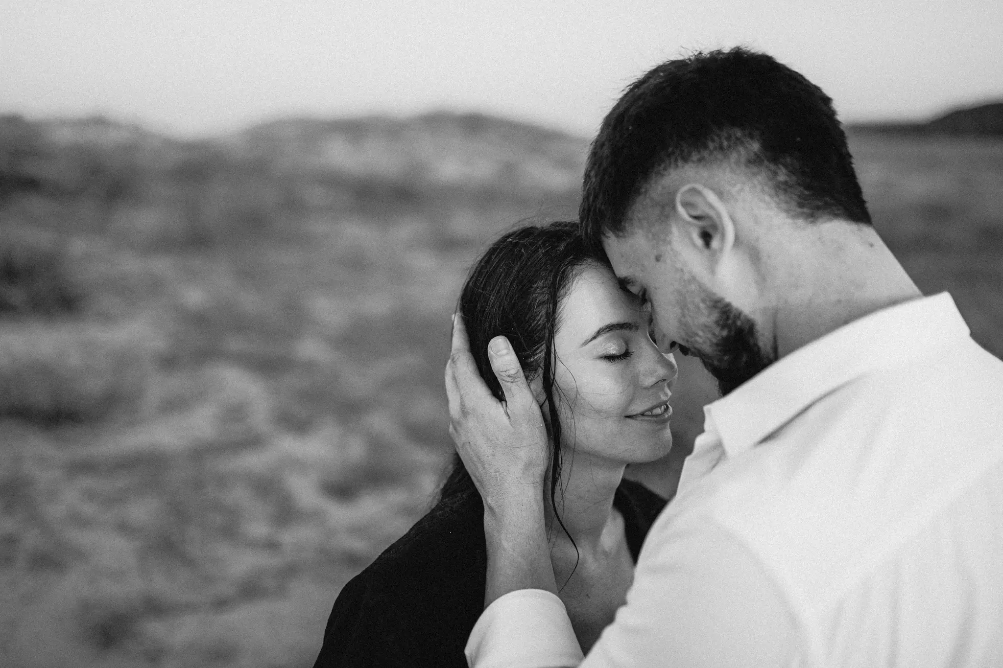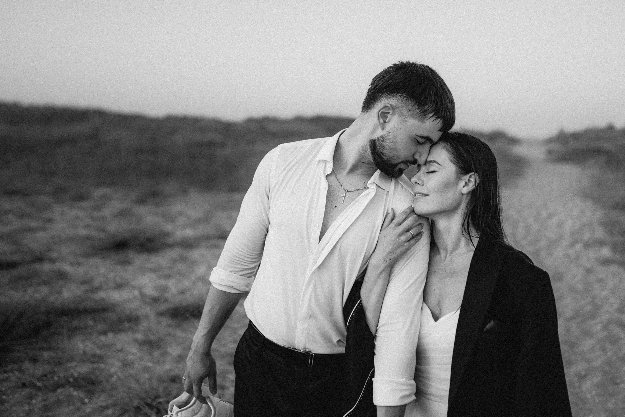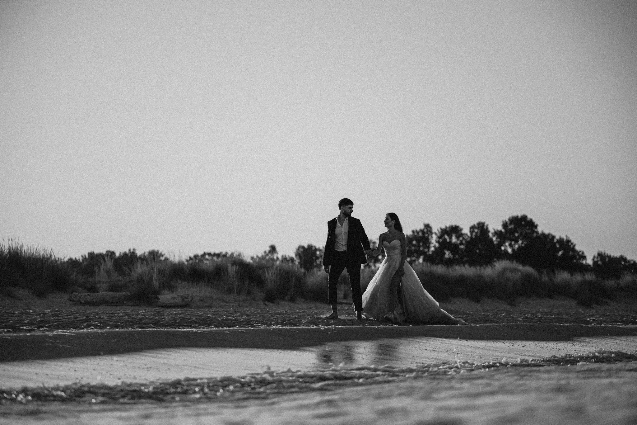 Тази следсватбена фотосесия беше различна – цялата история е разказана в черно-бели кадри. Избрахме този стил, защото той маха всичко излишно и оставя само най-важното – емоцията. В черно-бялата фотография погледите са по-дълбоки, докосванията по-истински, а моментите – извън времето.