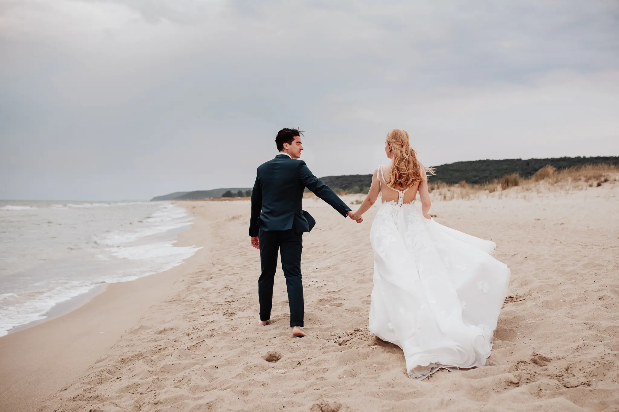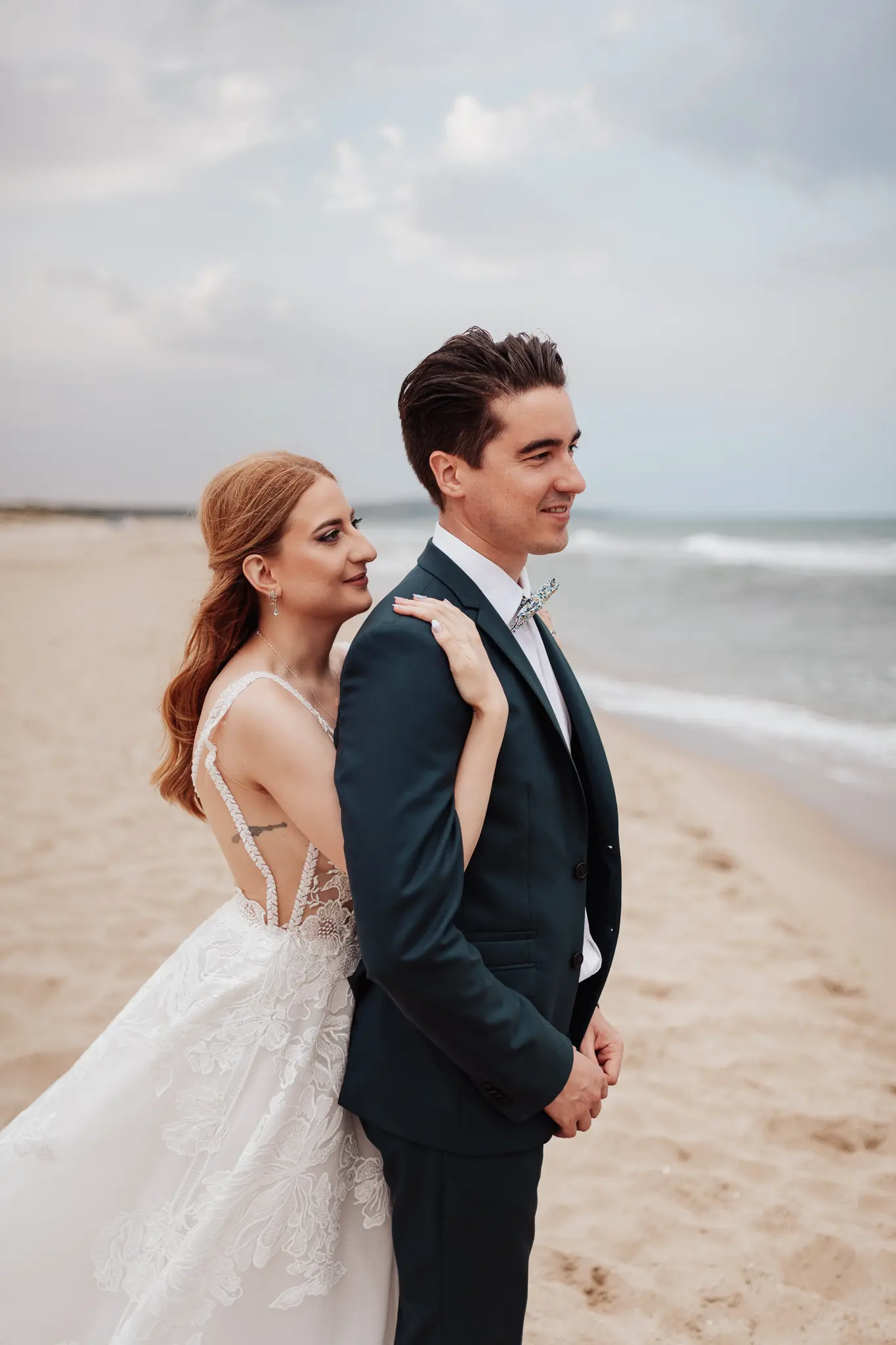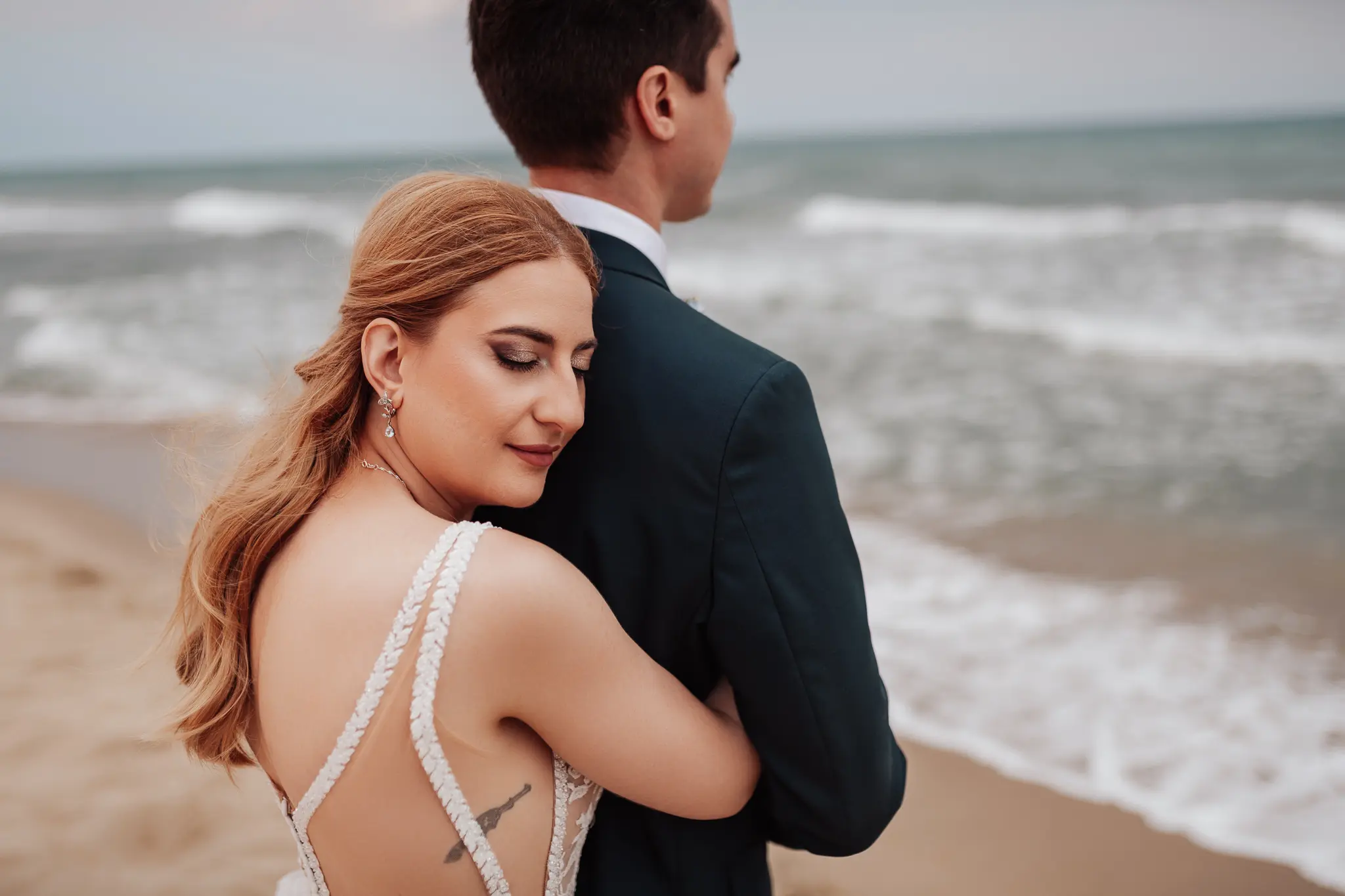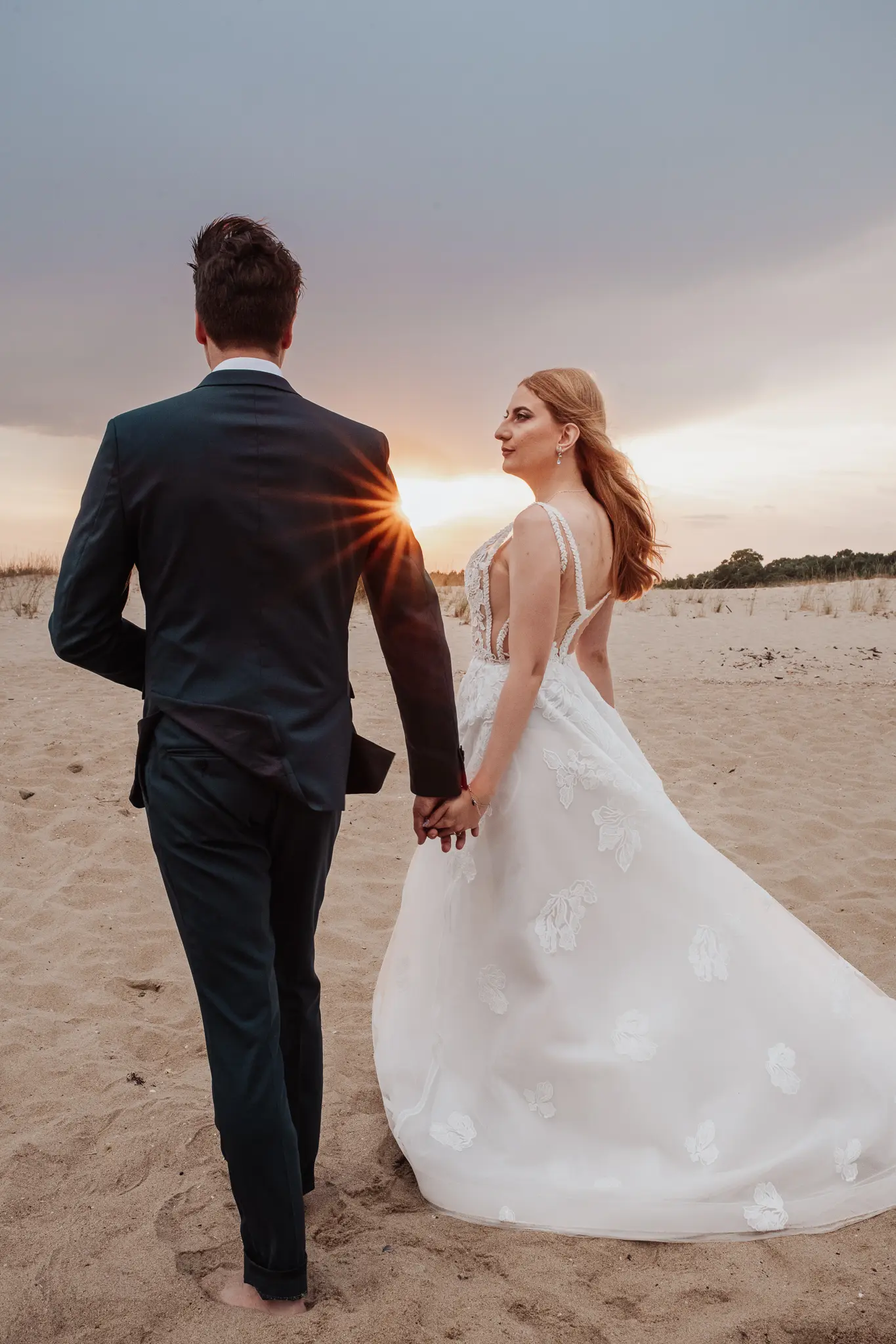 След това се отправихме към плажа. Морето промени настроението – повече свобода, движение и лекота. Пясъкът, вятърът и залезът ни дадоха онези естествени моменти, които превръщат една следсватбена фотосесия в истински разказ. Там оставих любовта да води, а аз просто я следвах с камерата.