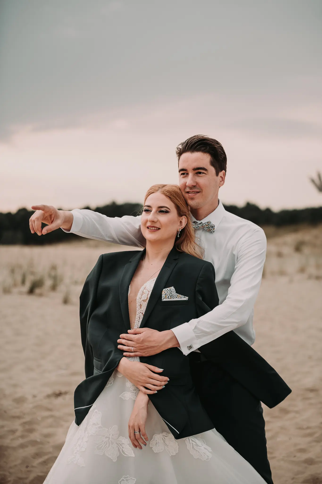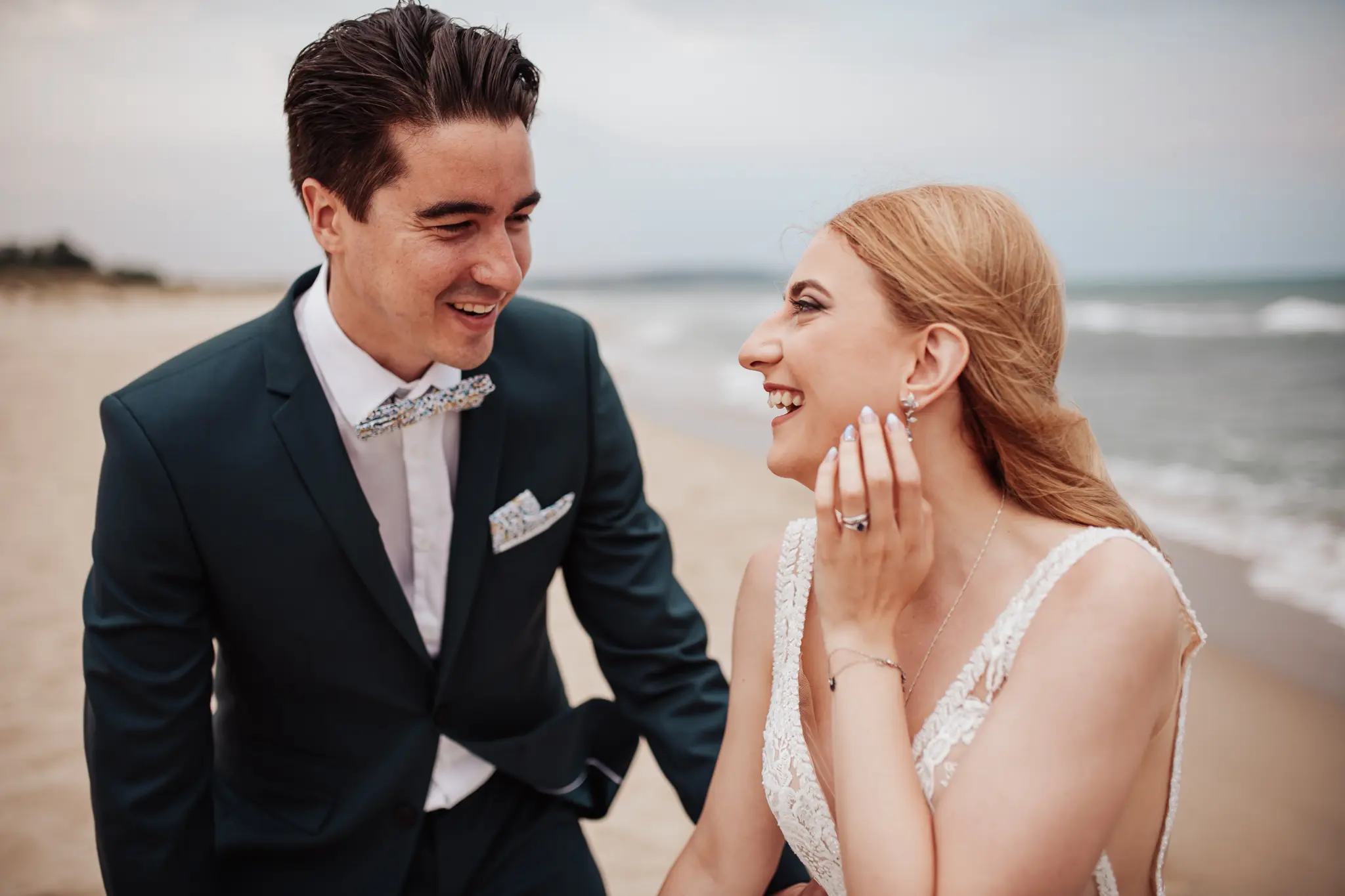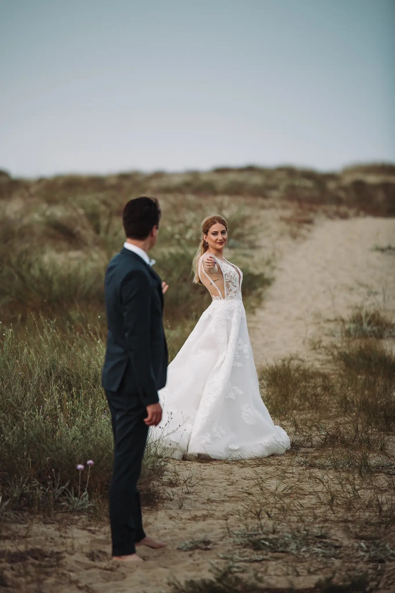 След това се отправихме към плажа. Морето промени настроението – повече свобода, движение и лекота. Пясъкът, вятърът и залезът ни дадоха онези естествени моменти, които превръщат една следсватбена фотосесия в истински разказ. Там оставих любовта да води, а аз просто я следвах с камерата.