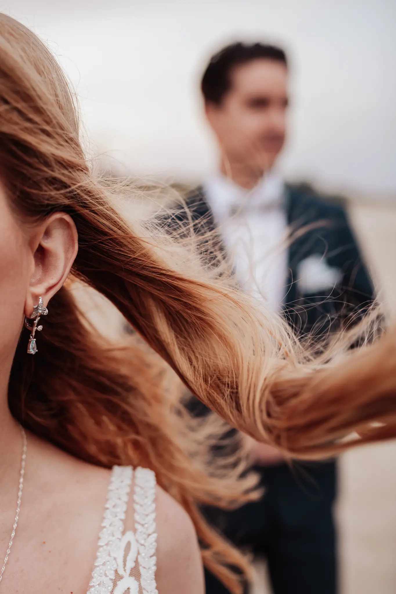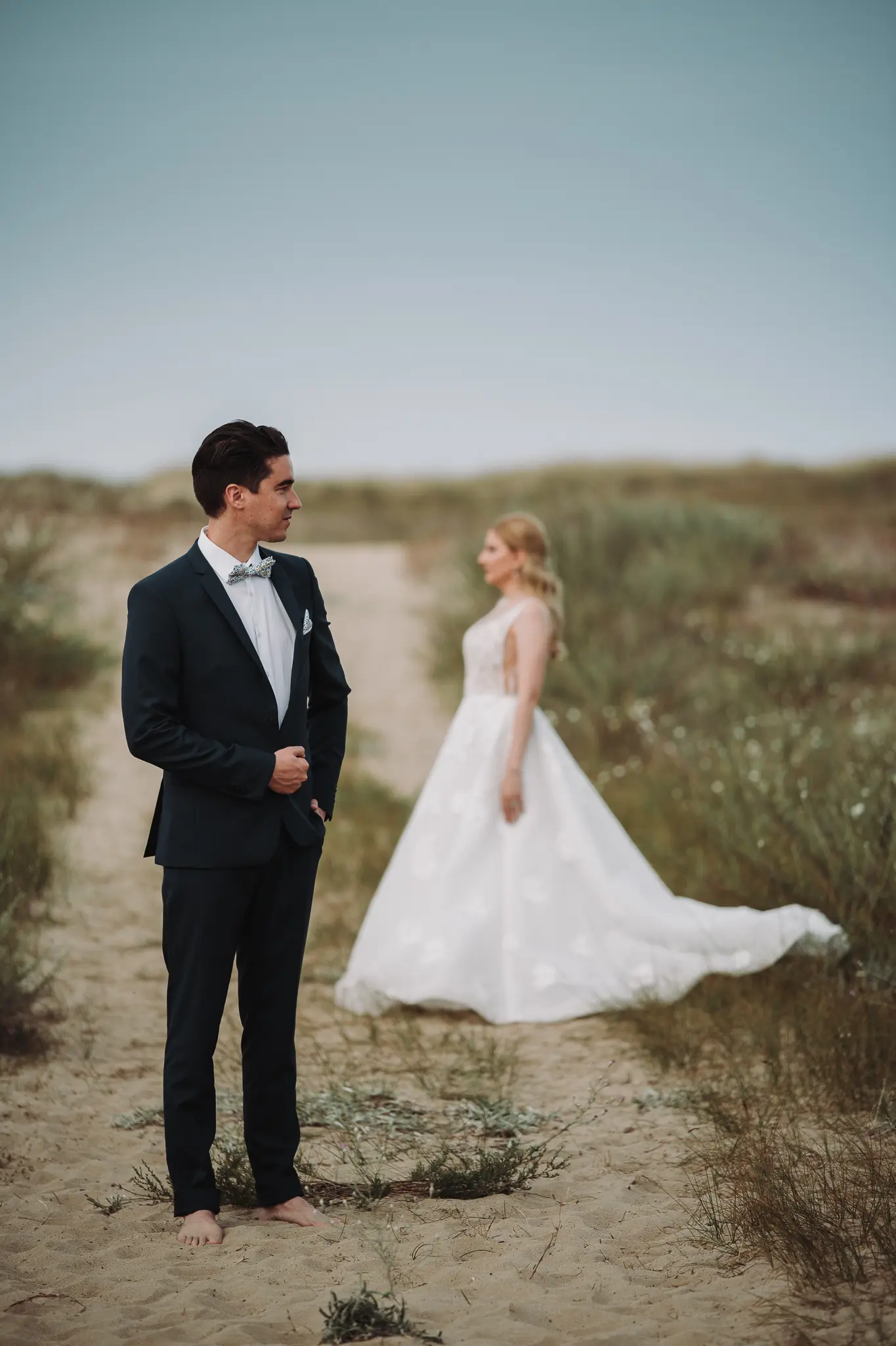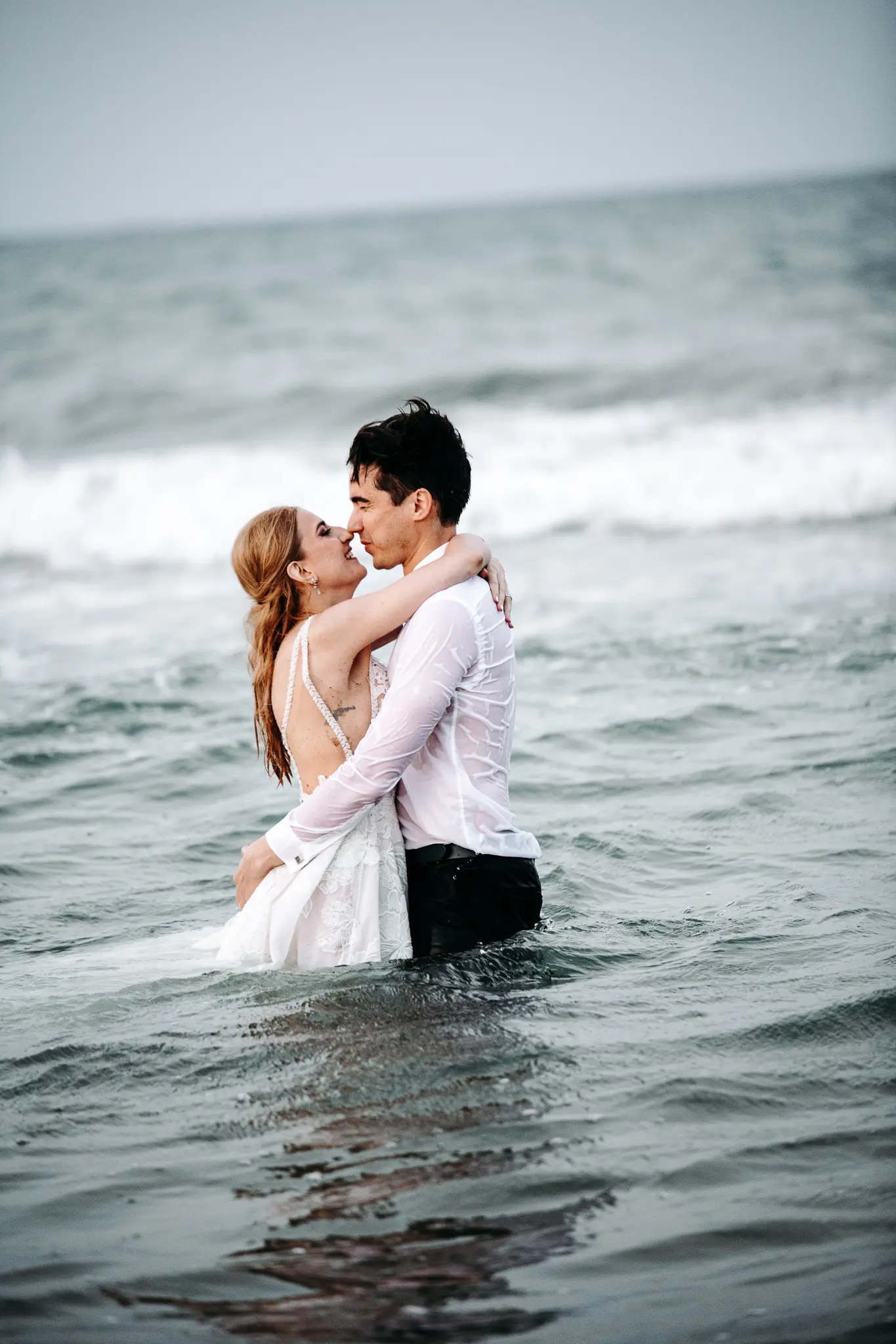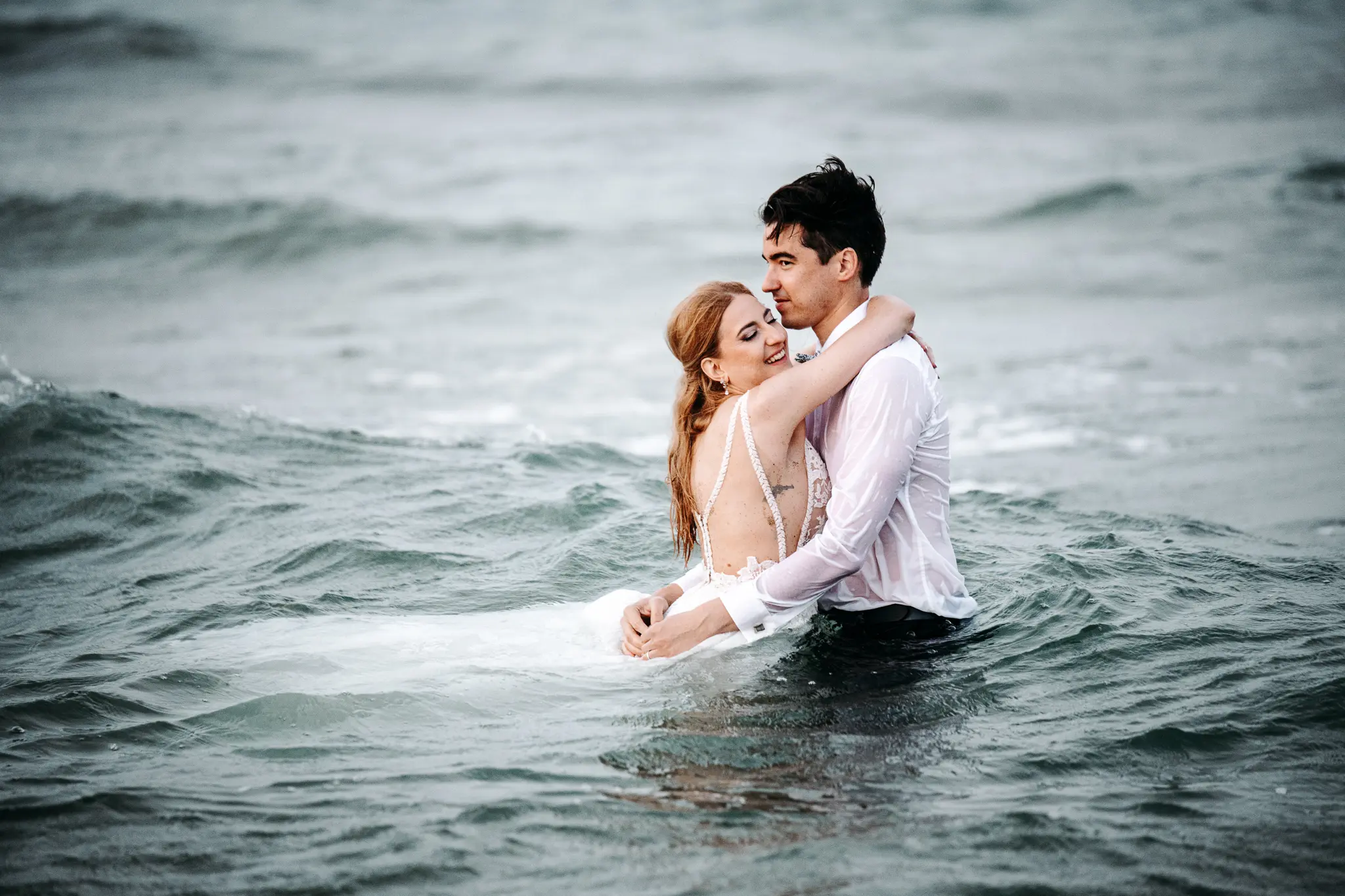 След това се отправихме към плажа. Морето промени настроението – повече свобода, движение и лекота. Пясъкът, вятърът и залезът ни дадоха онези естествени моменти, които превръщат една следсватбена фотосесия в истински разказ. Там оставих любовта да води, а аз просто я следвах с камерата.
