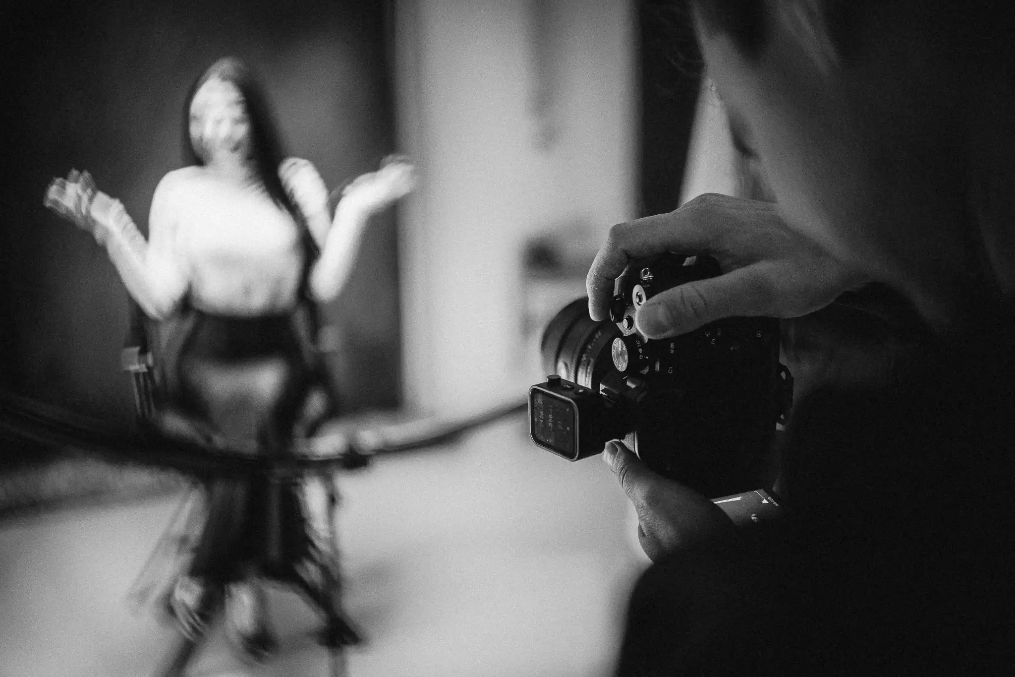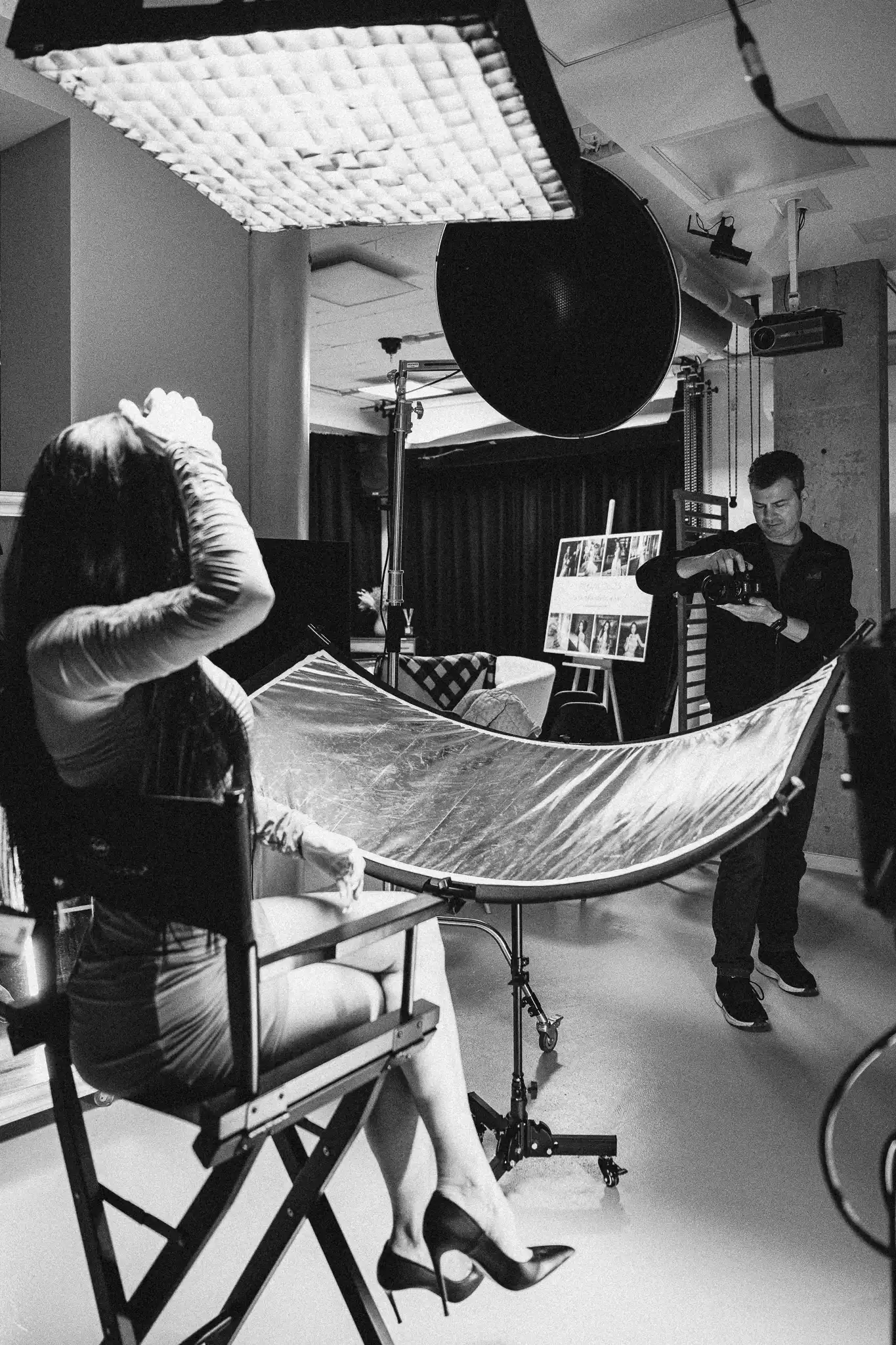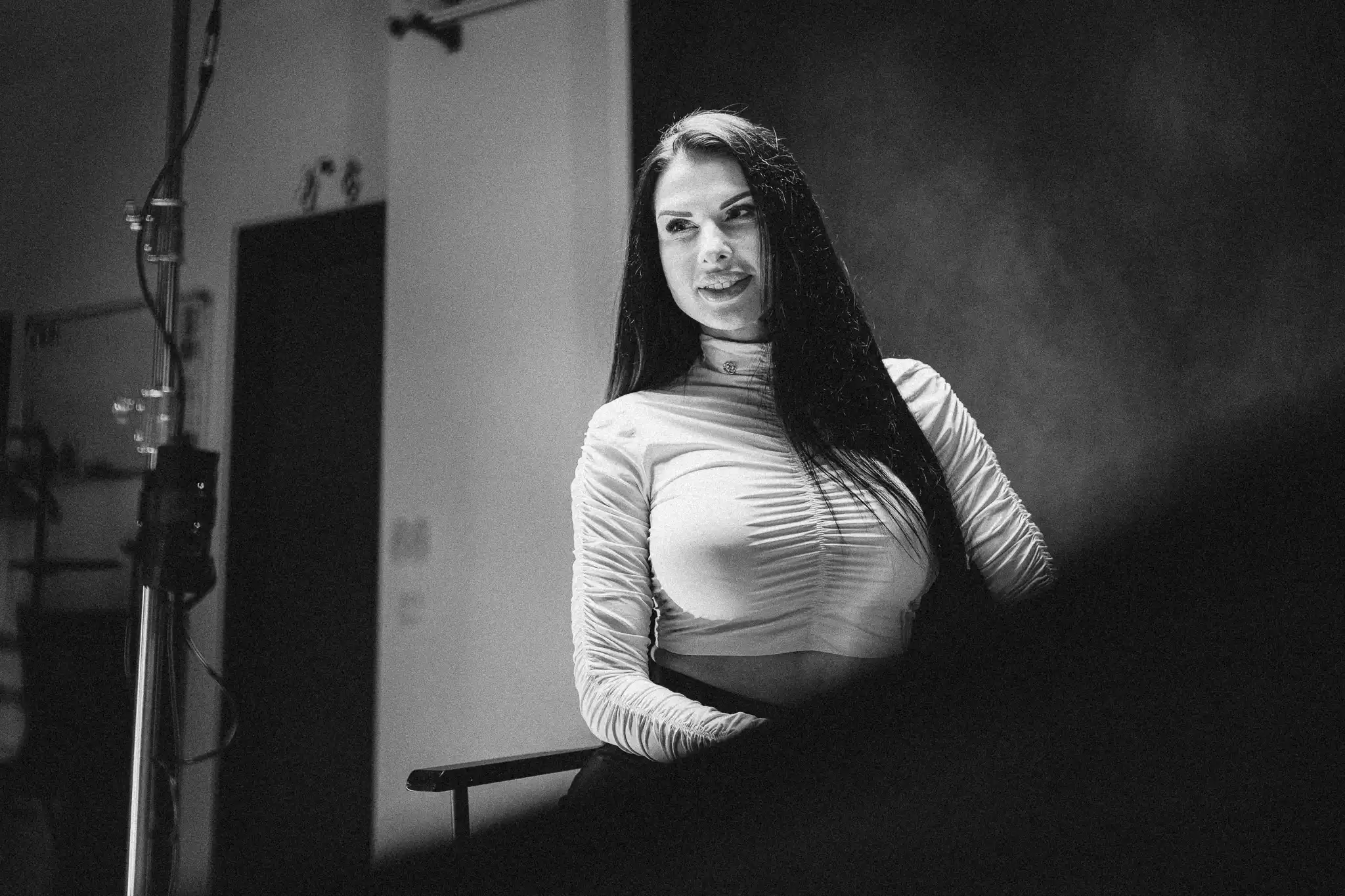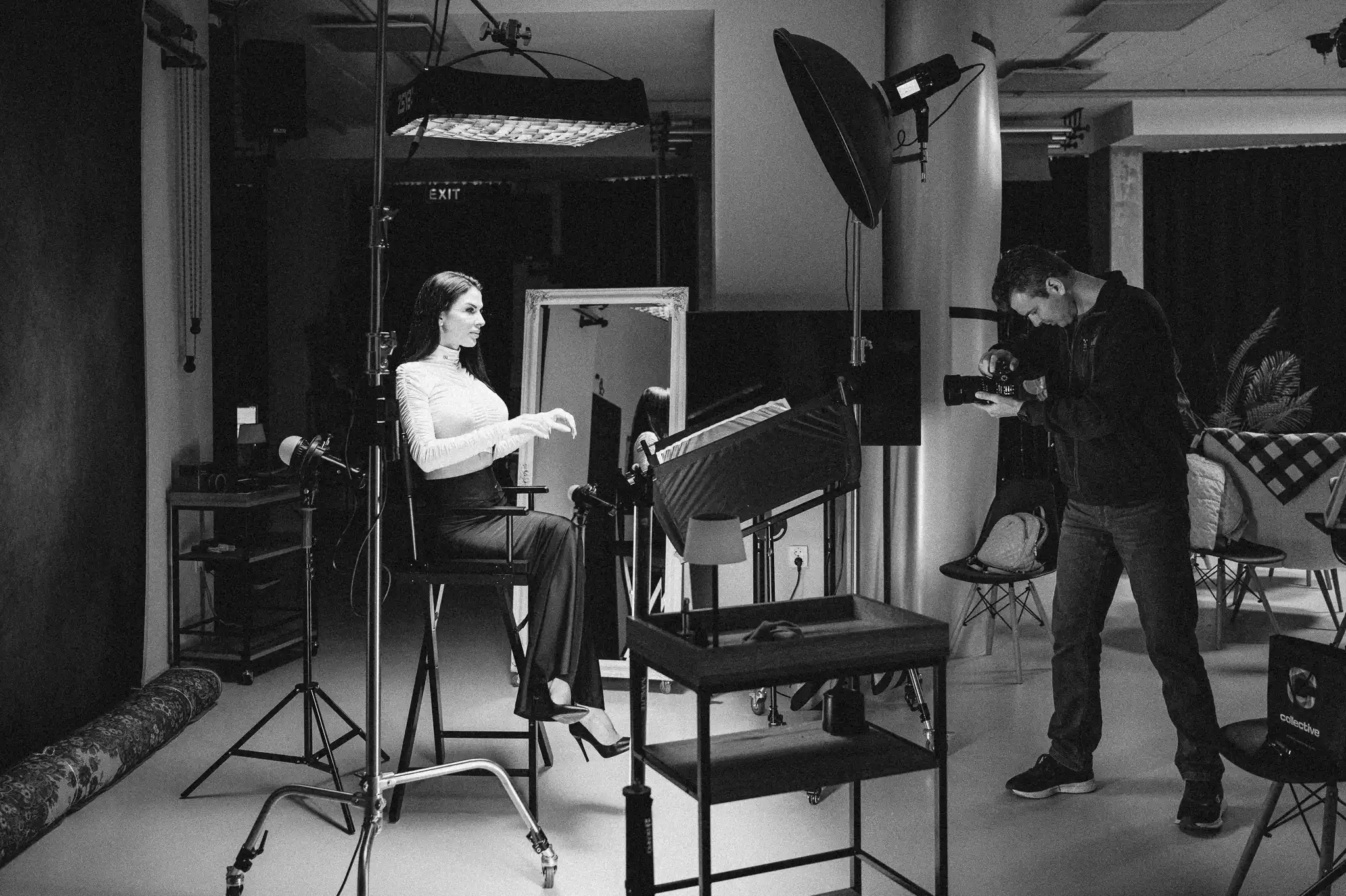 За постигане на разнообразни визуални ефекти са приложени гобо маски, а вентилатори са използвани за създаване на обем и движение в косата. Фотосесията е реализирана с различни хартиени фонове и бяла циклорама, което позволява чисти, минималистични и артистични портрети.