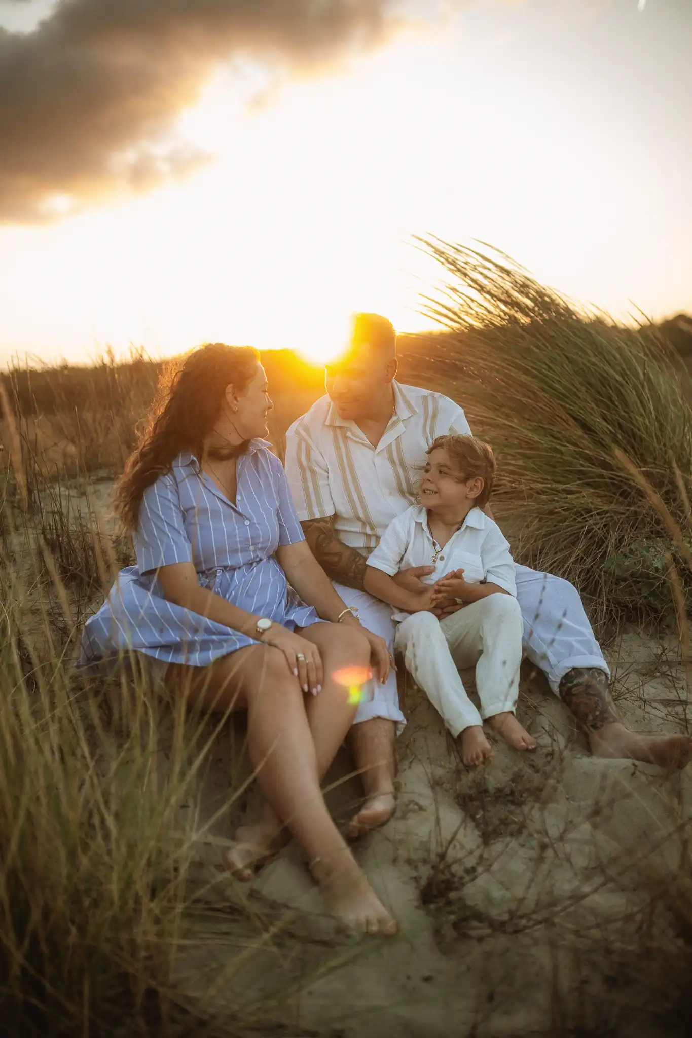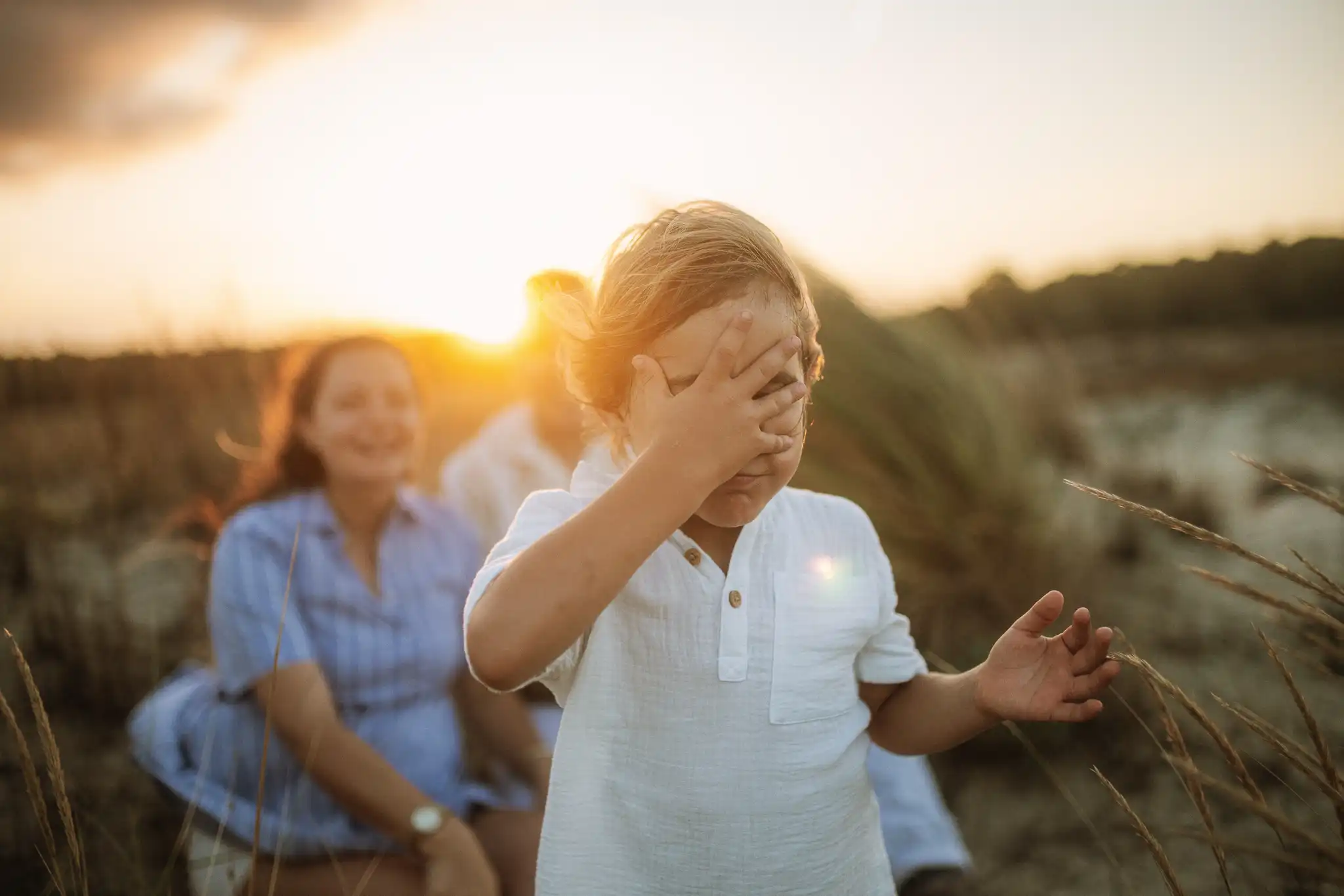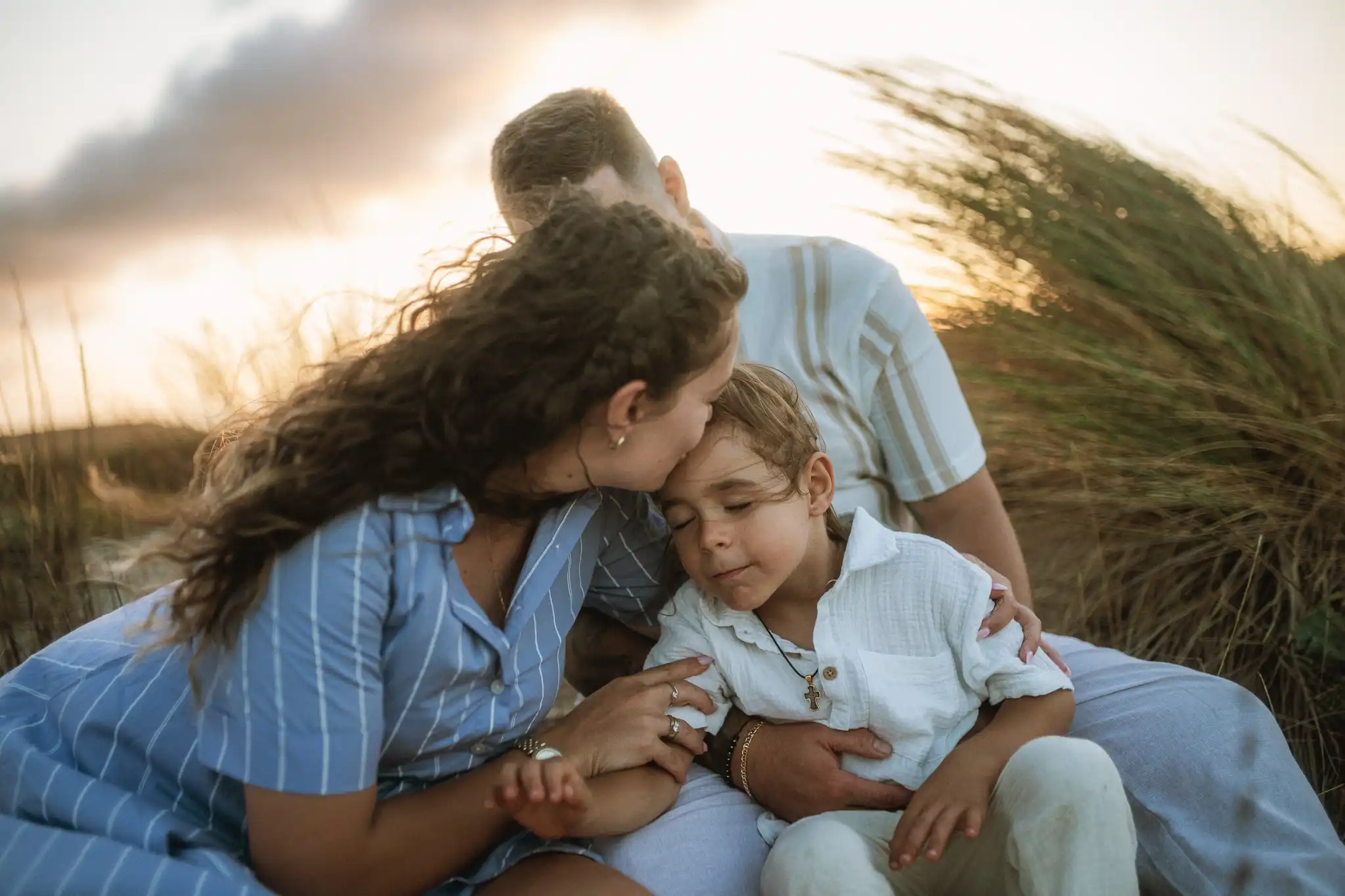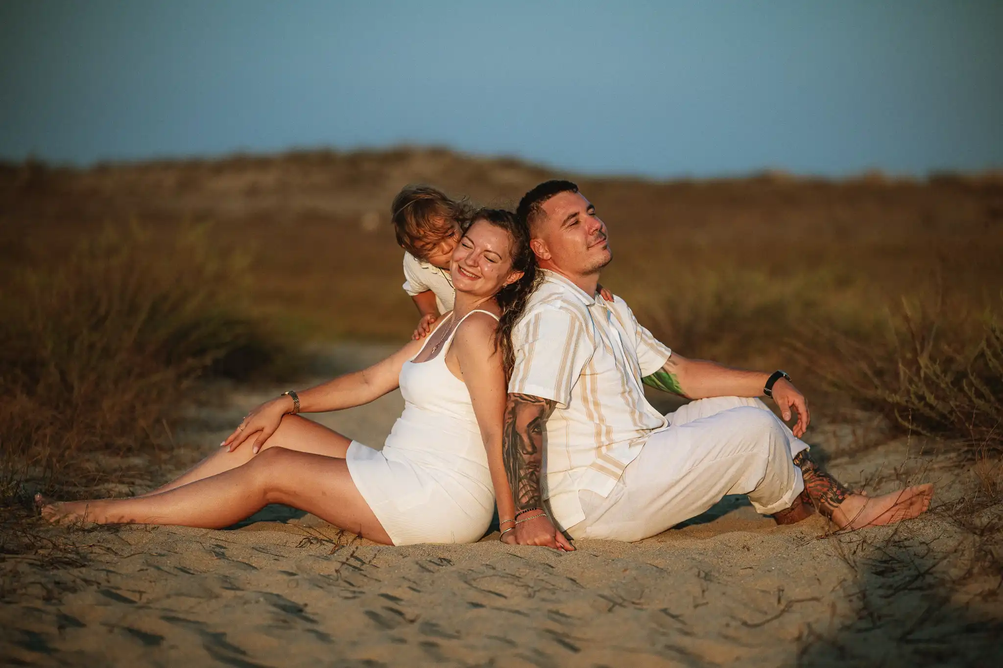 Семейната фотосесия по залез е онзи момент, в който времето сякаш забавя ход. Срещнахме се на плажа точно когато слънцето започна да докосва хоризонта, а светлината стана мека и топла.