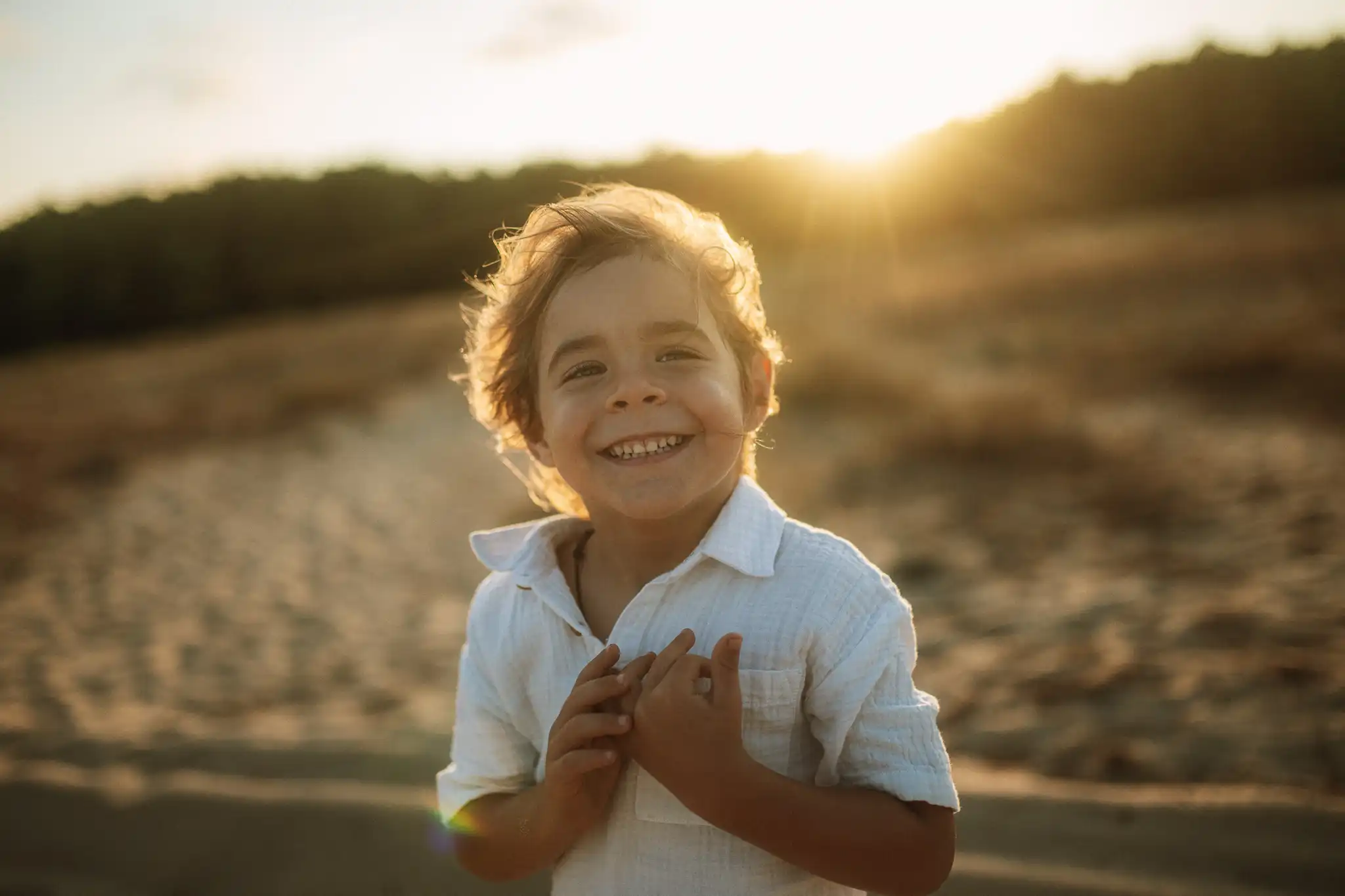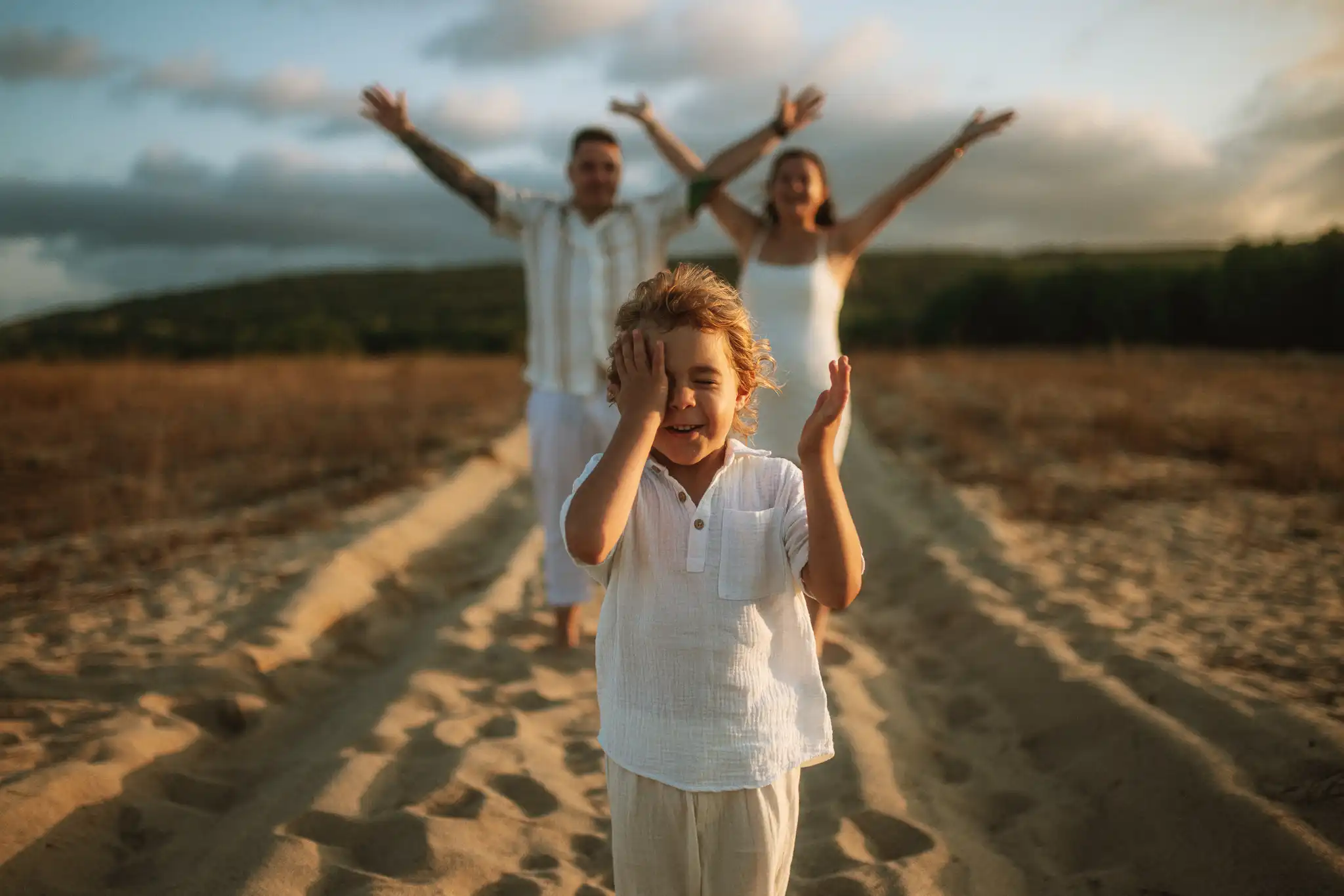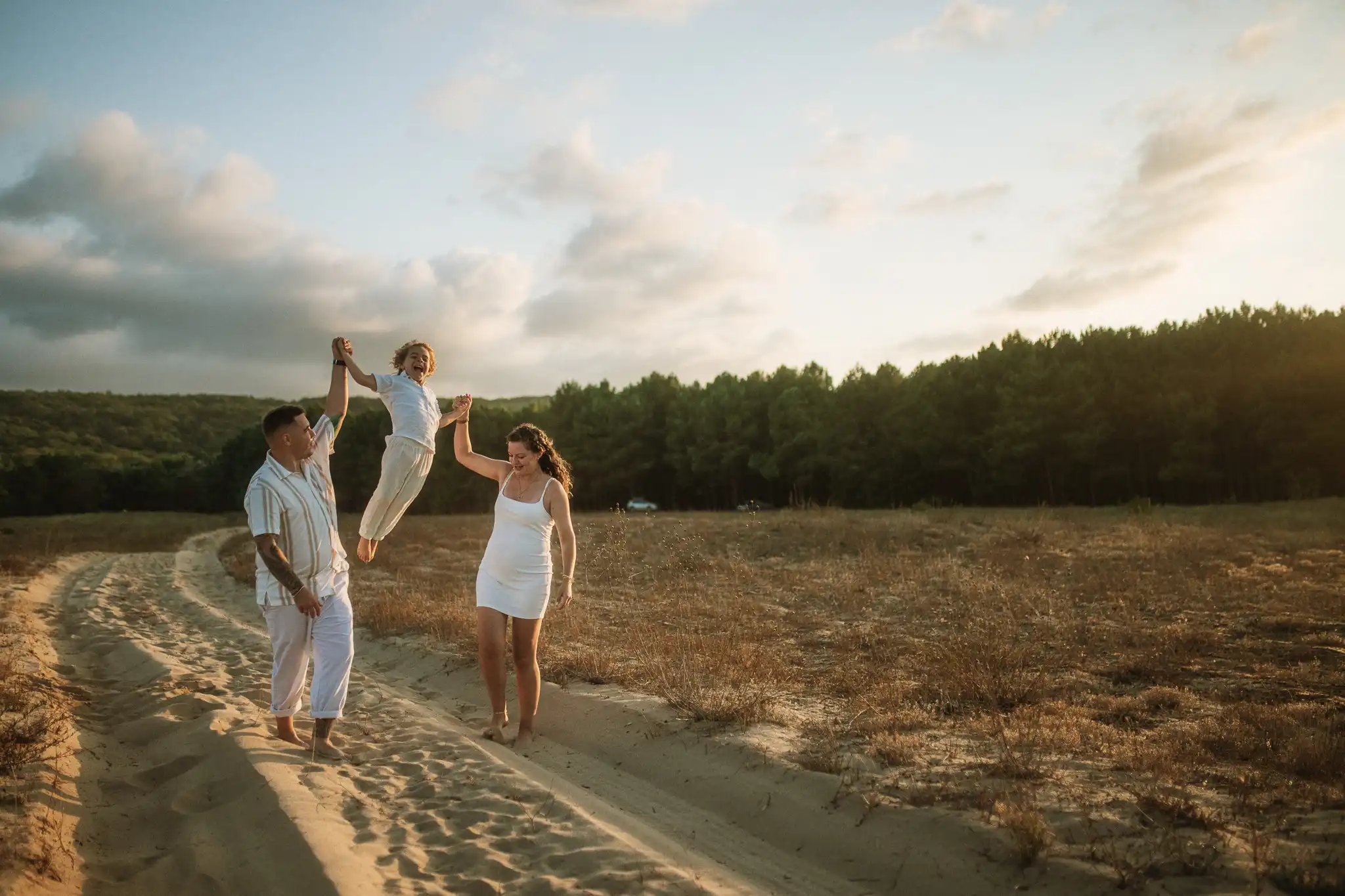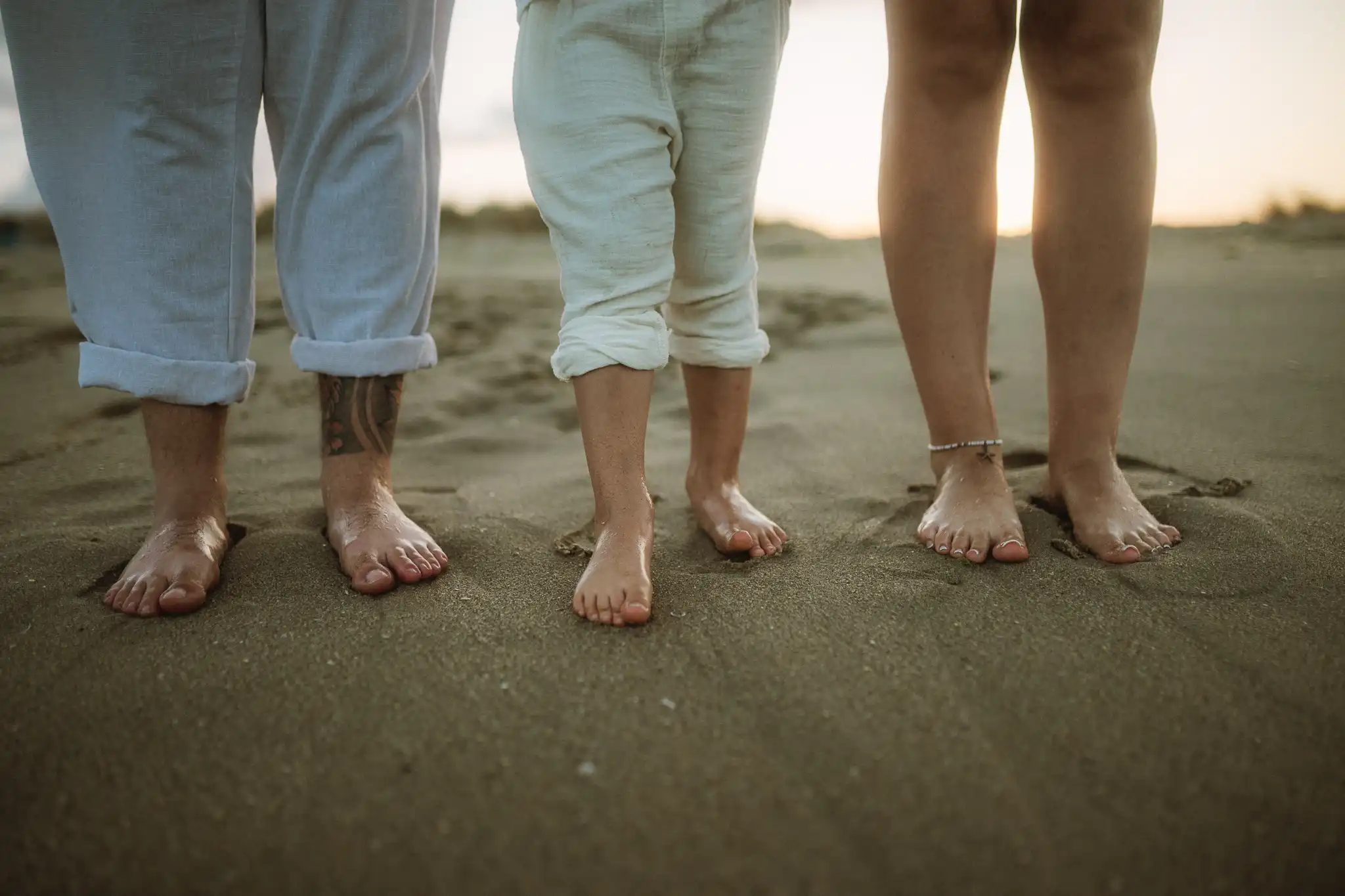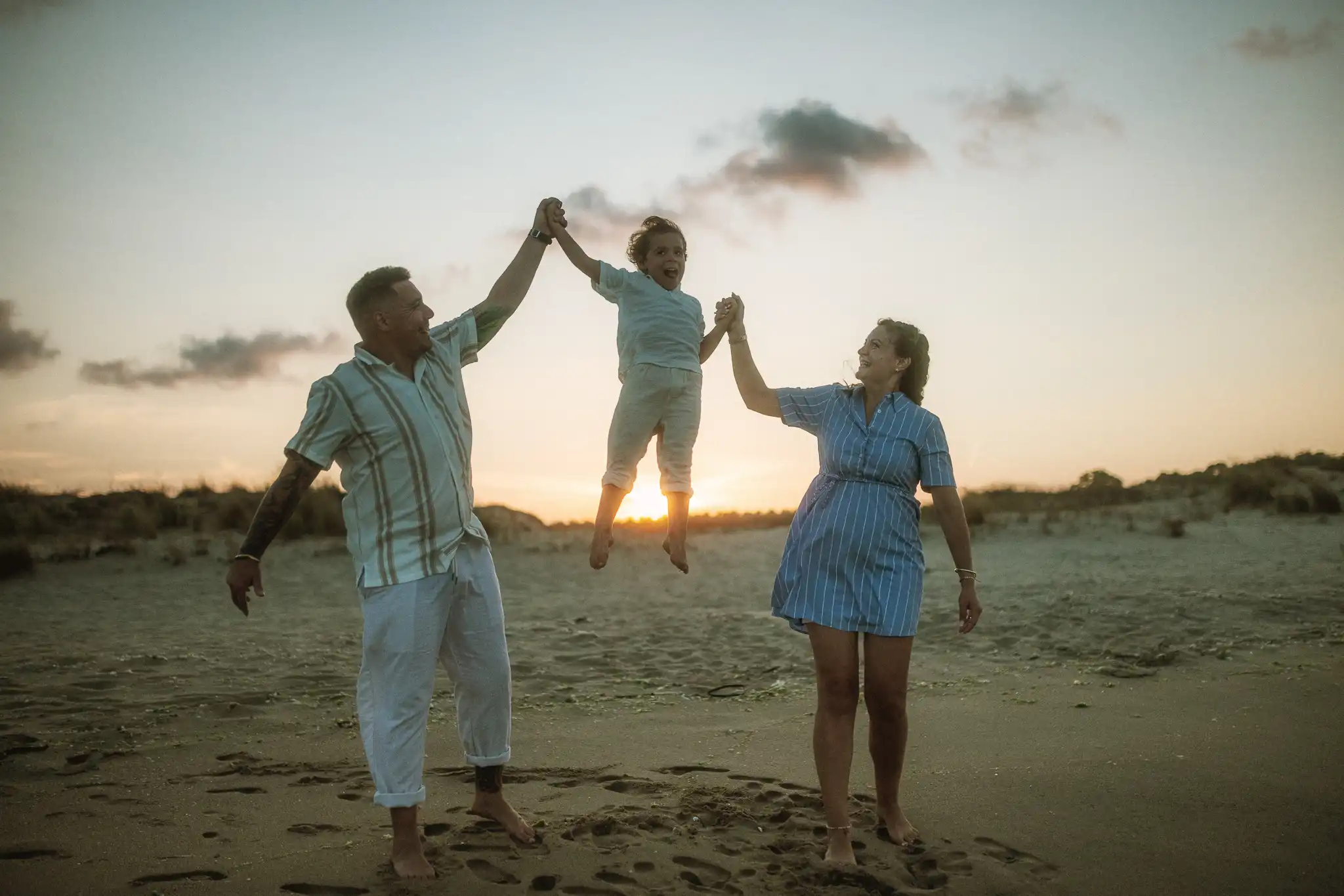 Семейната фотосесия по залез е онзи момент, в който времето сякаш забавя ход. Срещнахме се на плажа точно когато слънцето започна да докосва хоризонта, а светлината стана мека и топла.