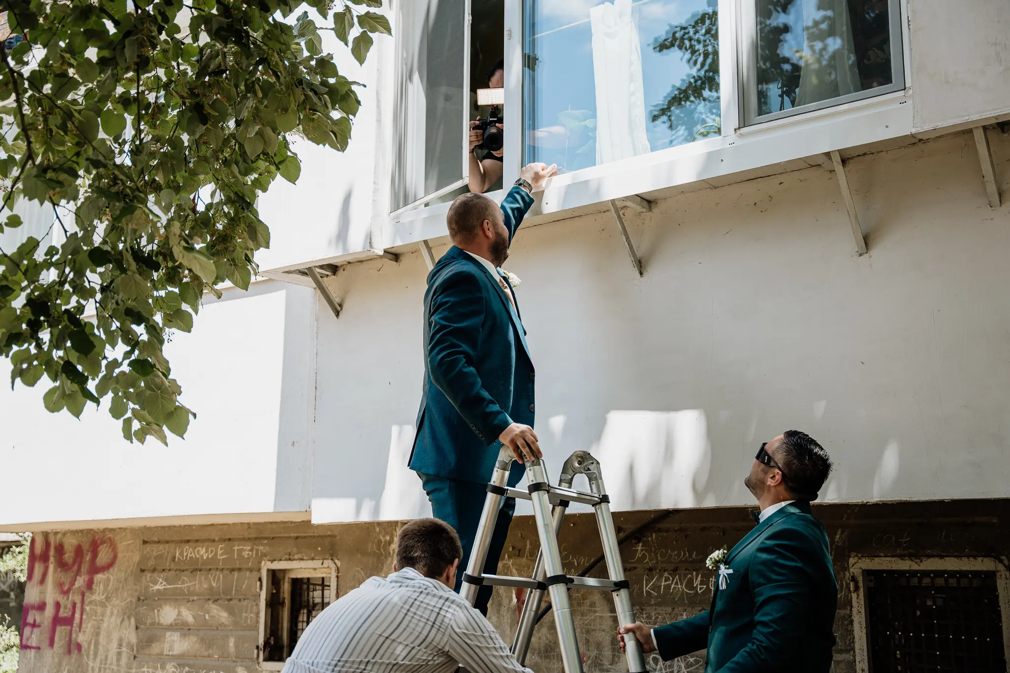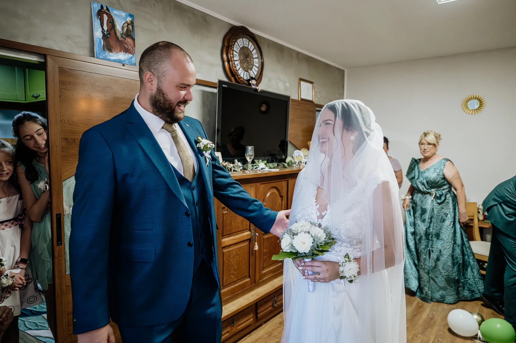 Сватбеният ден започва с класически ритуали и весело крадене на булката – моменти, изпълнени с емоции, усмивки и истинско настроение. Тези сцени са неизменна част от българската сватба и създават автентични спомени.