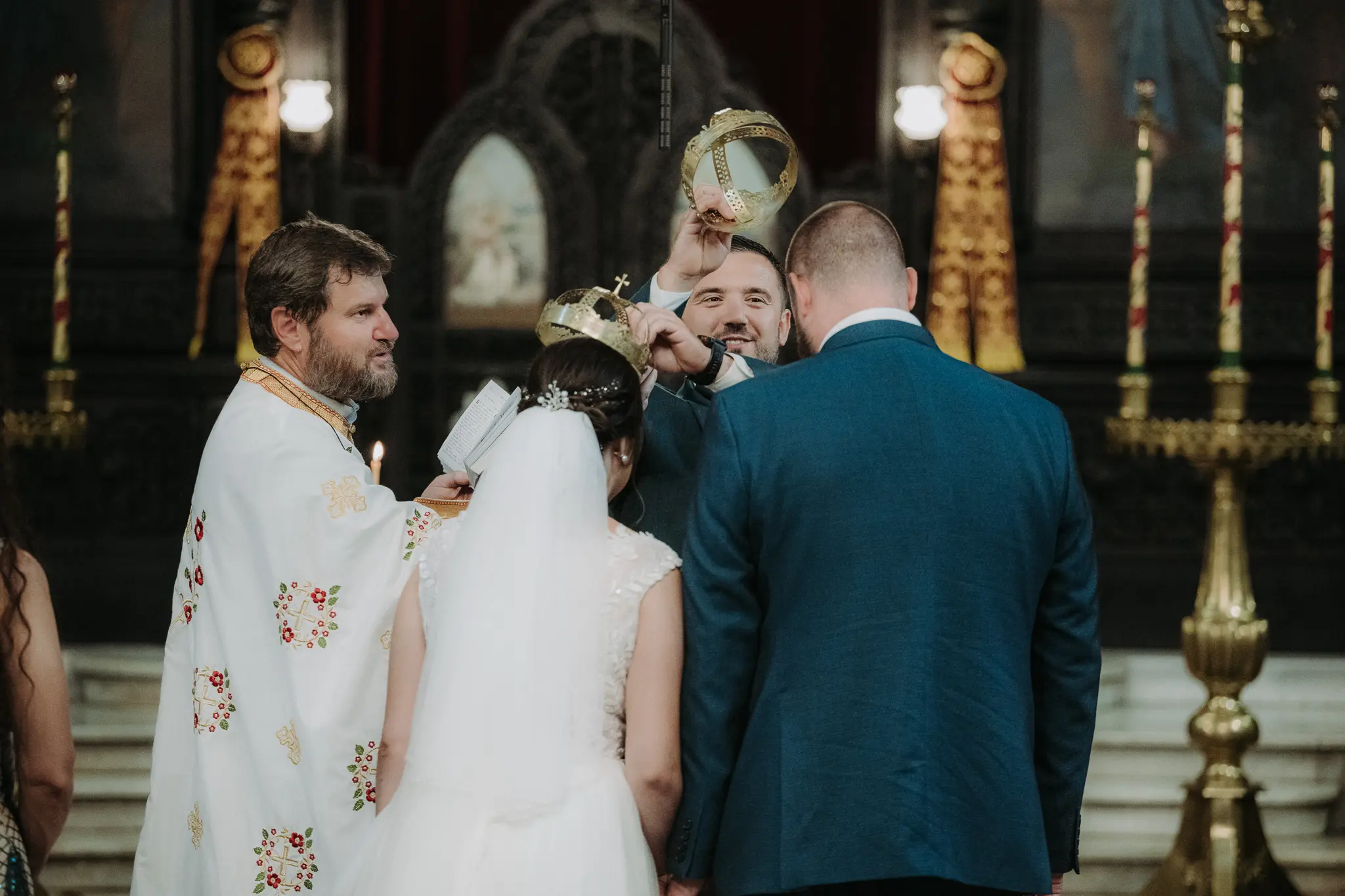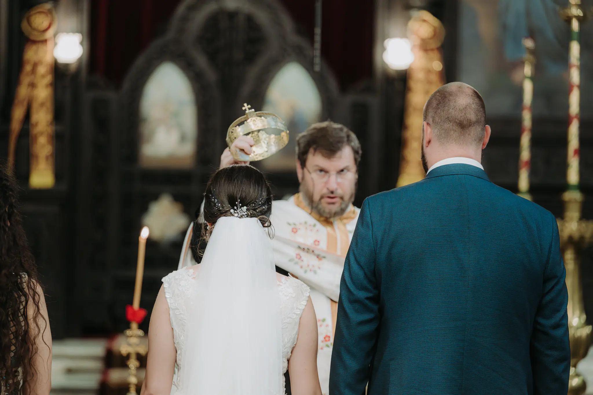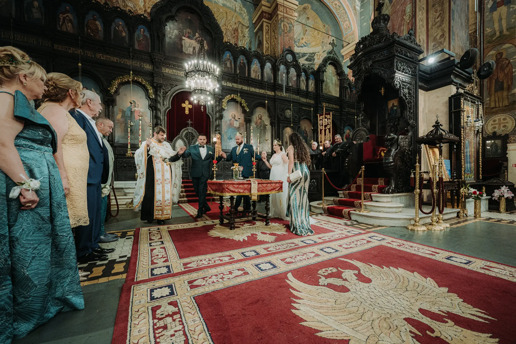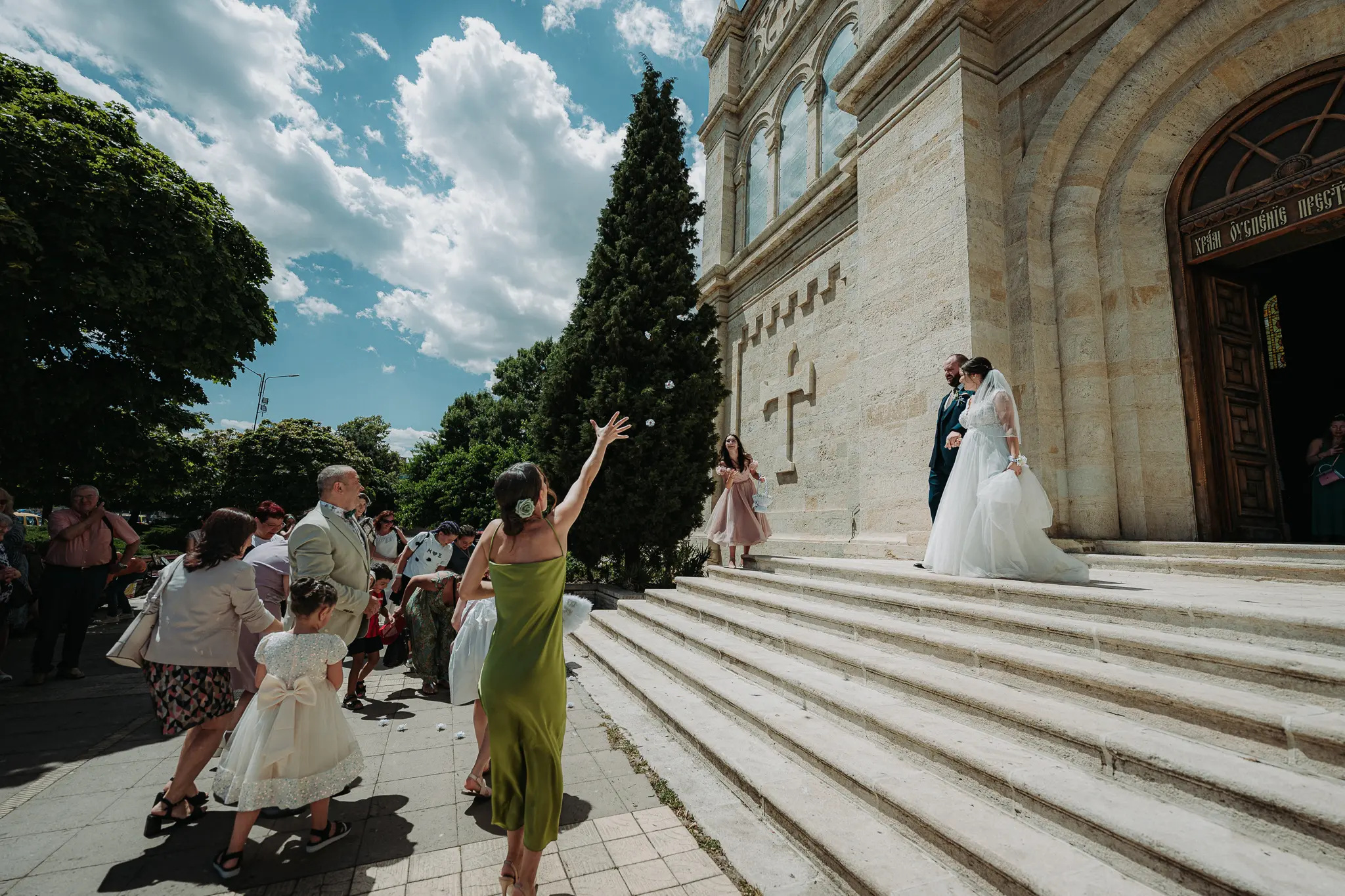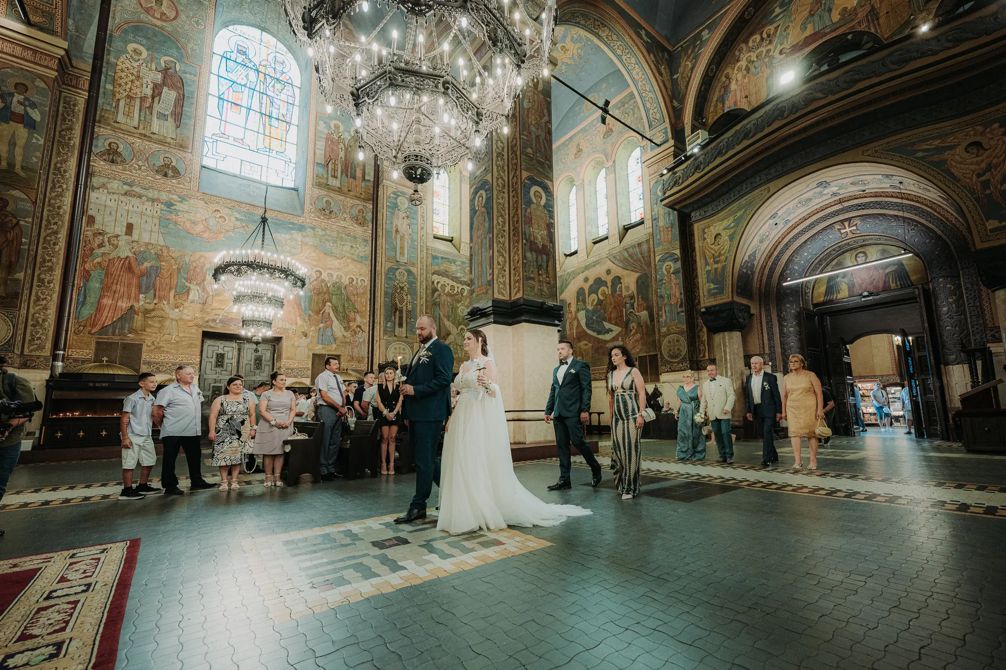 Църковният ритуал в Катедрален храм „Успение Богородично“ придава тържественост и духовна стойност на сватбения ден. Величествената архитектура и светлината създават перфектни условия за емоционални сватбени кадри.