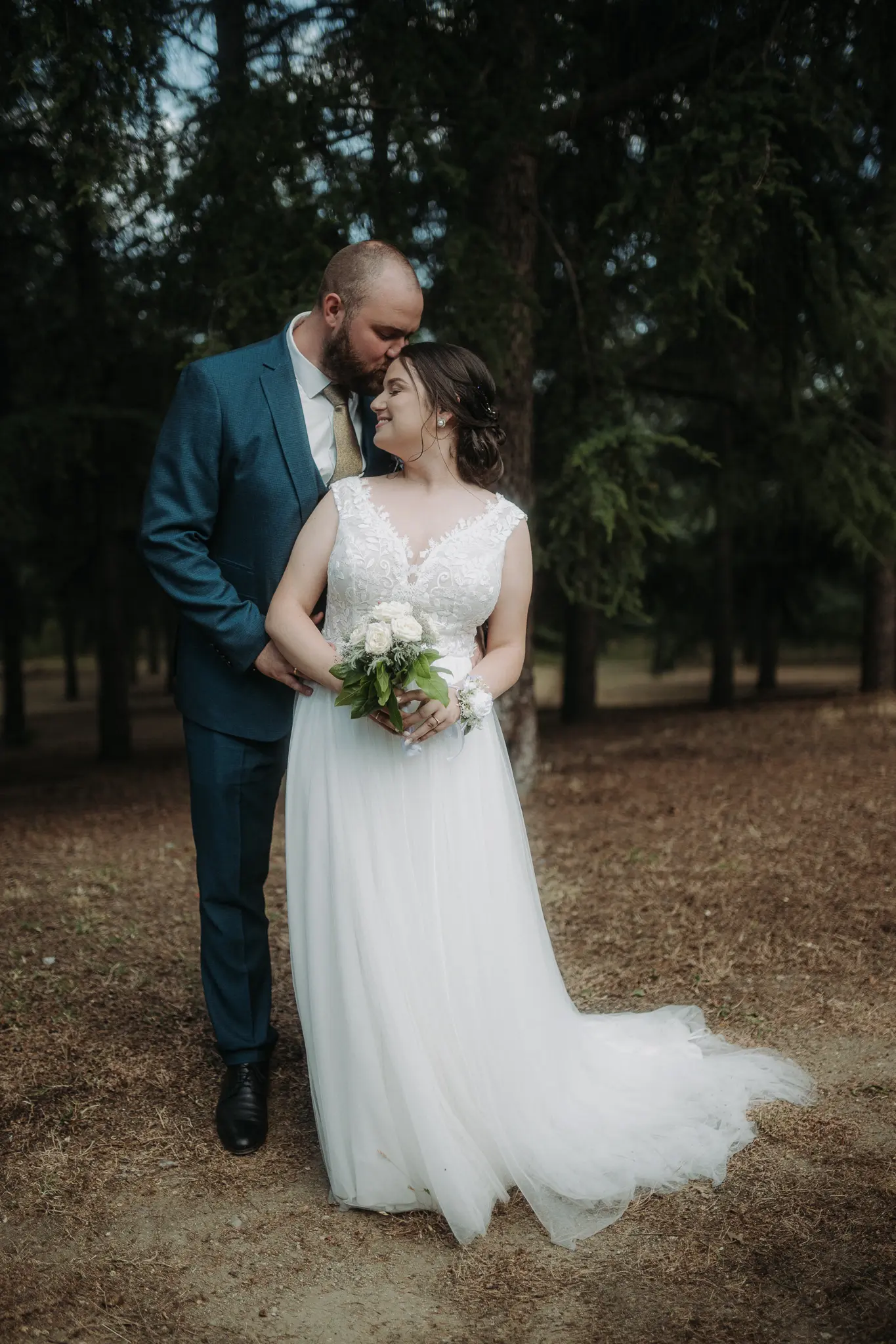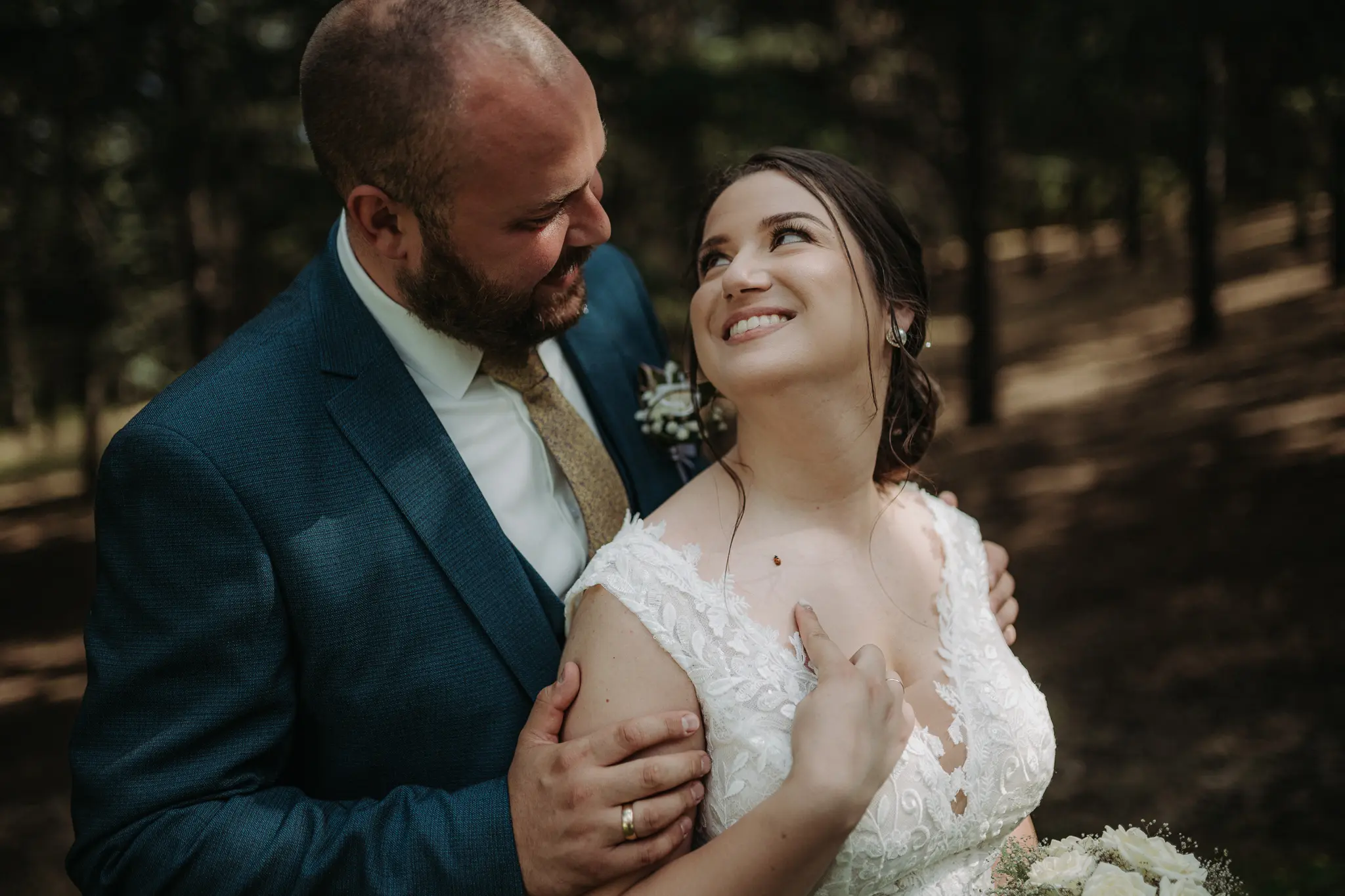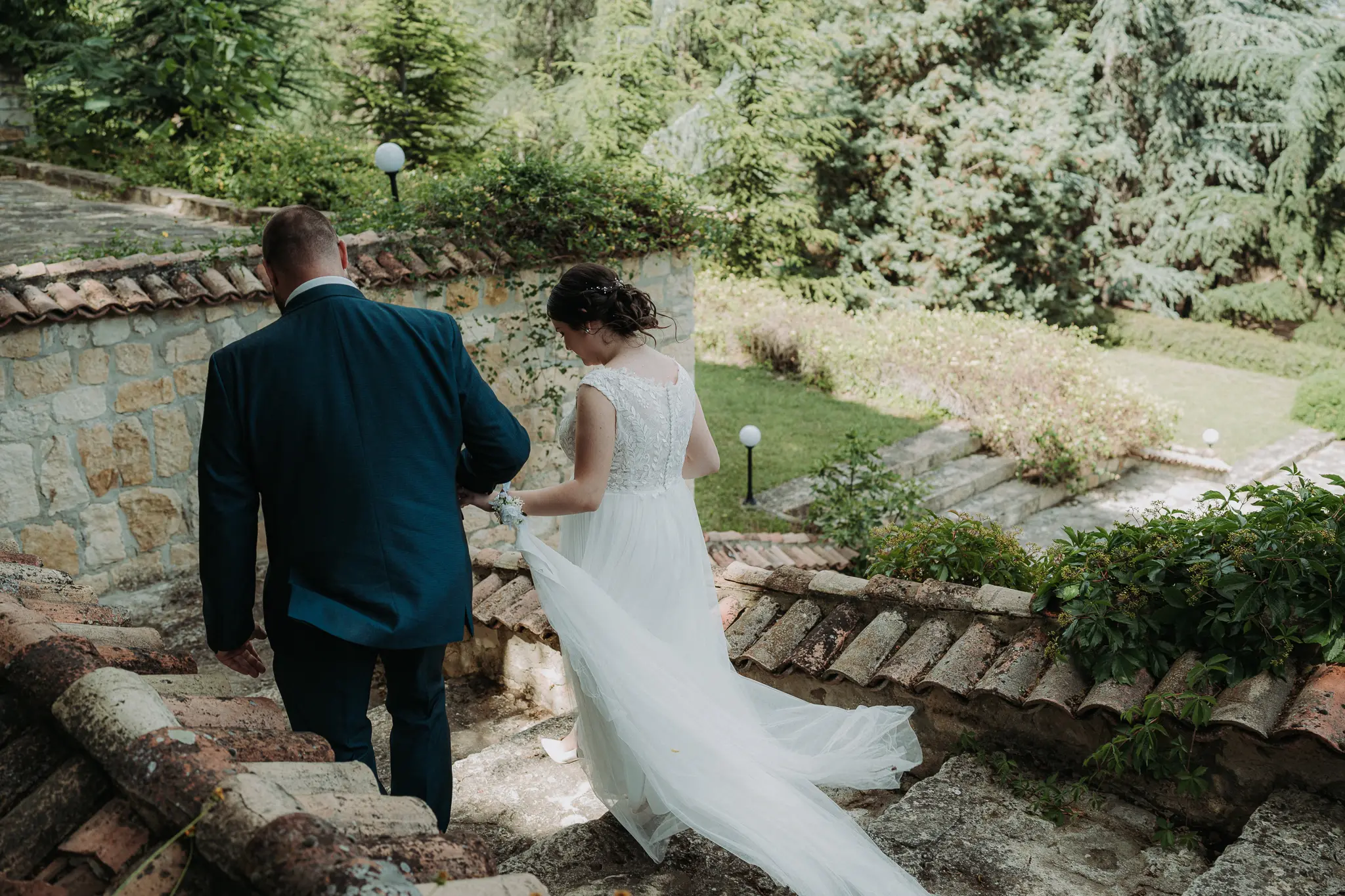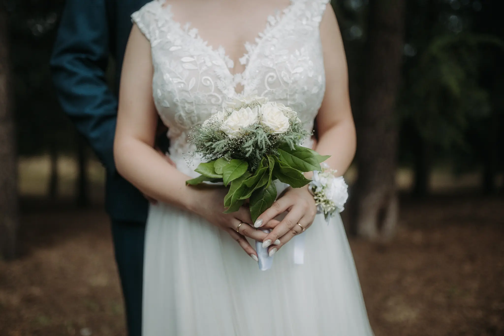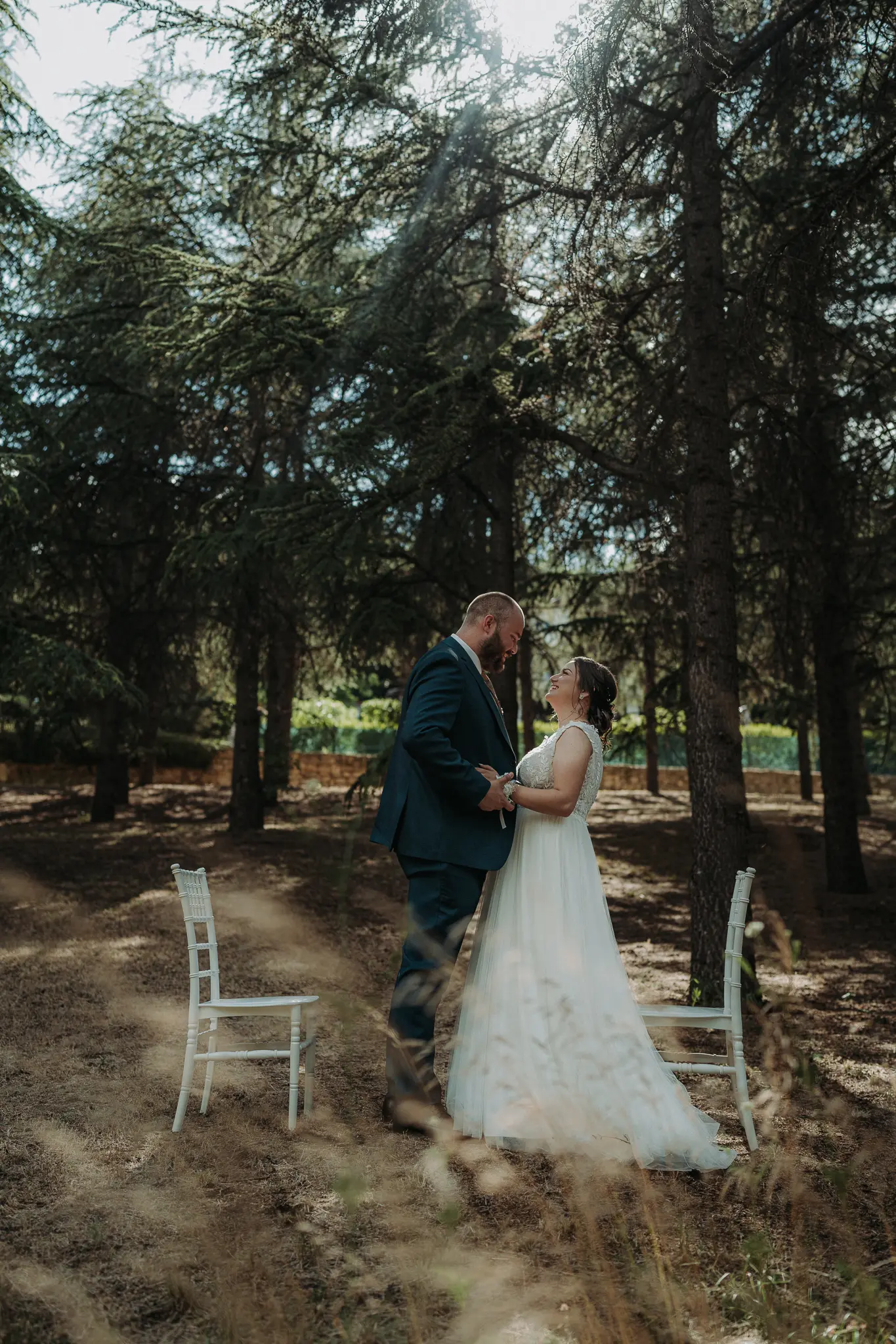 Горската фотосесия внася романтика и естествена красота в сватбения албум. Зеленината и меката светлина допълват нежната атмосфера и придават уникален стил на снимките.