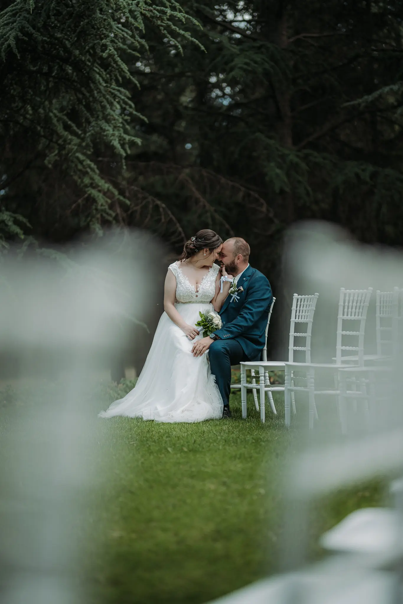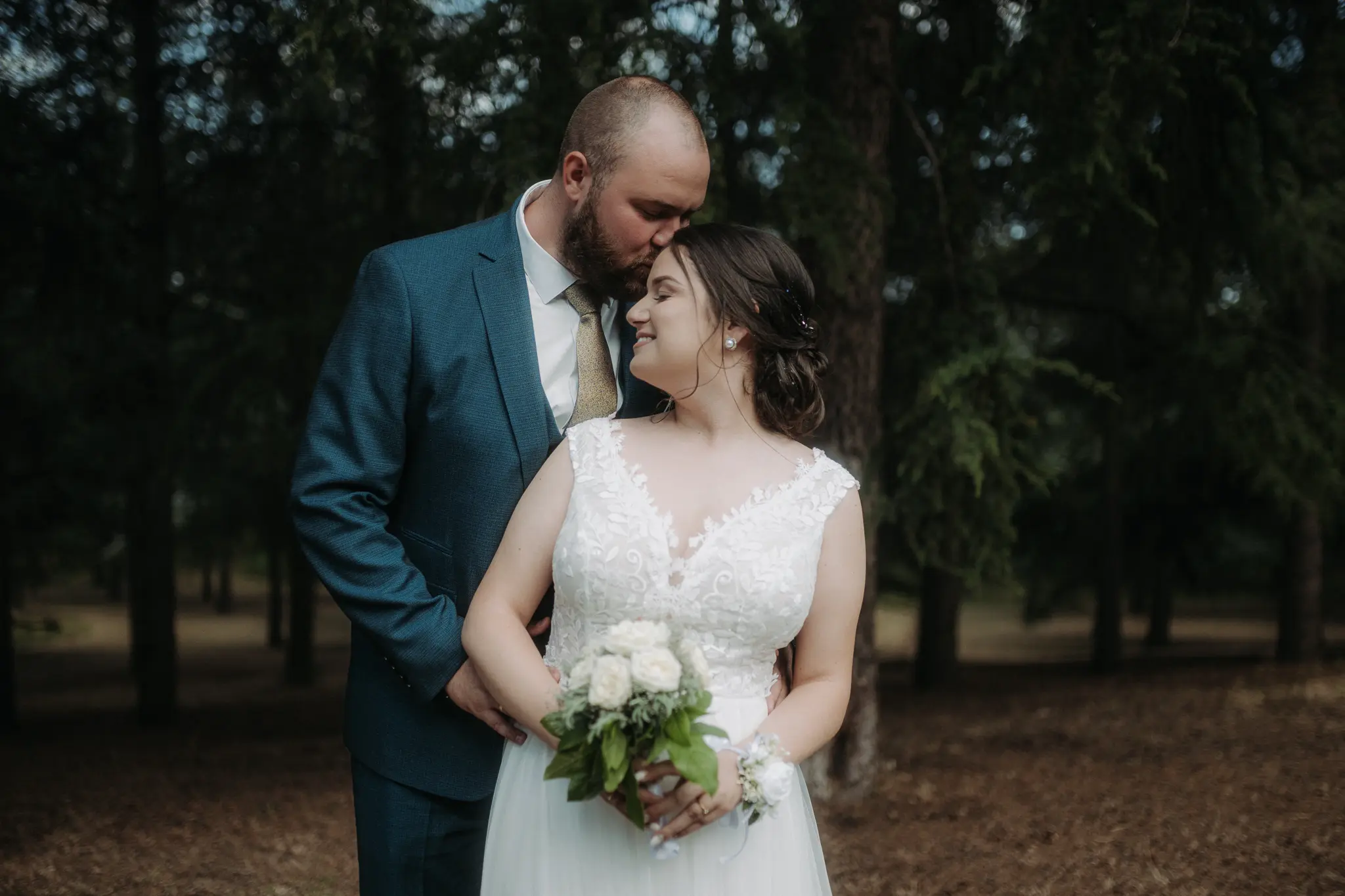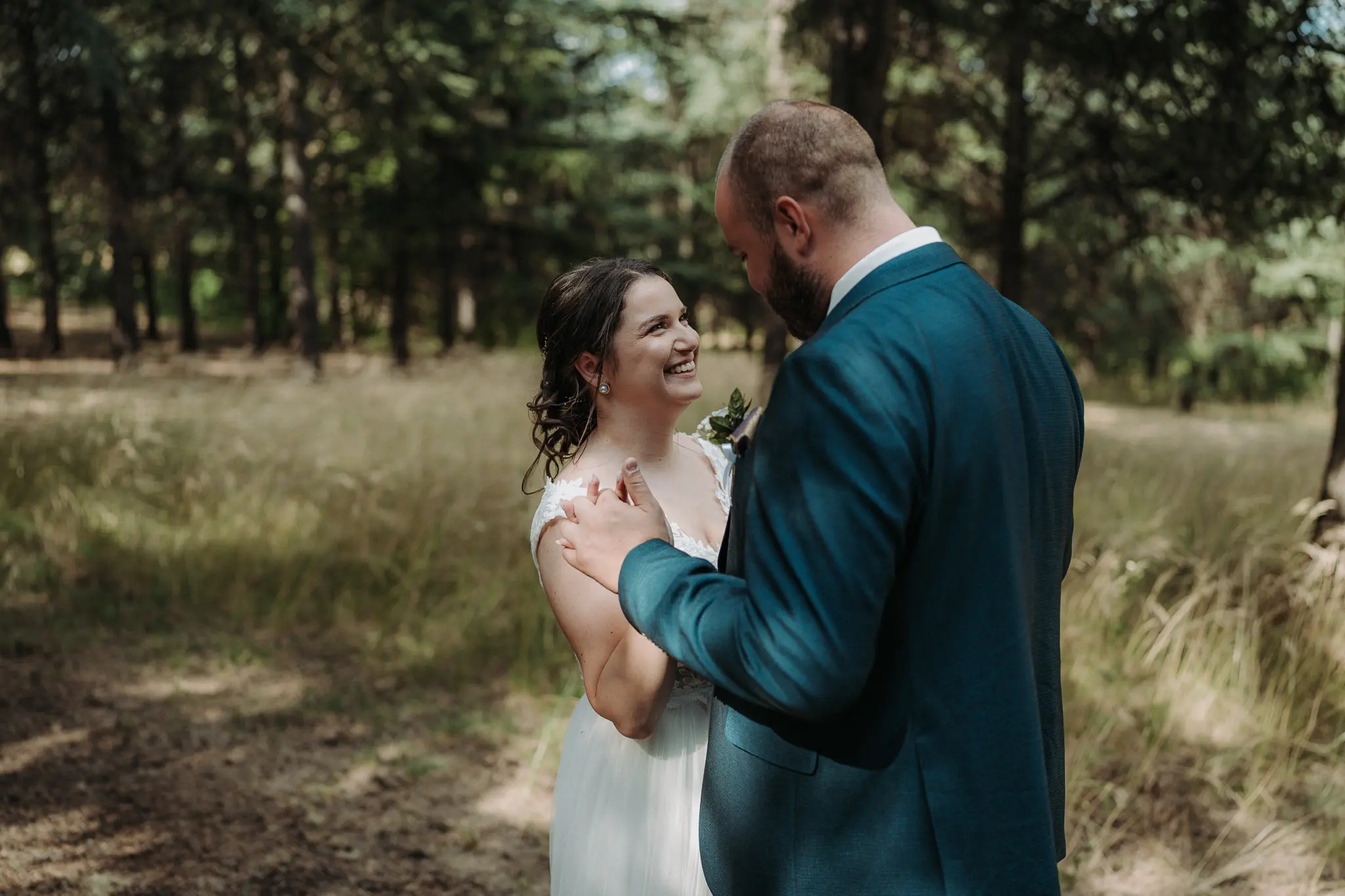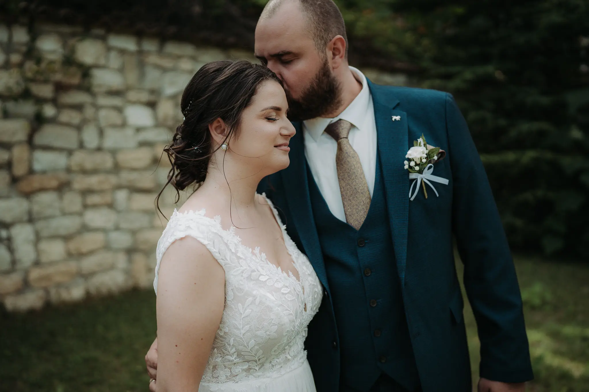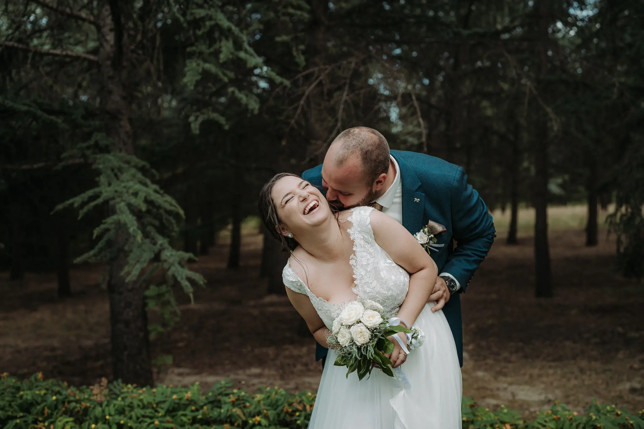 Горската фотосесия внася романтика и естествена красота в сватбения албум. Зеленината и меката светлина допълват нежната атмосфера и придават уникален стил на снимките.