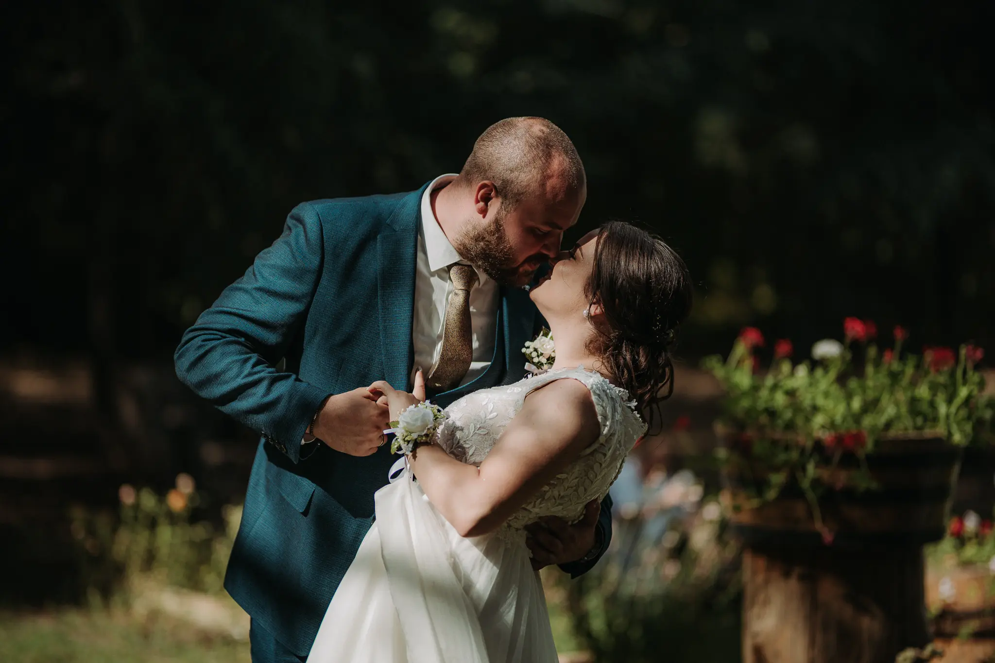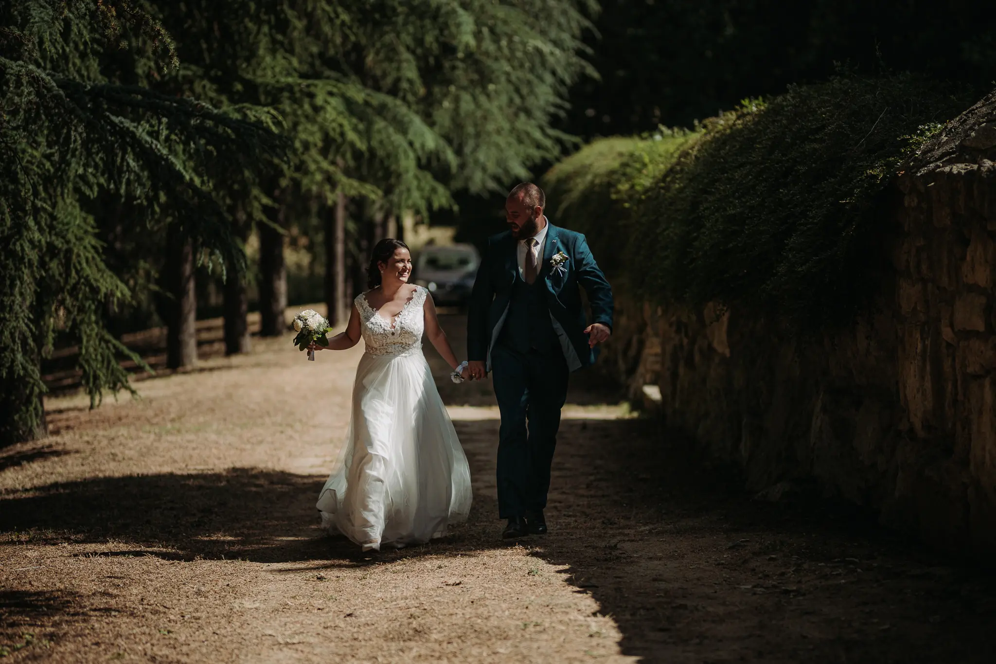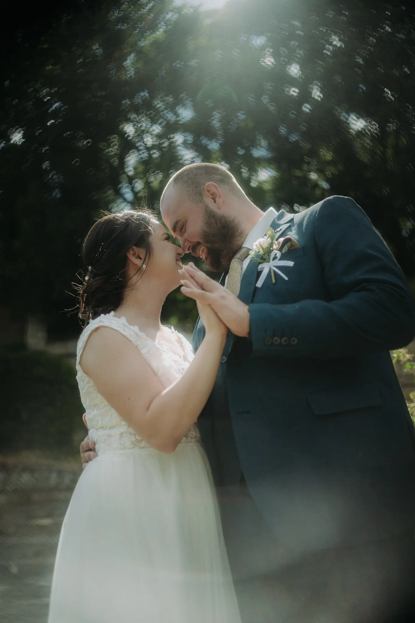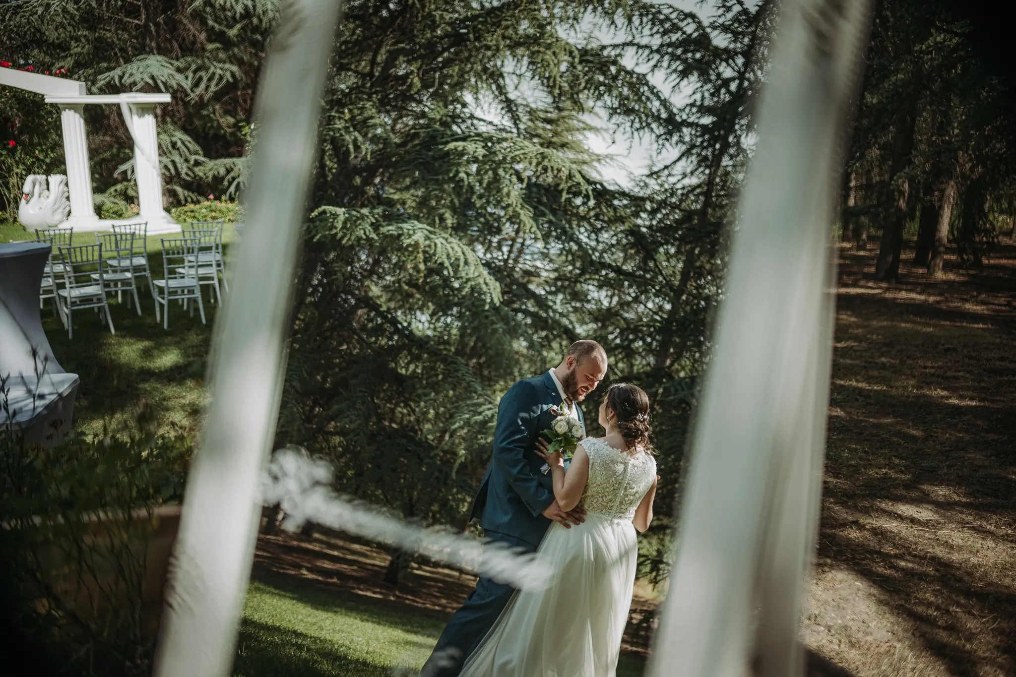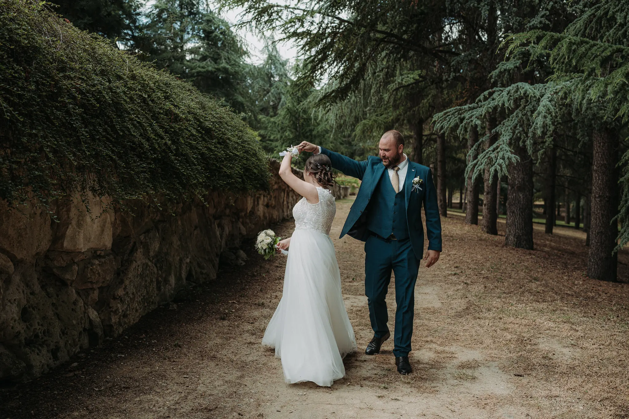 Горската фотосесия внася романтика и естествена красота в сватбения албум. Зеленината и меката светлина допълват нежната атмосфера и придават уникален стил на снимките.