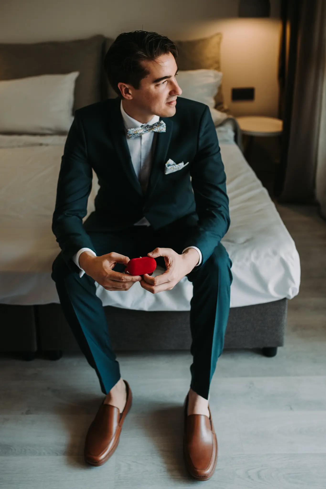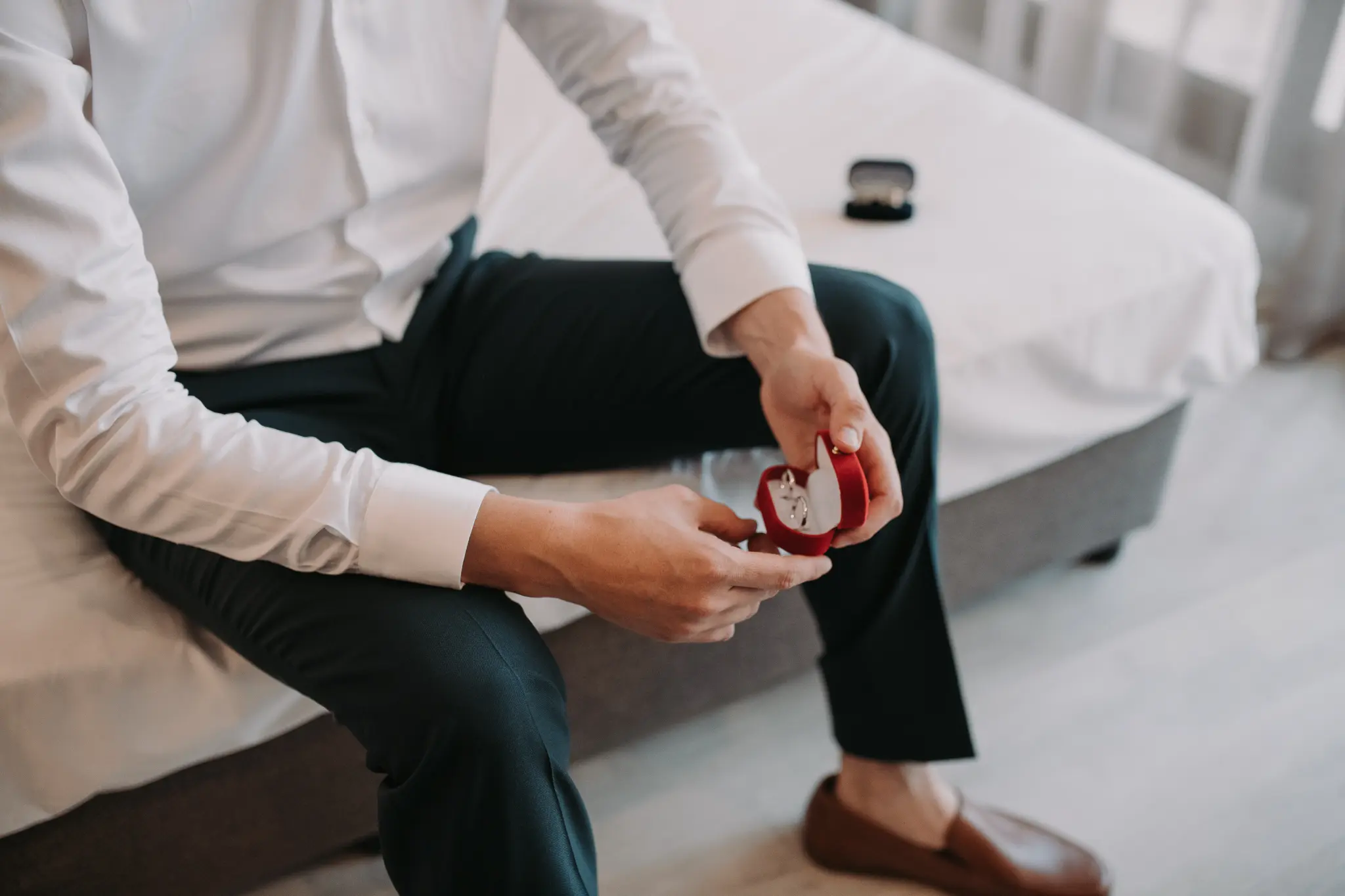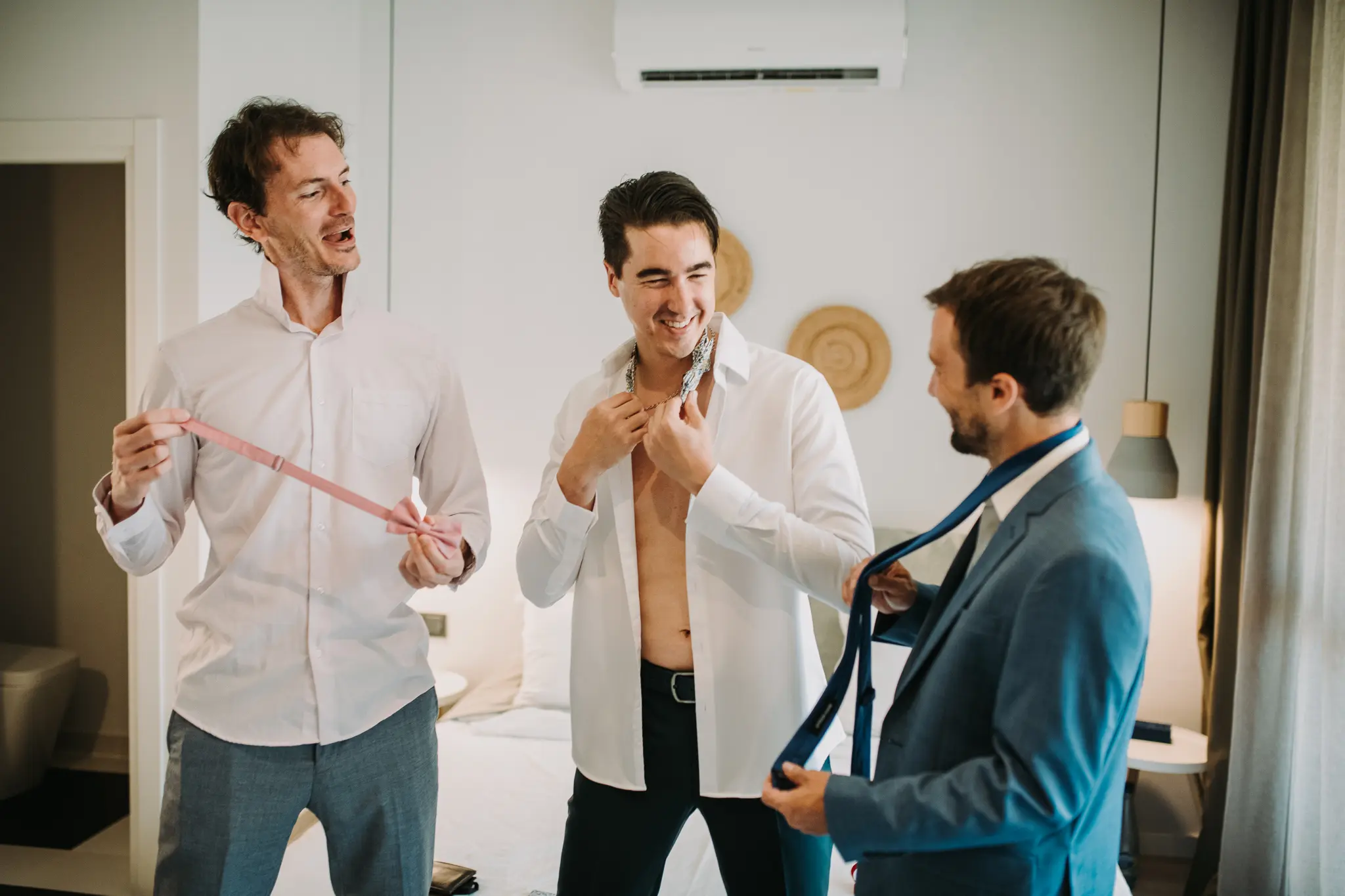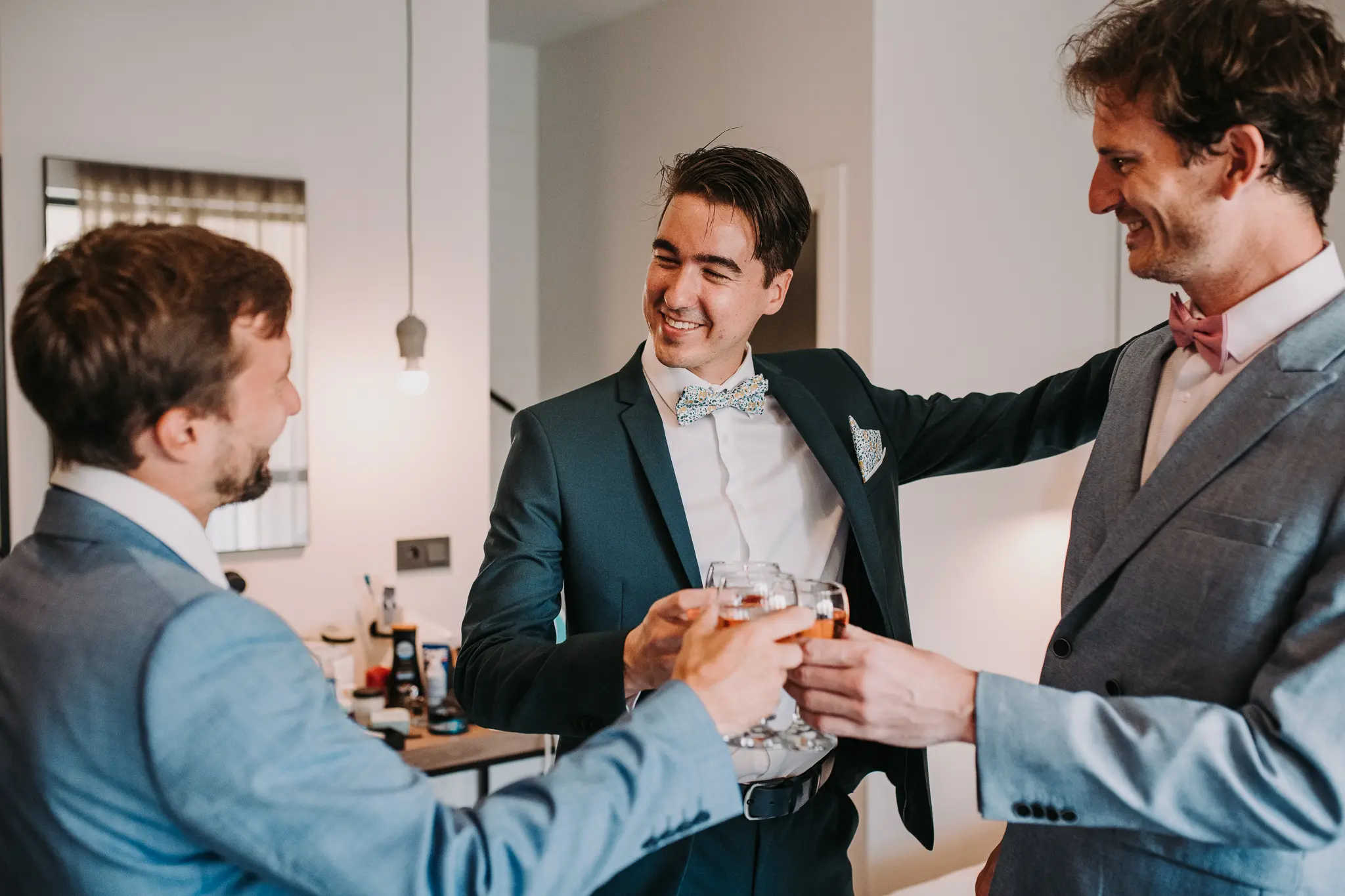 Сватбеният ден започна с приготовленията на булката и младоженеца в Хотел Приморски, където морската атмосфера и спокойствието създадоха идеален старт за емоционална и стилна сватба. Тези моменти са изпълнени с вълнение и са важна част от цялостната сватбена фотография.