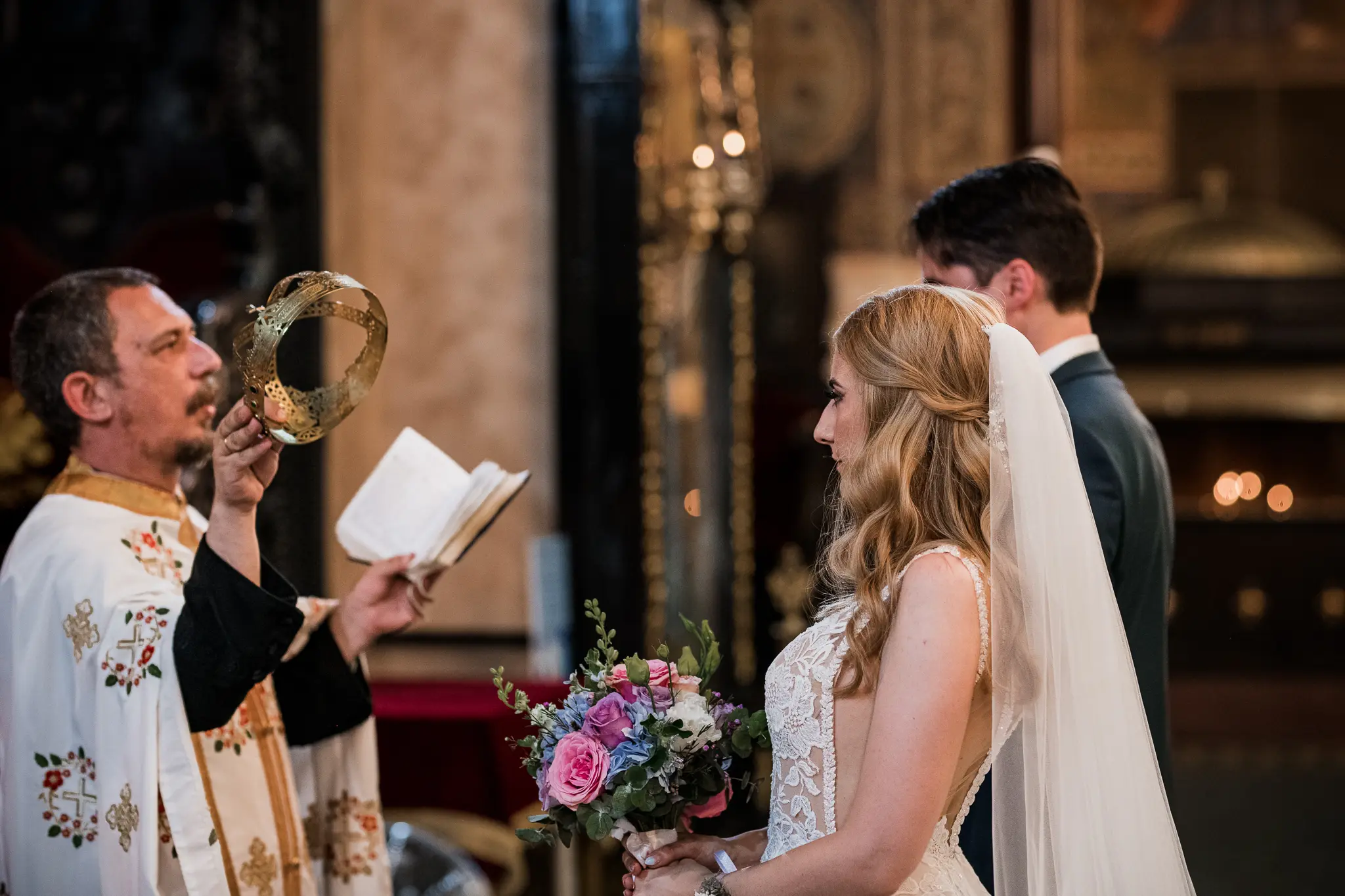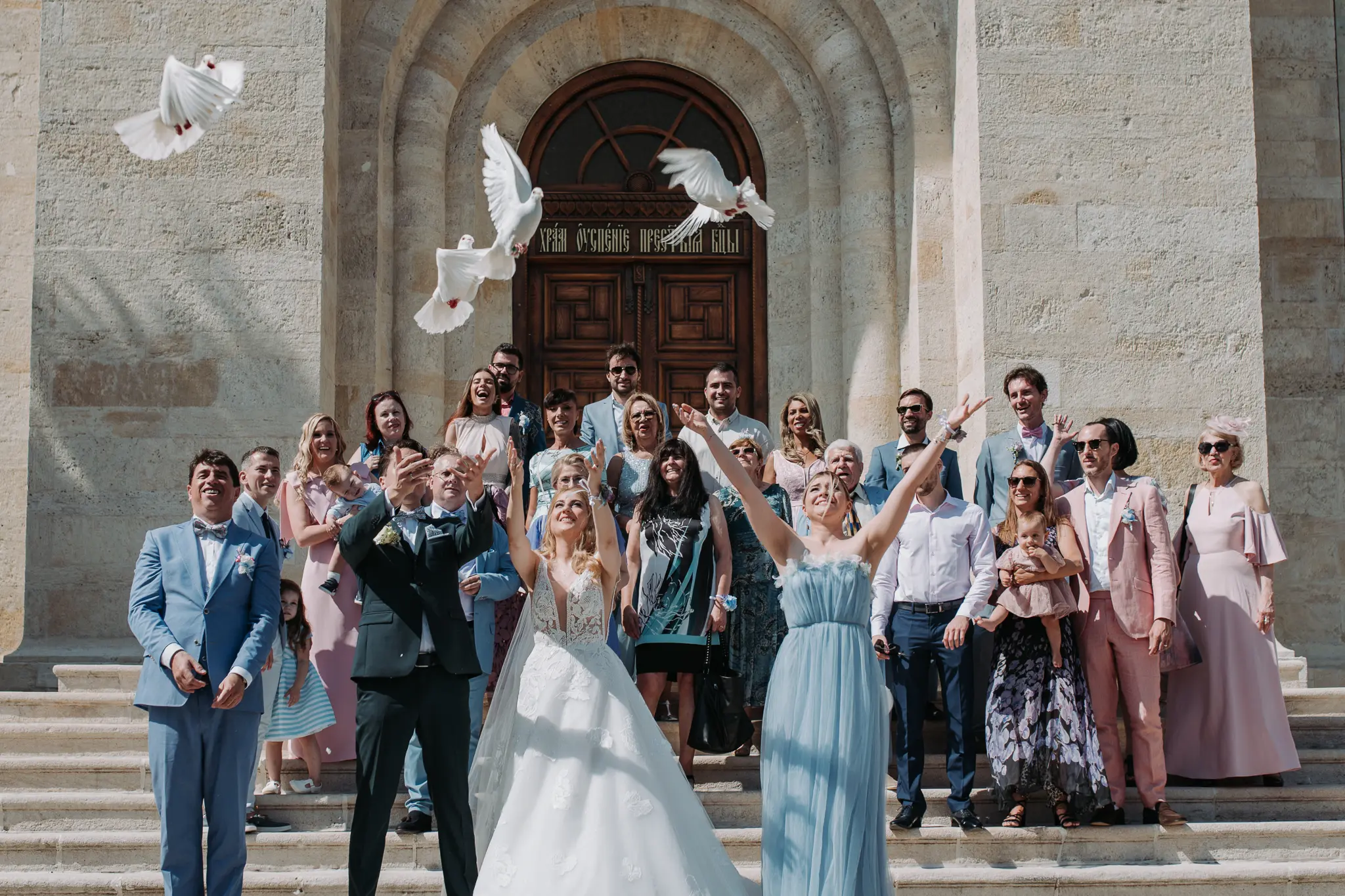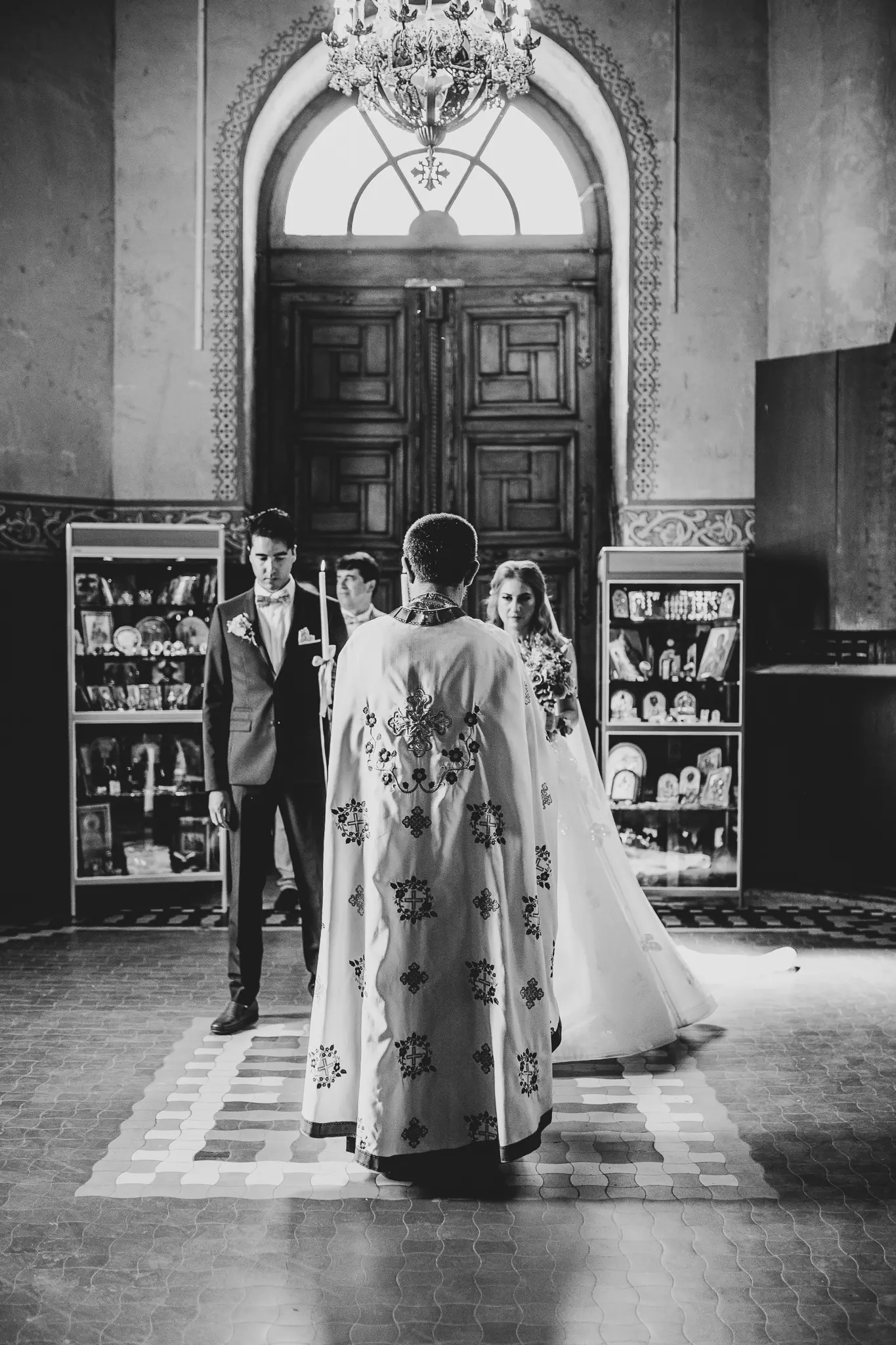 Църковният ритуал в Катедрален храм „Успение Богородично“ придаде тържественост и духовна дълбочина. Величествената архитектура и светлината създадоха условия за класическа и емоционална сватбена фотография.