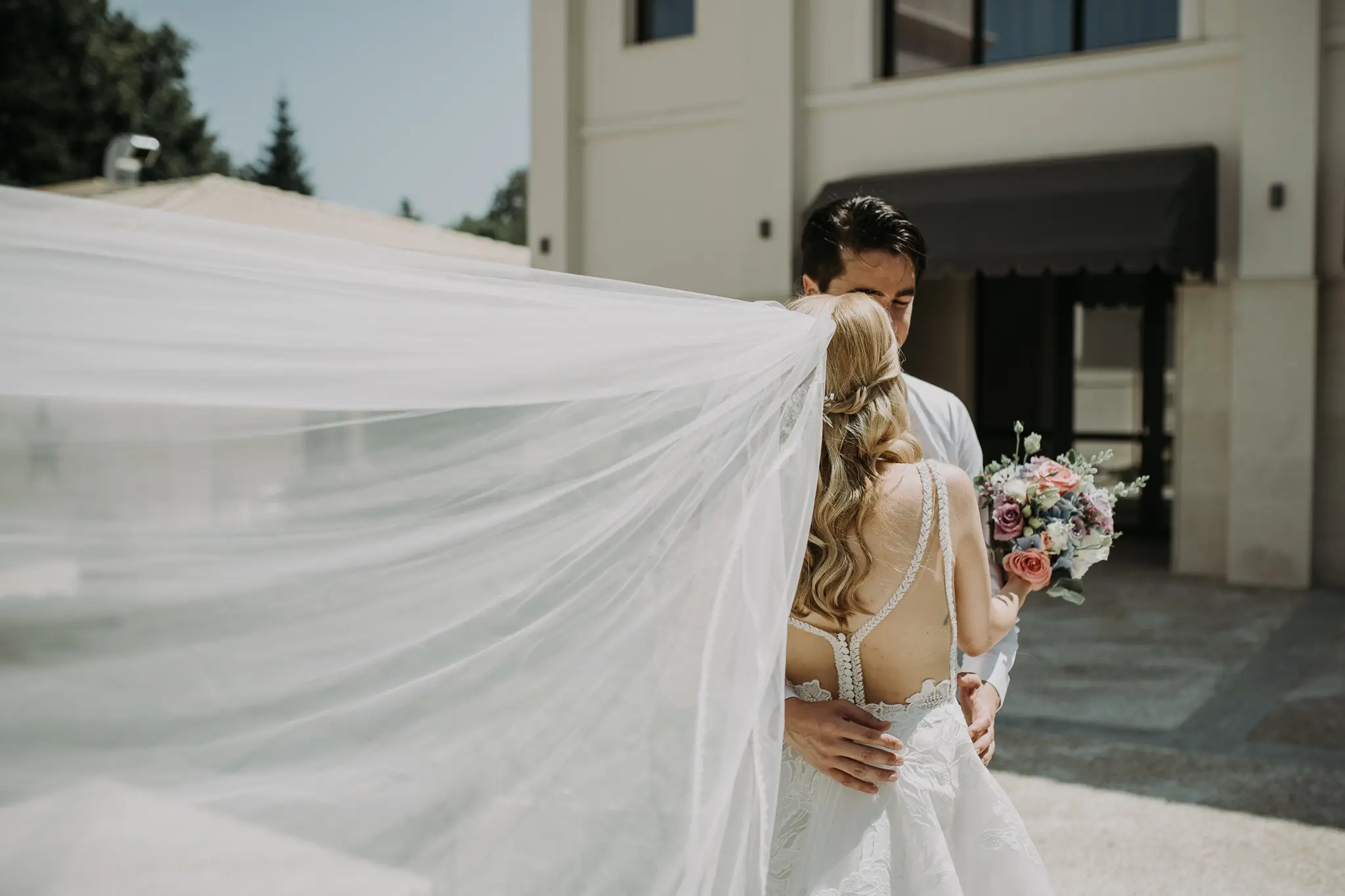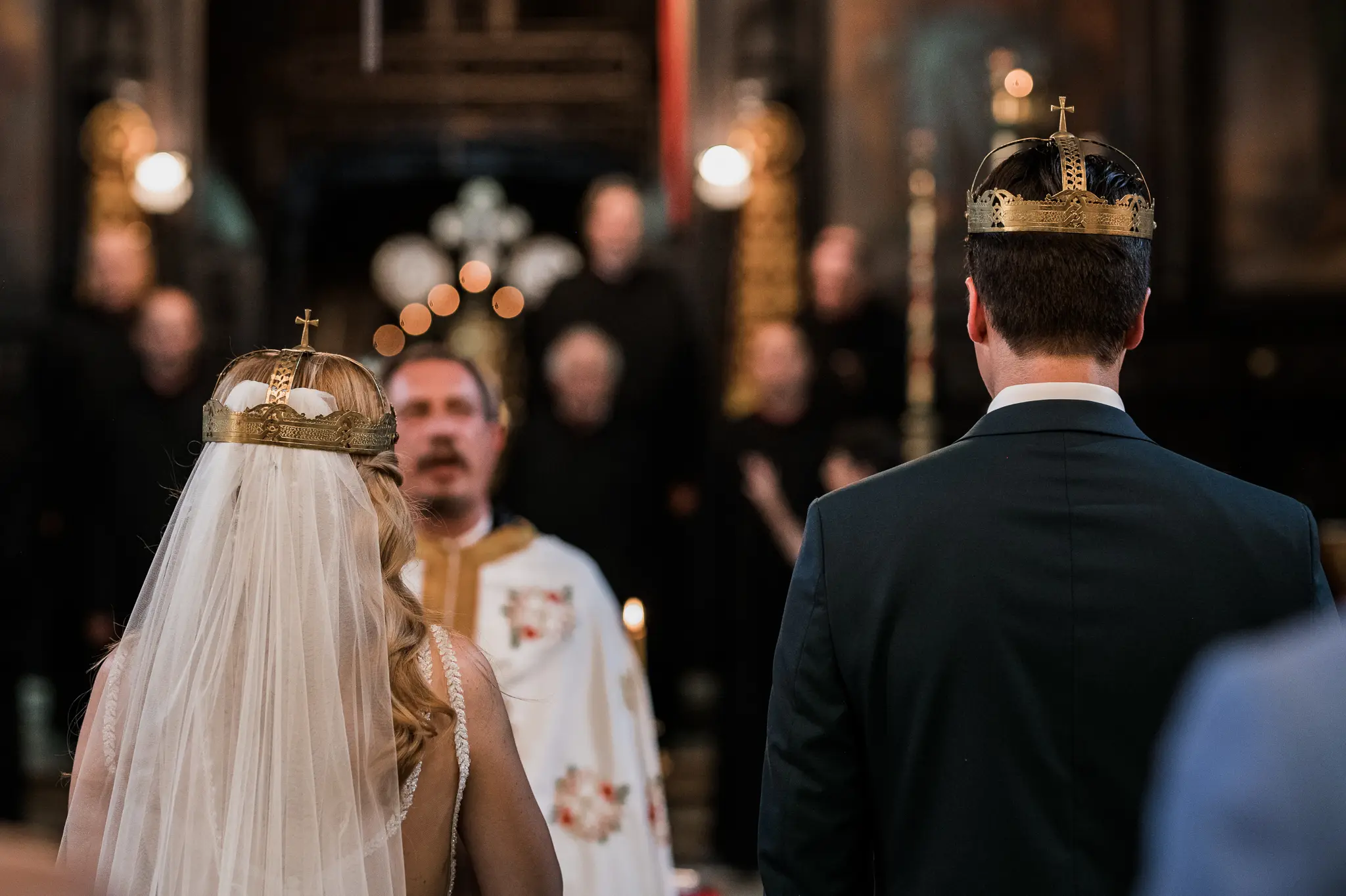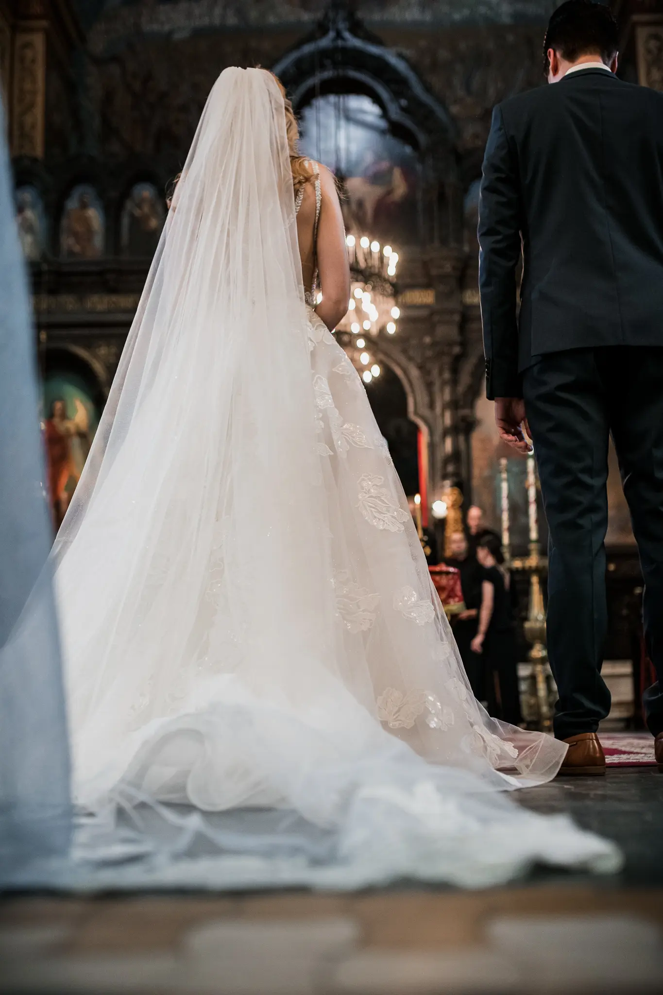 Църковният ритуал в Катедрален храм „Успение Богородично“ придаде тържественост и духовна дълбочина. Величествената архитектура и светлината създадоха условия за класическа и емоционална сватбена фотография.