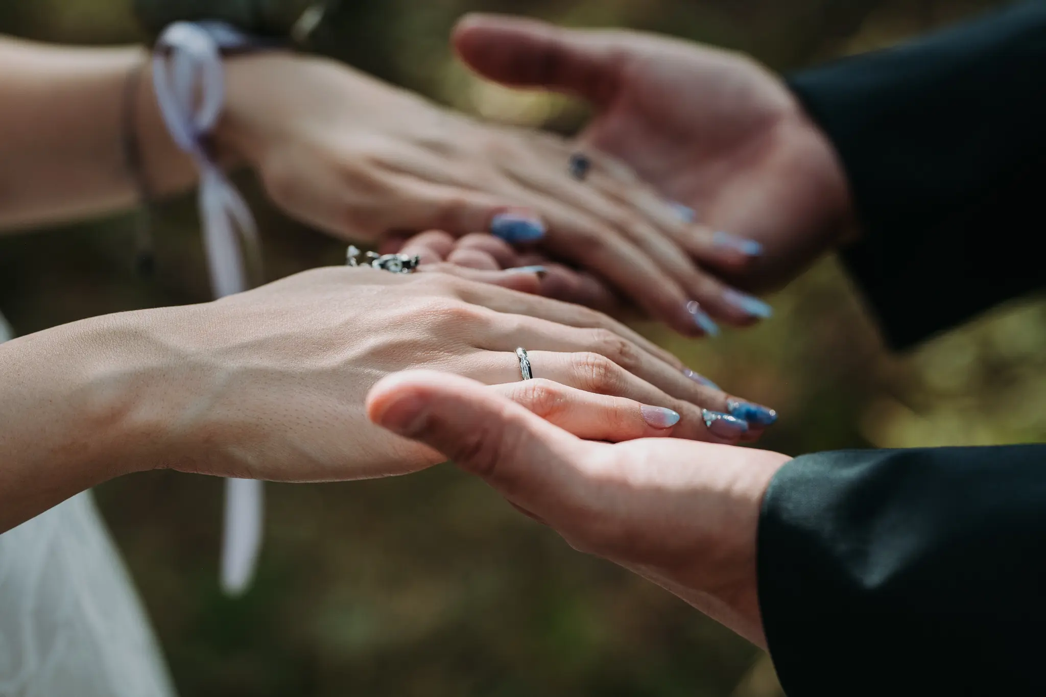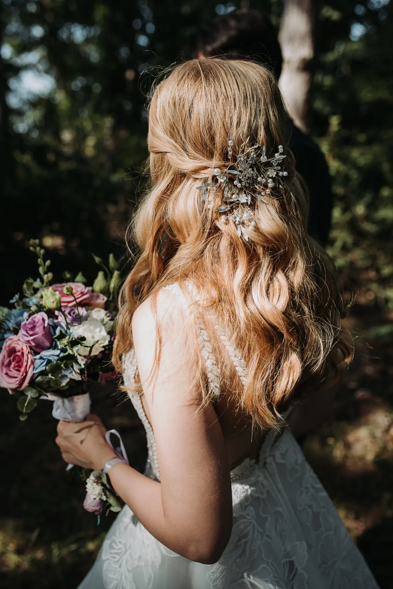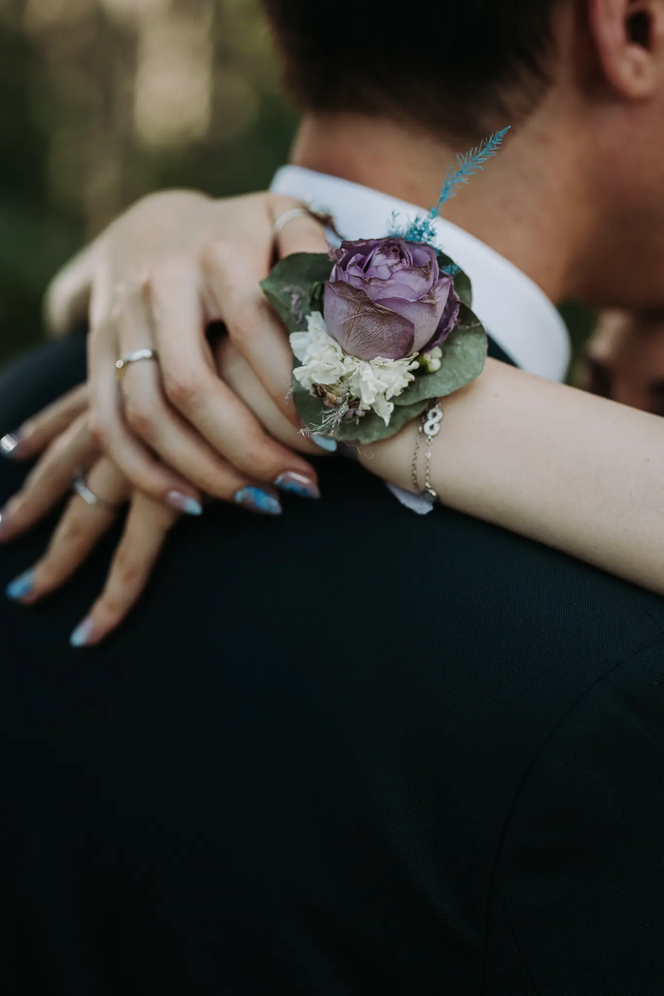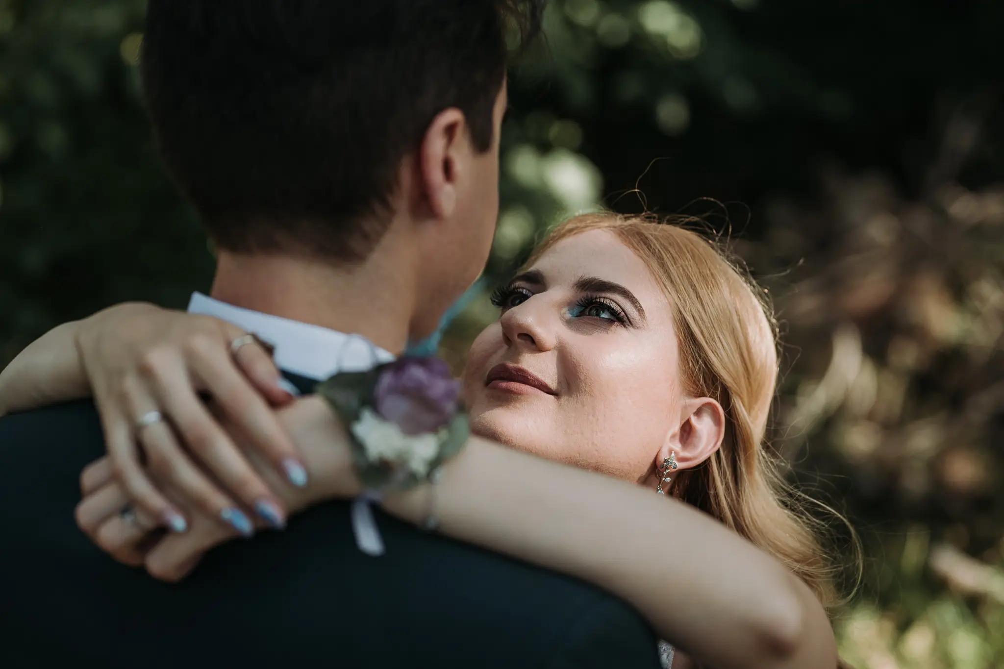 Фотосесията в гората добави романтика и естествена красота. Зеленината и меката светлина оформиха нежни и артистични сватбени кадри.