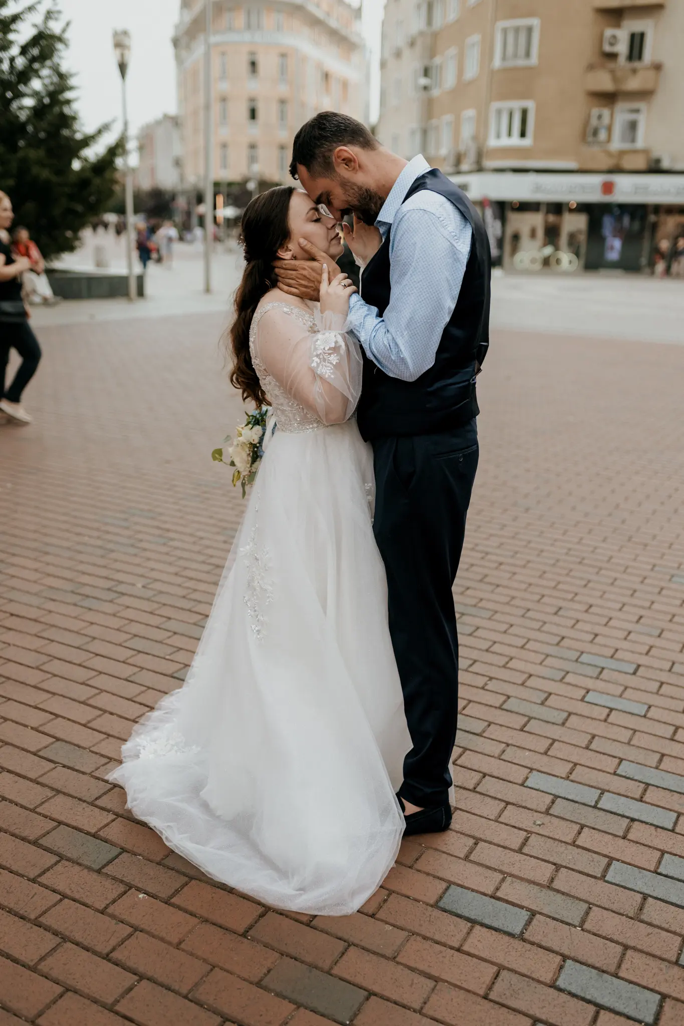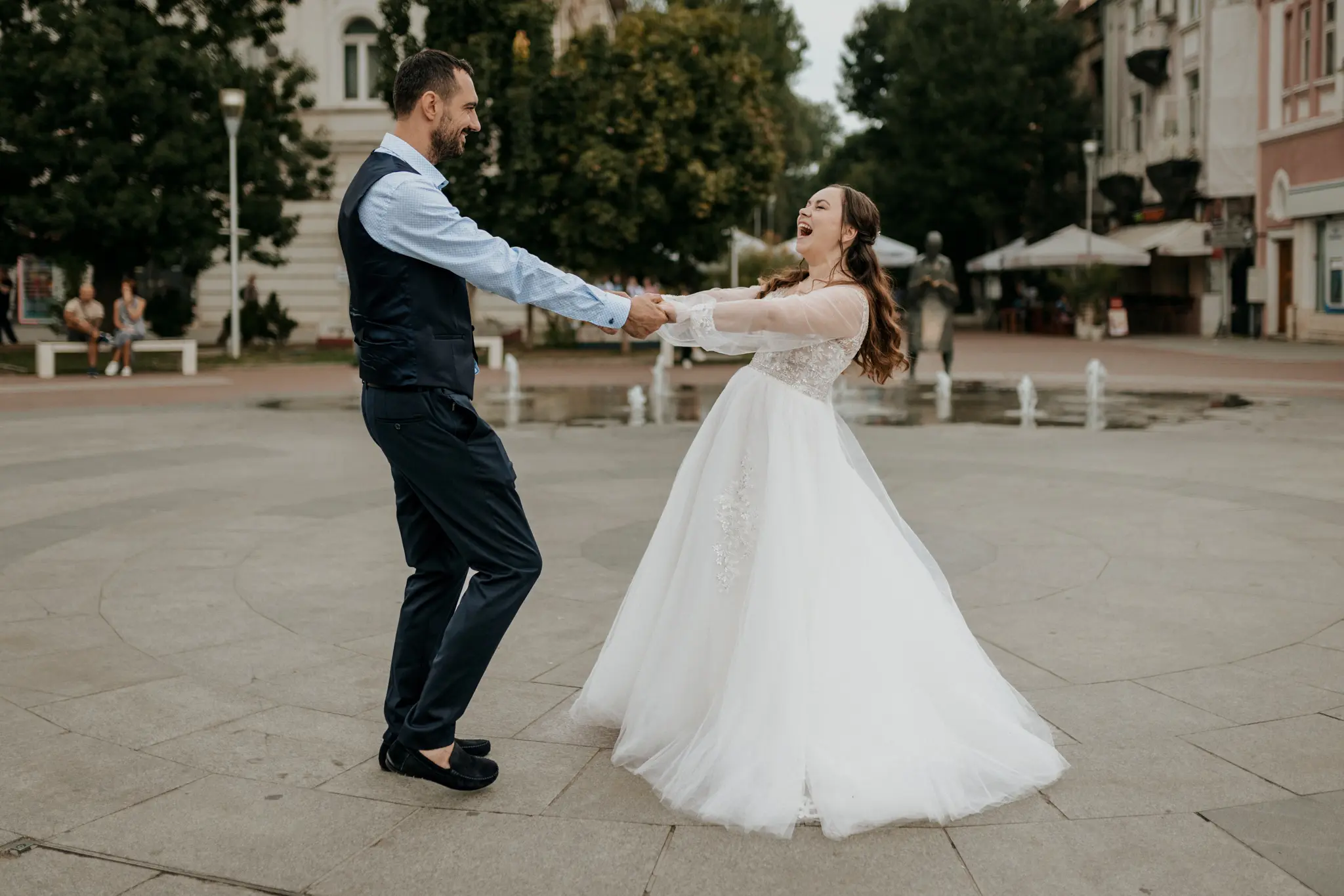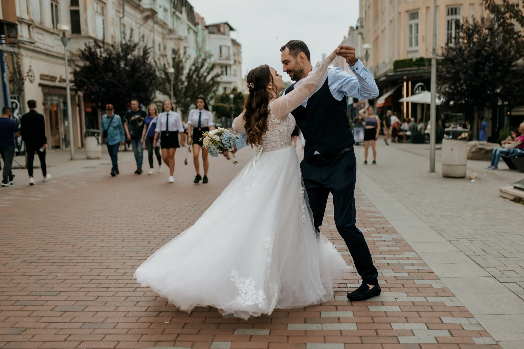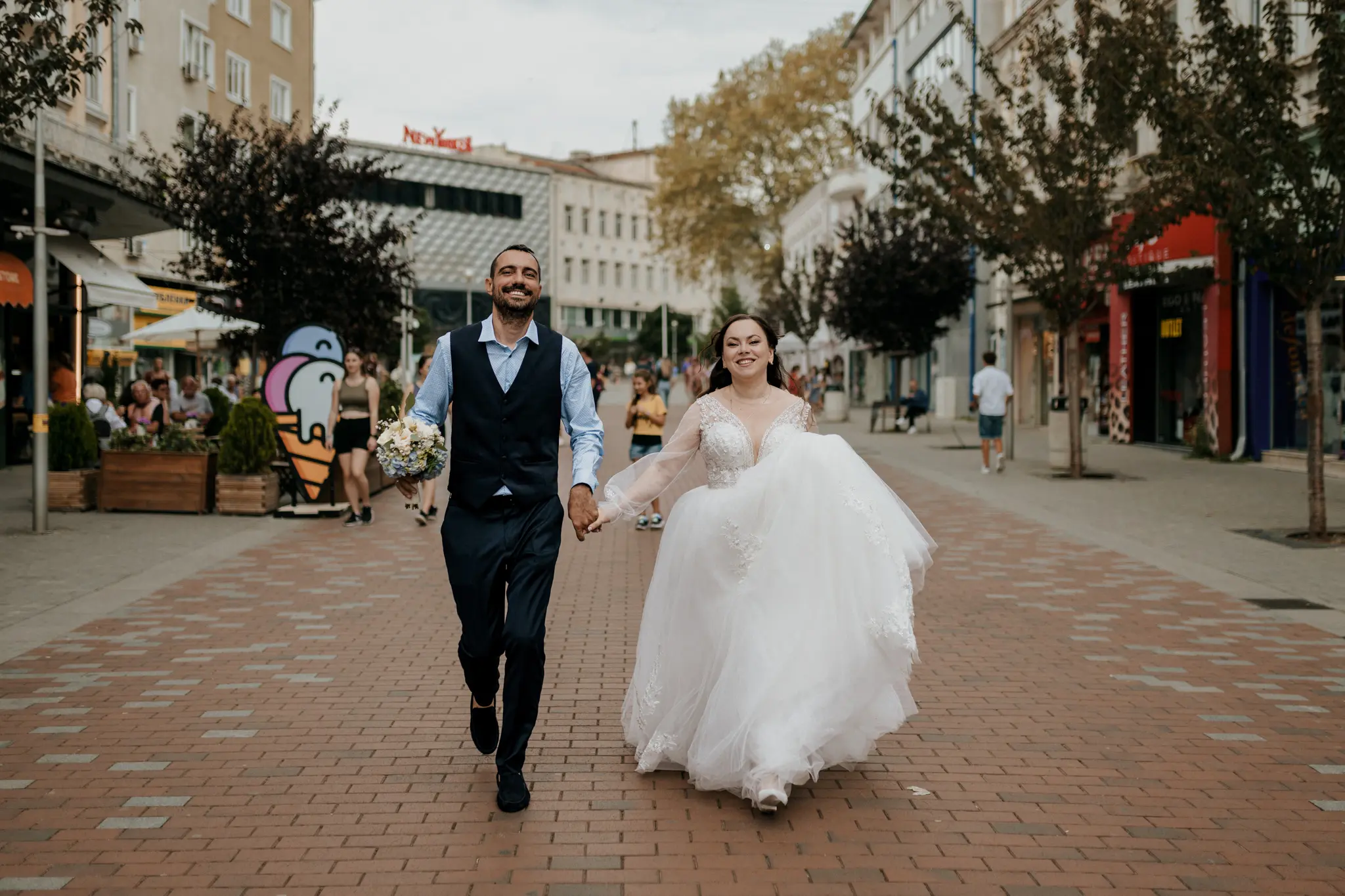 След ритуала тръгнахме на градска фотосесия по улиците на Варна. Градът ни даде своя ритъм – светлина, движение и непринудени кадри, които разказват историята такава, каквато е. Продължихме с църковен ритуал в малката и много красива църква Св. Атанасий – място с душа и тишина, която говори сама.