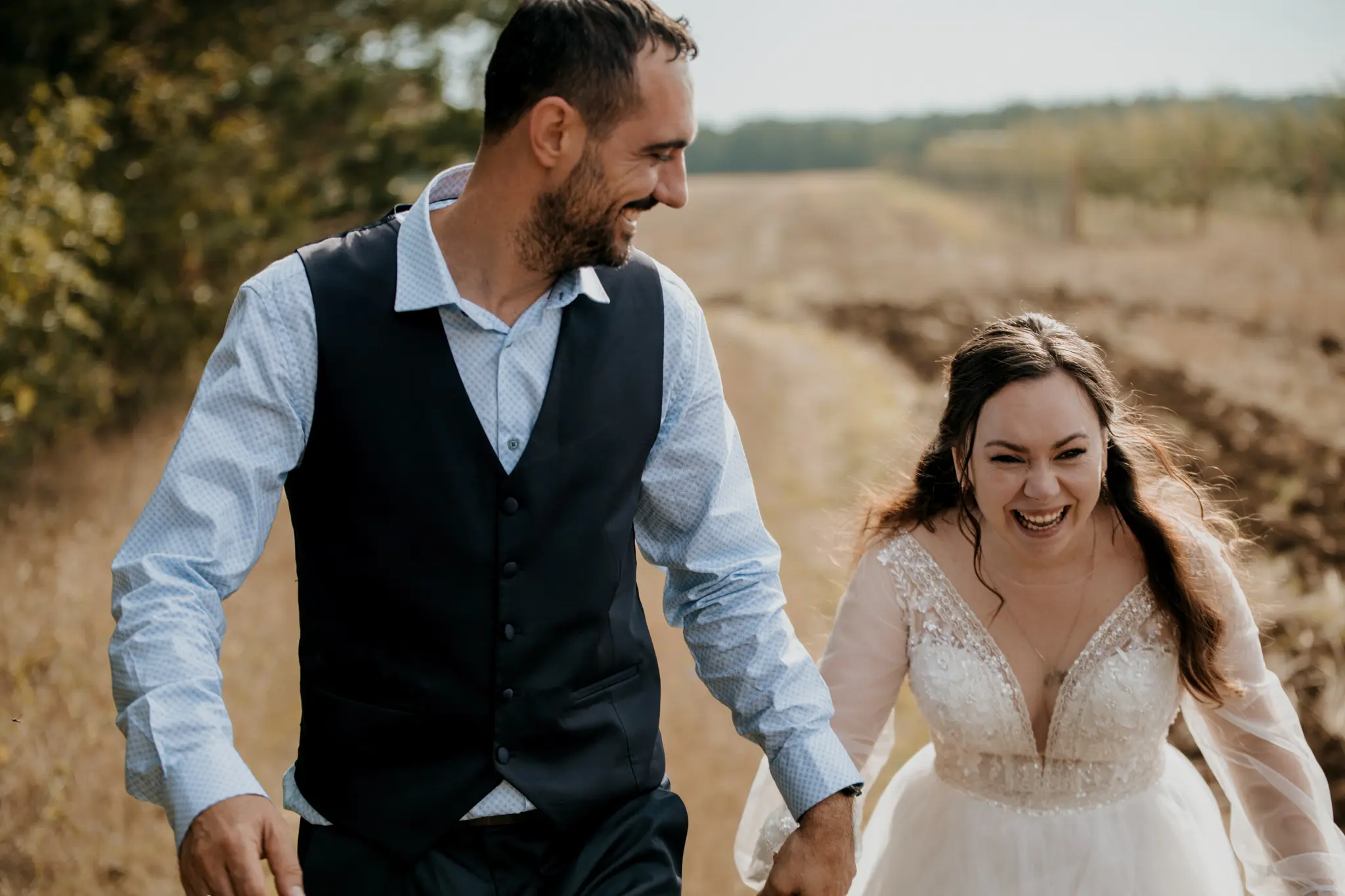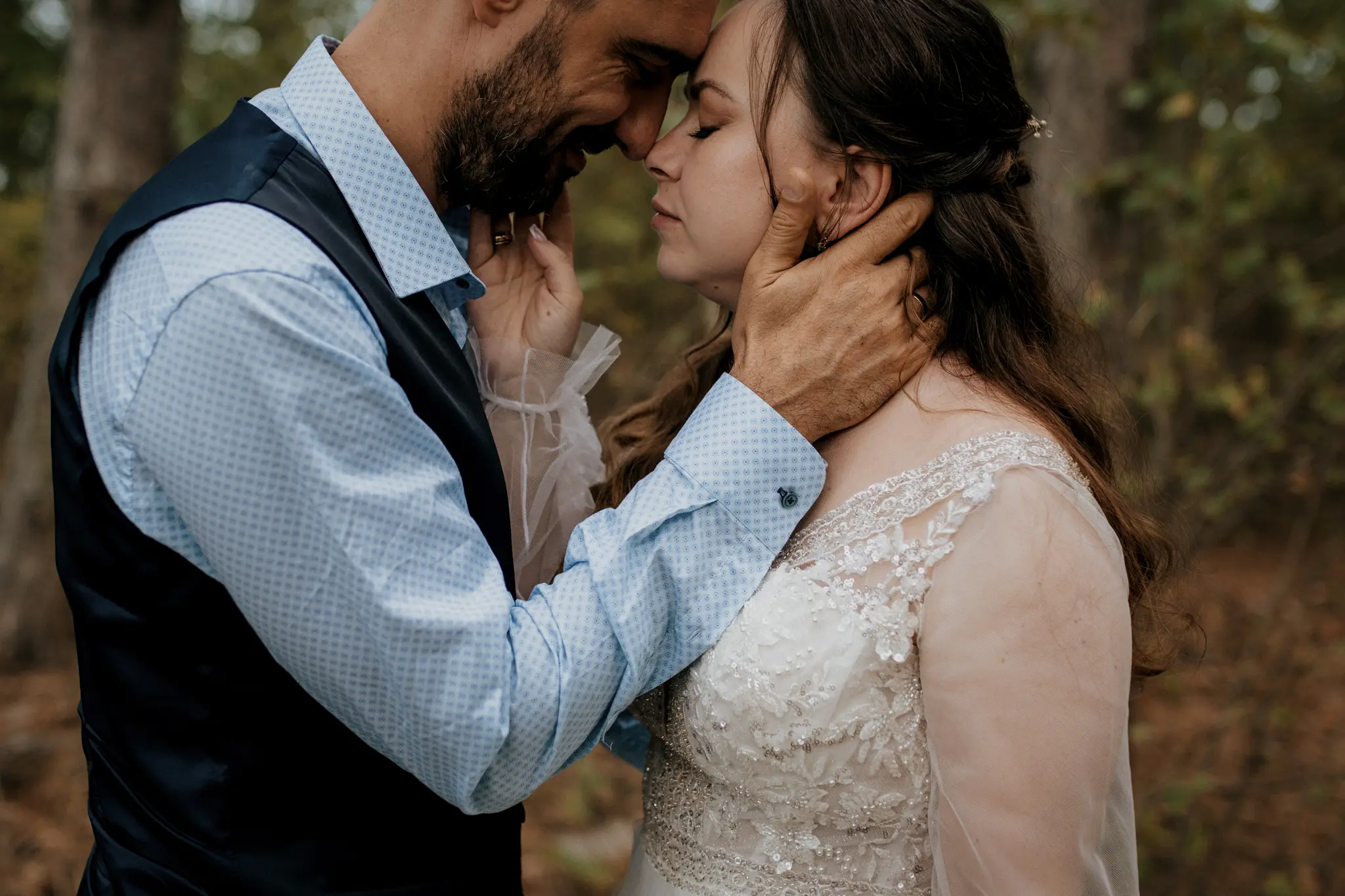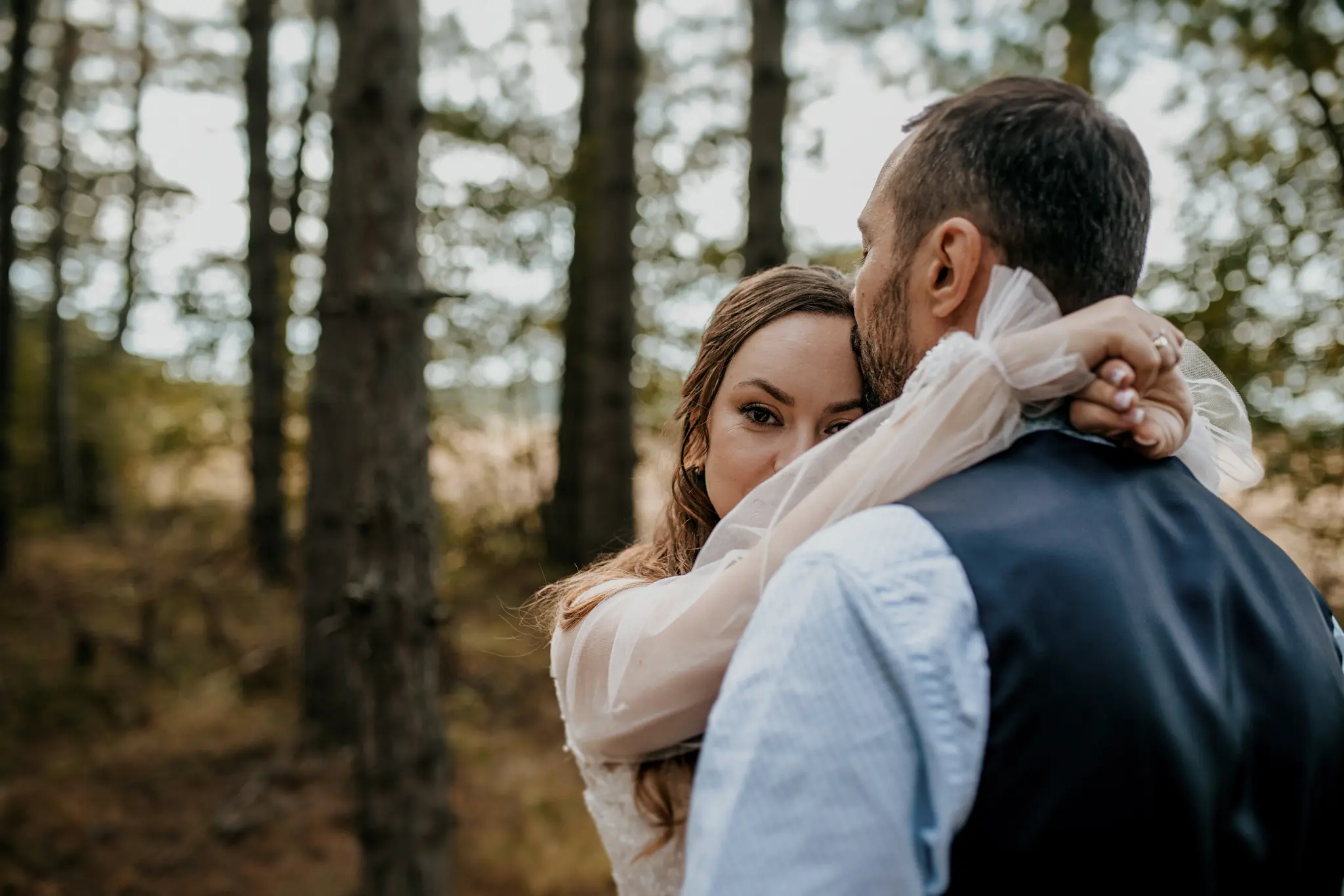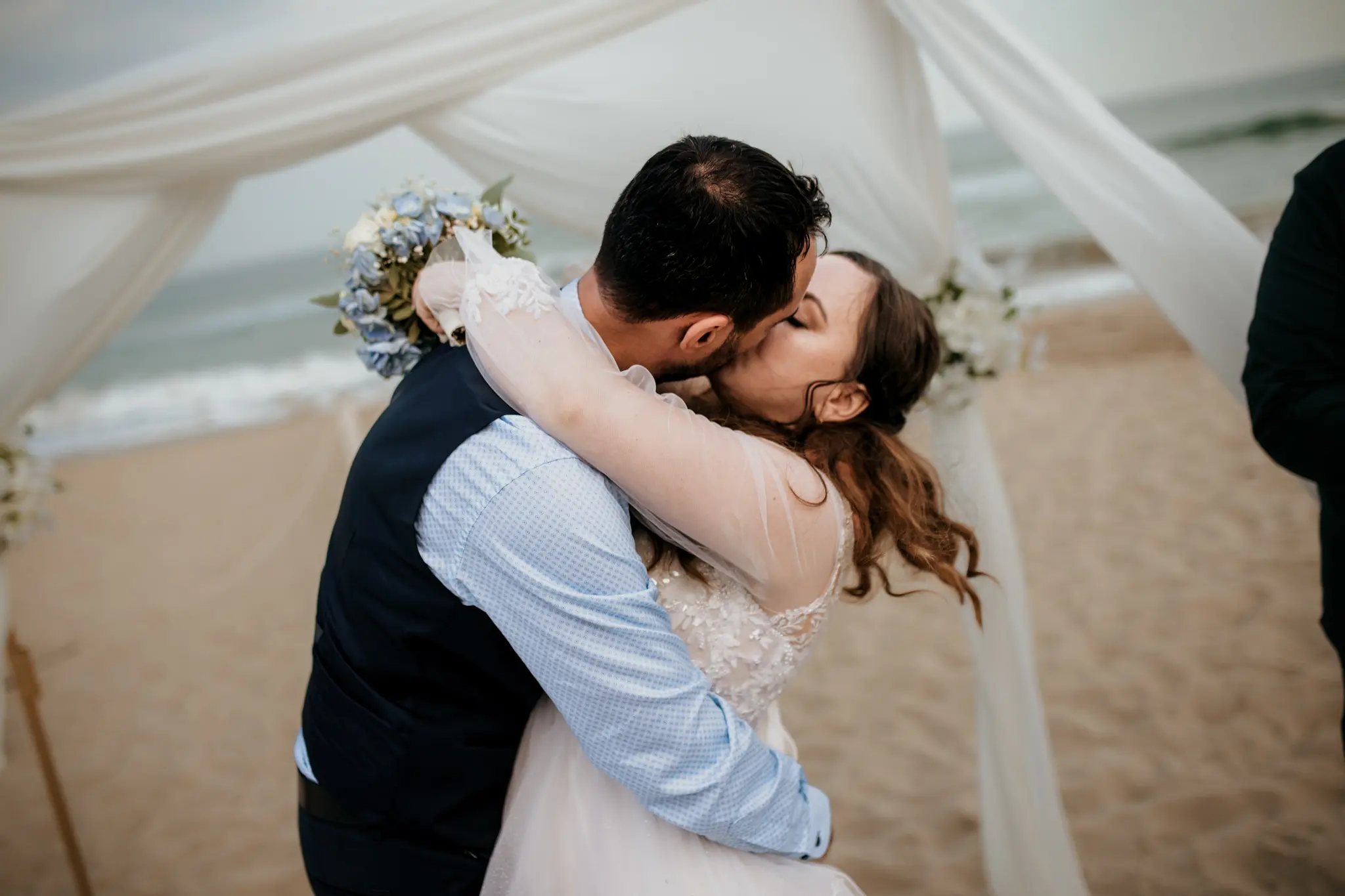 Последната фотосесия за деня беше в гората – спокойна, дълбока и много лична. А вечерта ни отведе в Therma ECO Village, където изнесеният ритуал и партито бяха буквално на брега на морето – с вятър, смях и танци под открито небе. Това е моят стил на сватбено фотозаснемане – разказ в кадри.