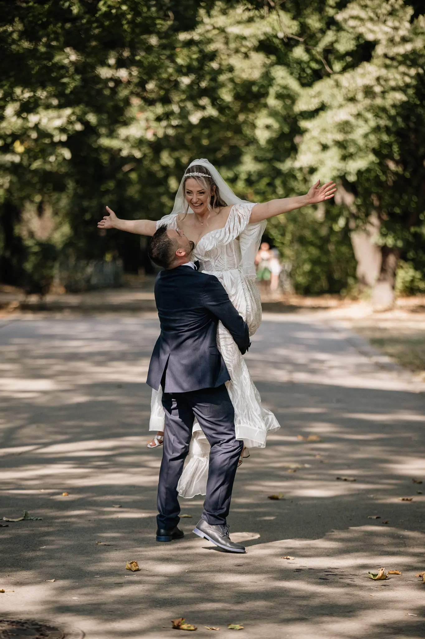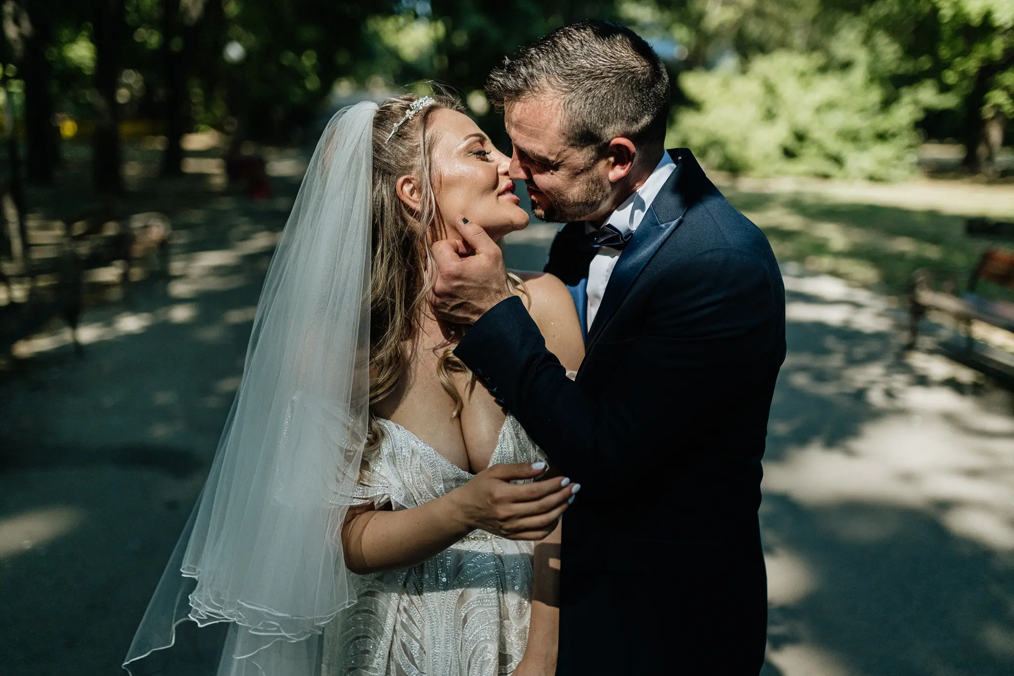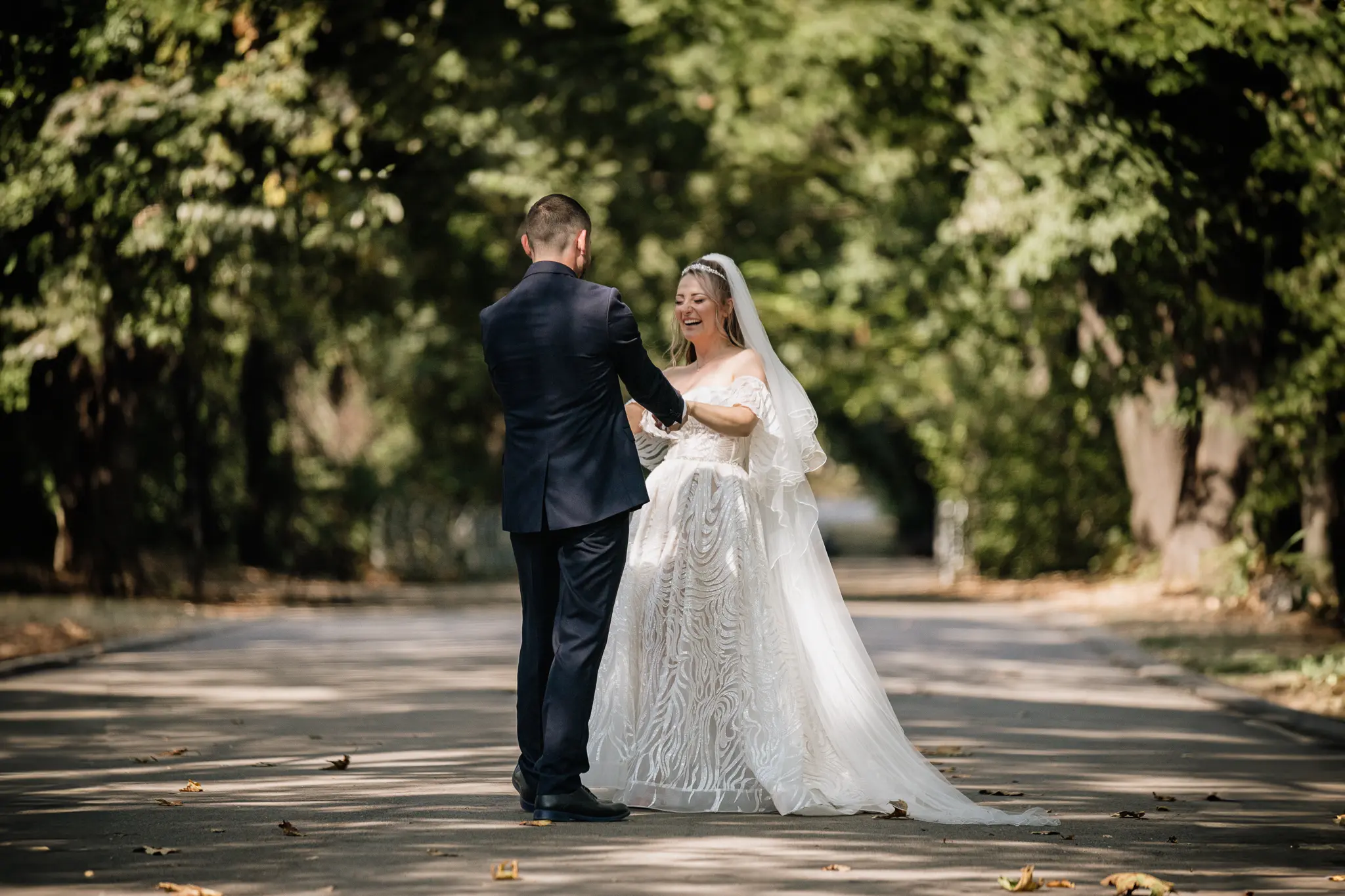 Градската фотосесия добавя модерен и артистичен елемент към сватбения албум. Разходката из града позволява създаването на естествени, стилни и динамични снимки, които контрастират красиво с официалната част на деня.
