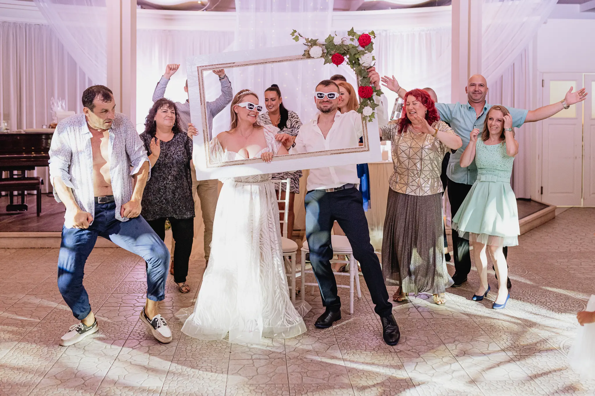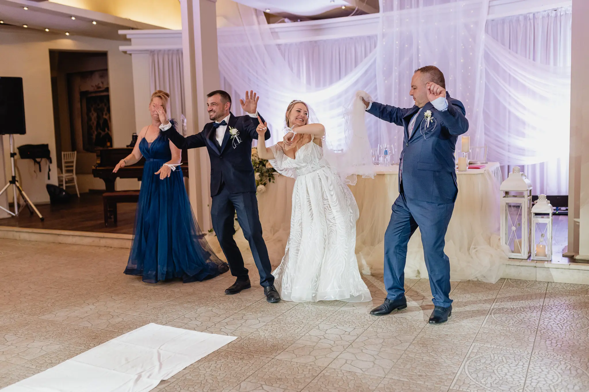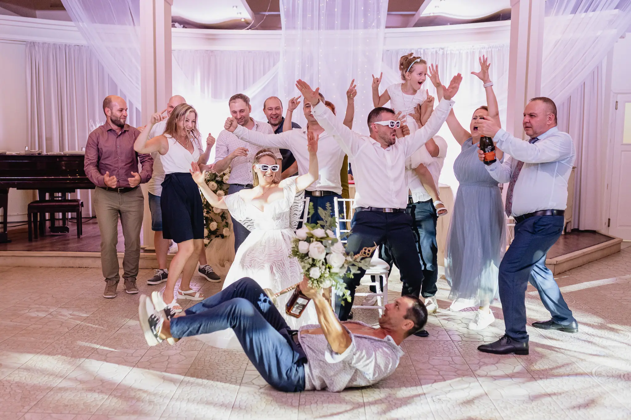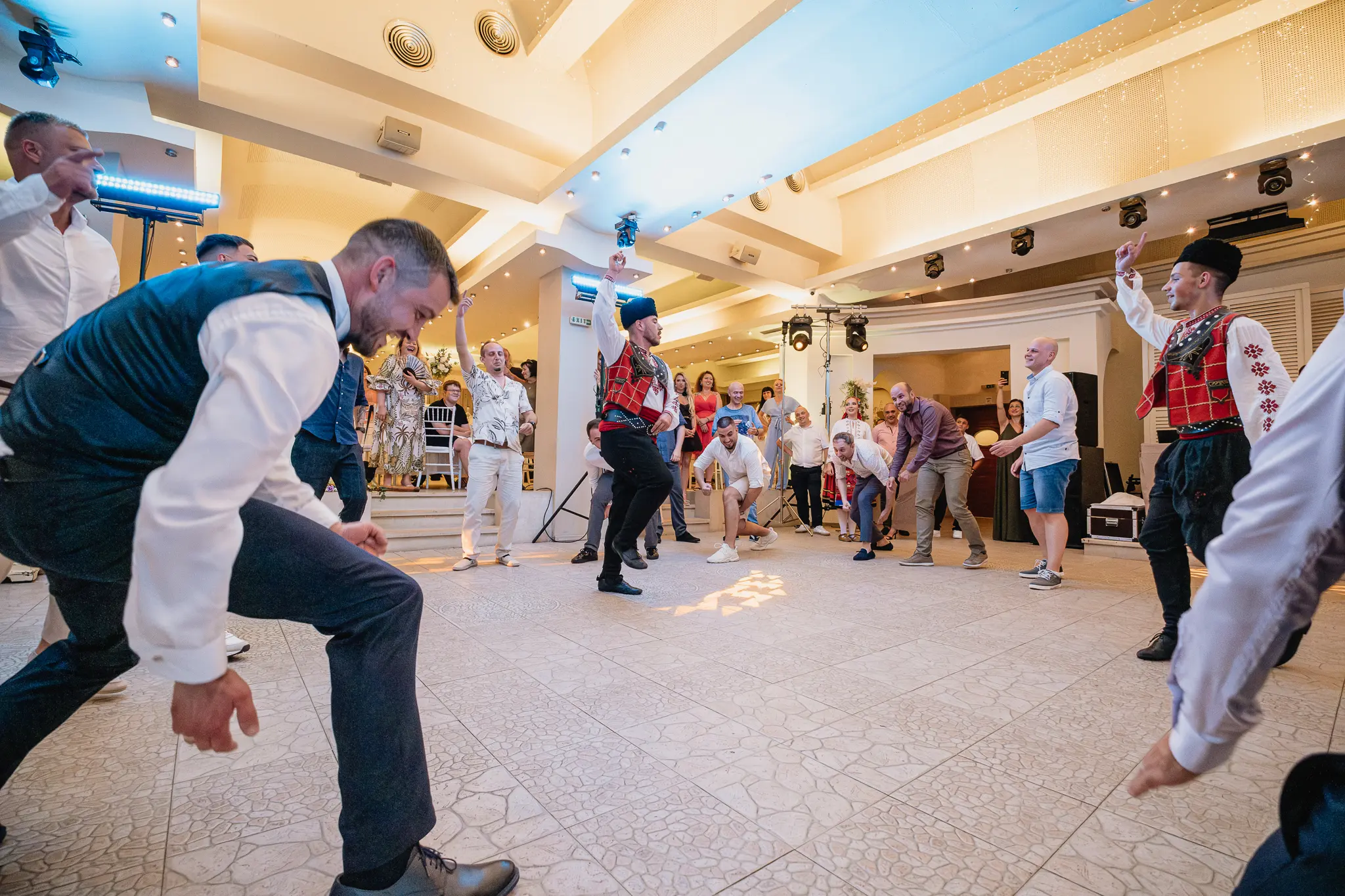Изнесеният ритуал в Комплекс Хоризонт съчетава романтика и удобство, а вечерното парти преминава в истински празник с танци, музика и силни емоции. Това е кулминацията на сватбения ден и моментът, в който се раждат най-искрените и запомнящи се кадри.