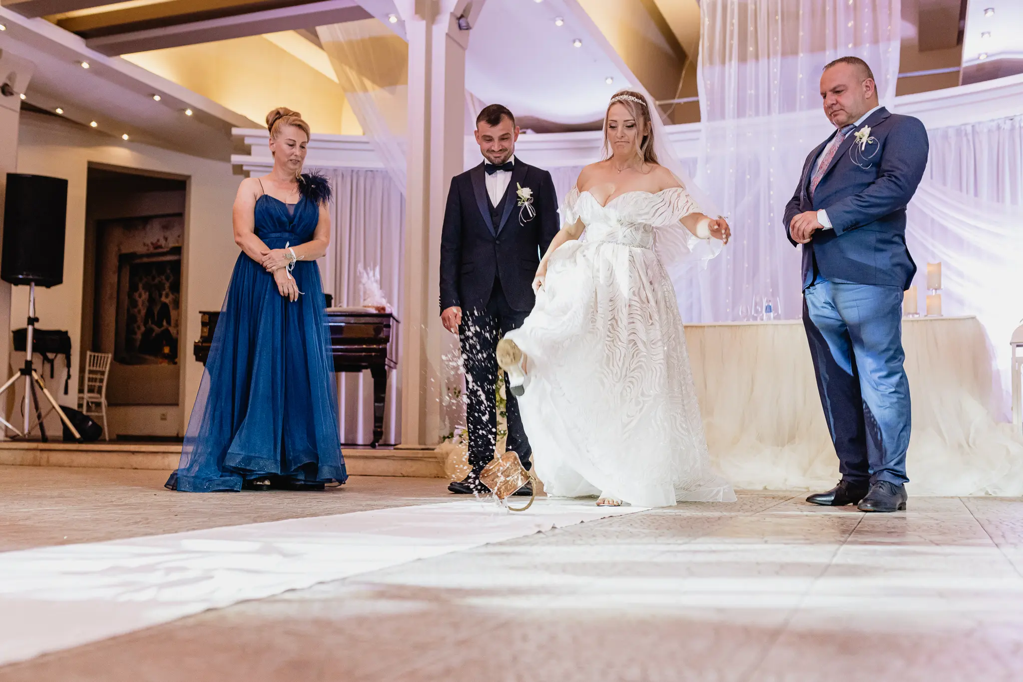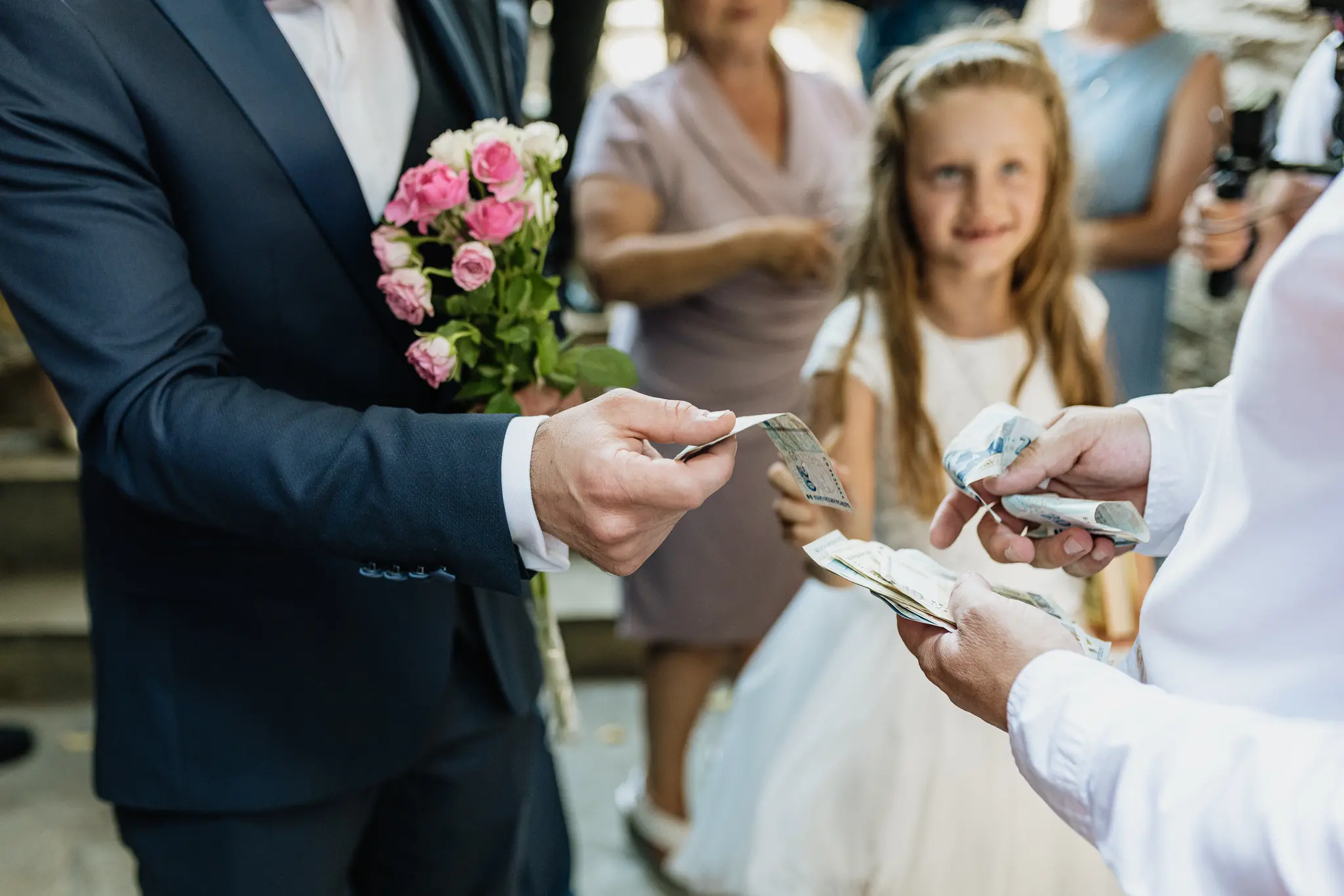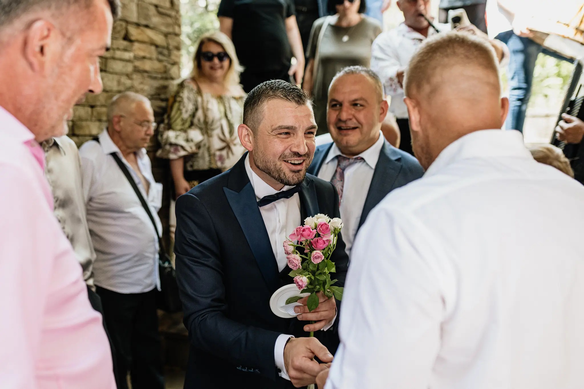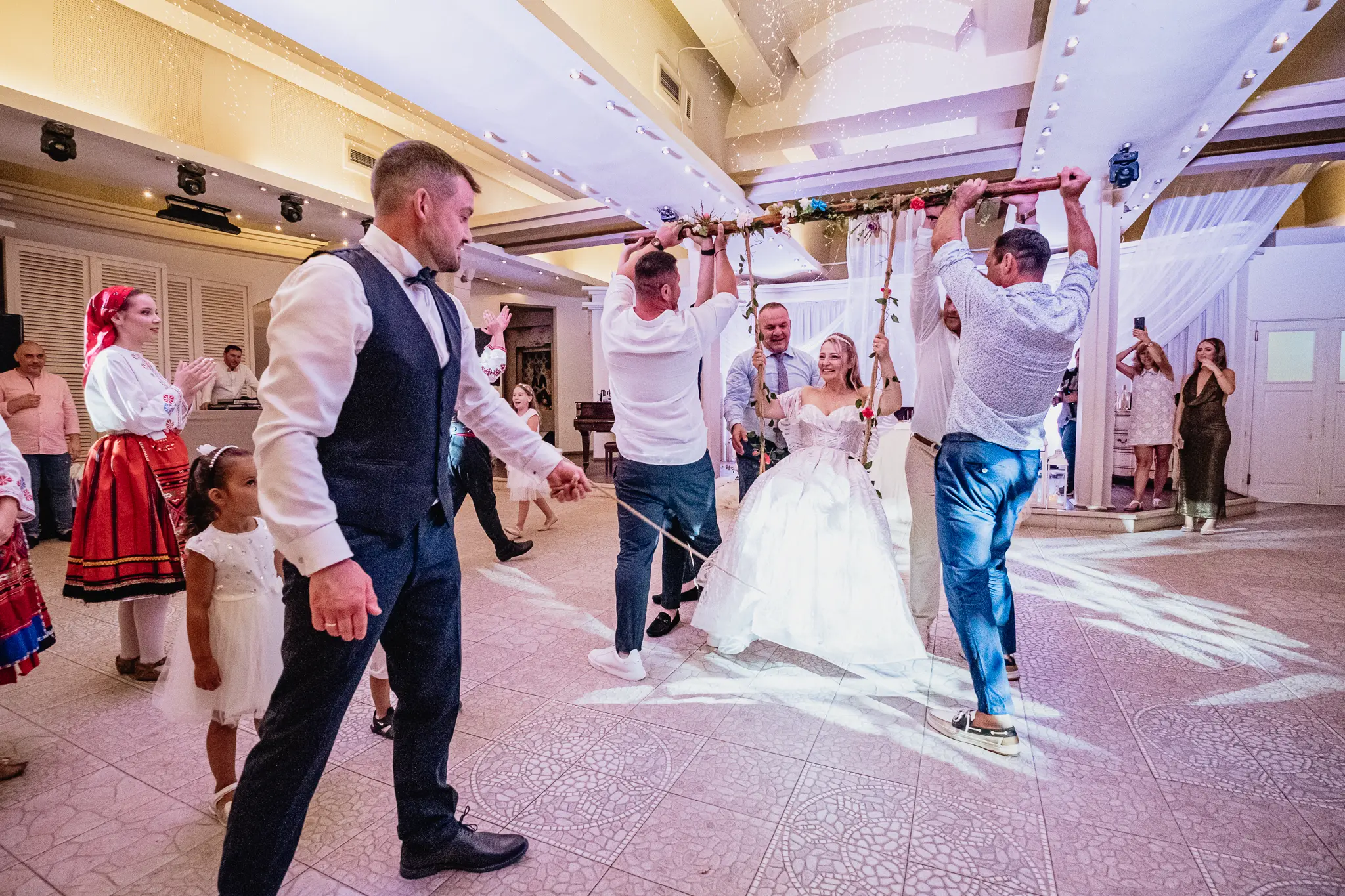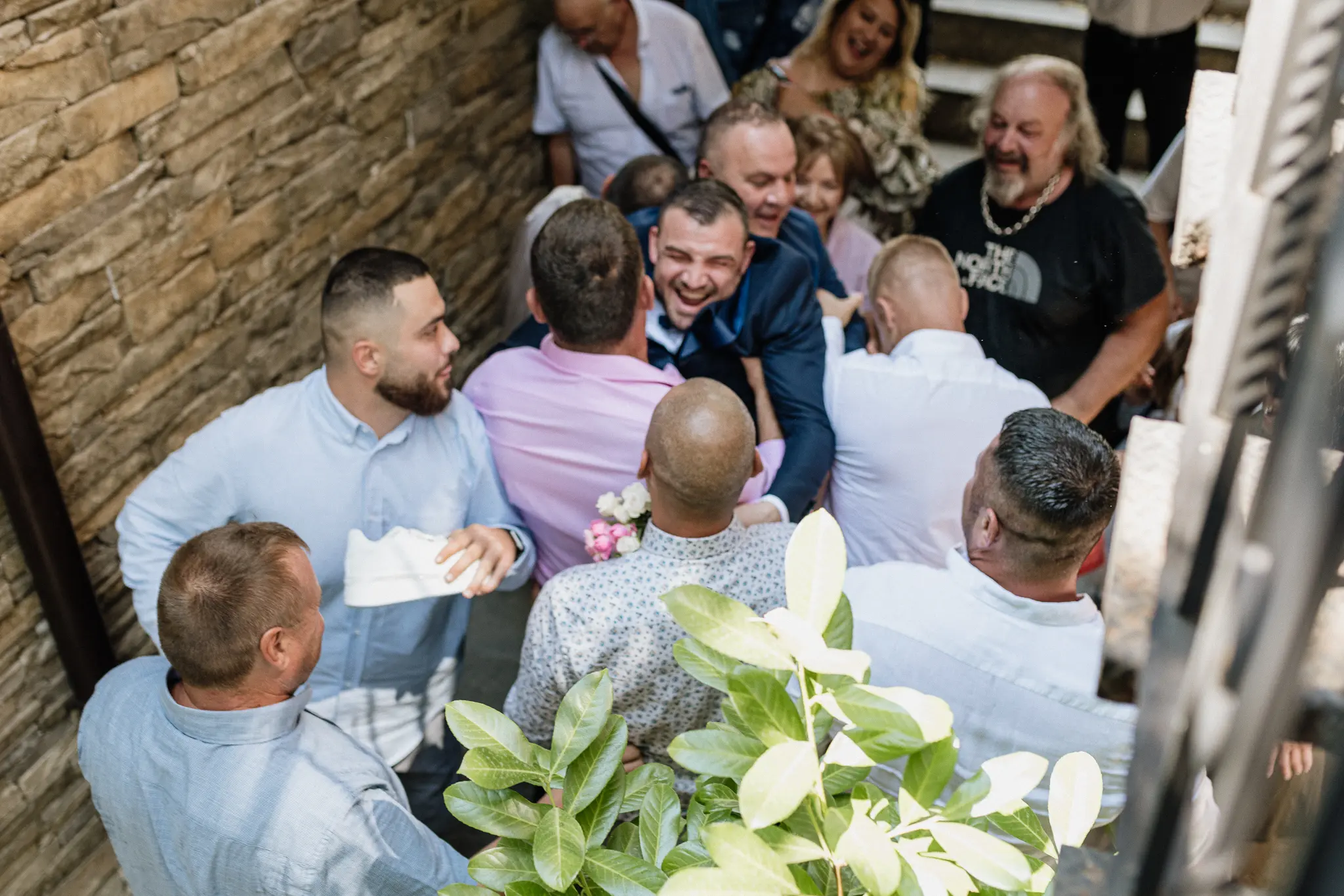Денят започва с традиционни ритуали и класическо крадене на булката – момент, изпълнен с емоции, усмивки и много настроение. Тези сцени са любими за сватбена фотография, защото улавят автентичните реакции на семейството и гостите.