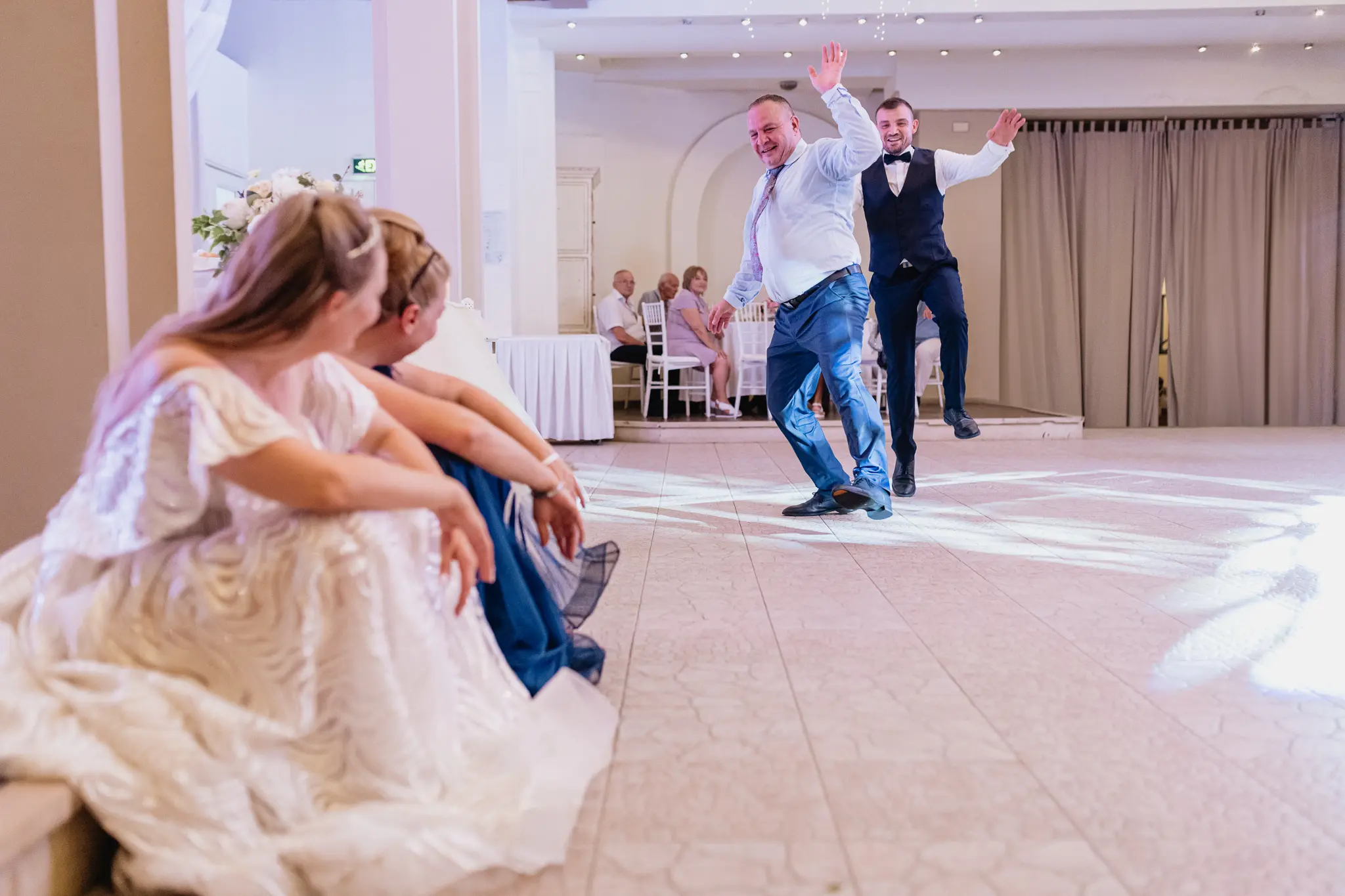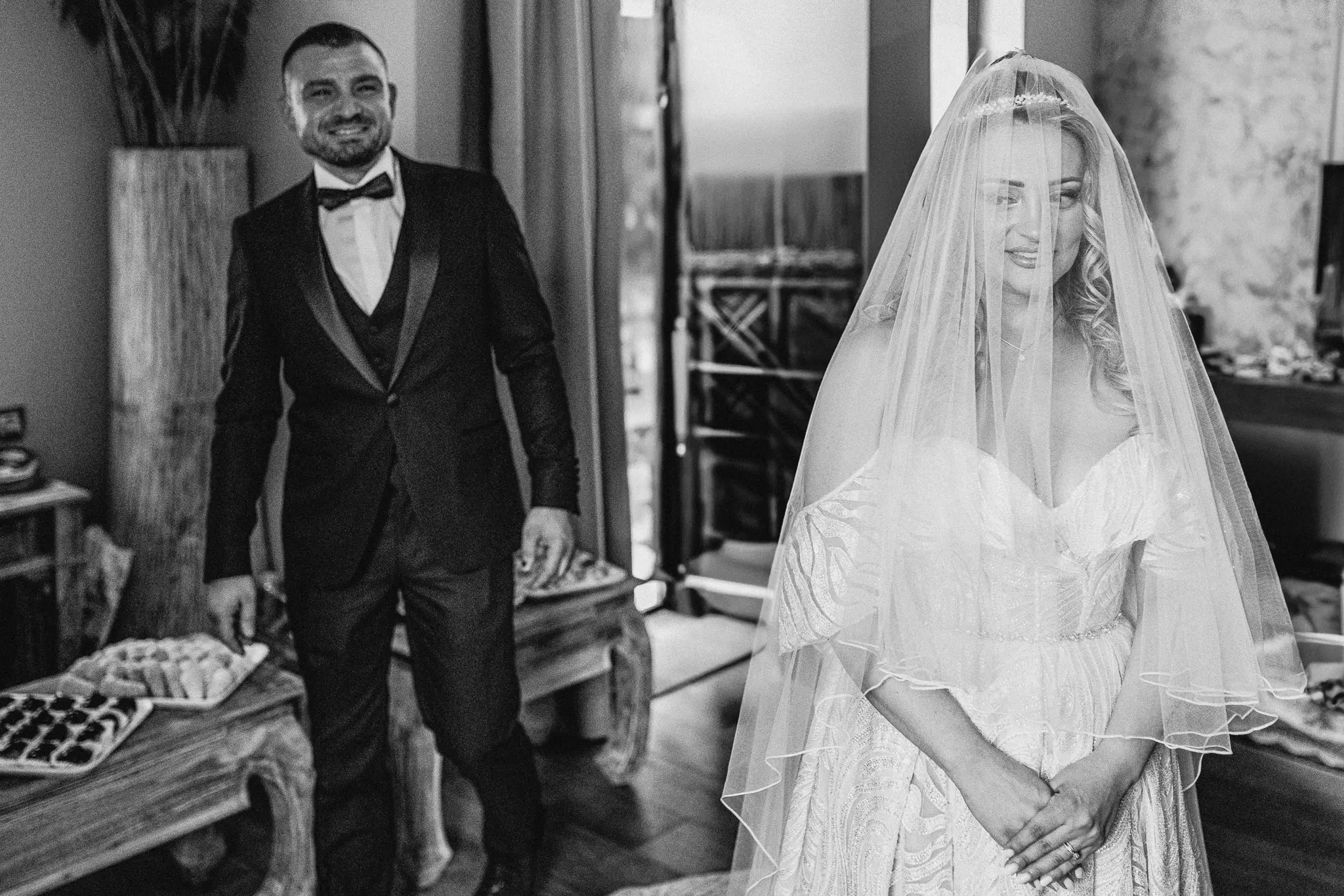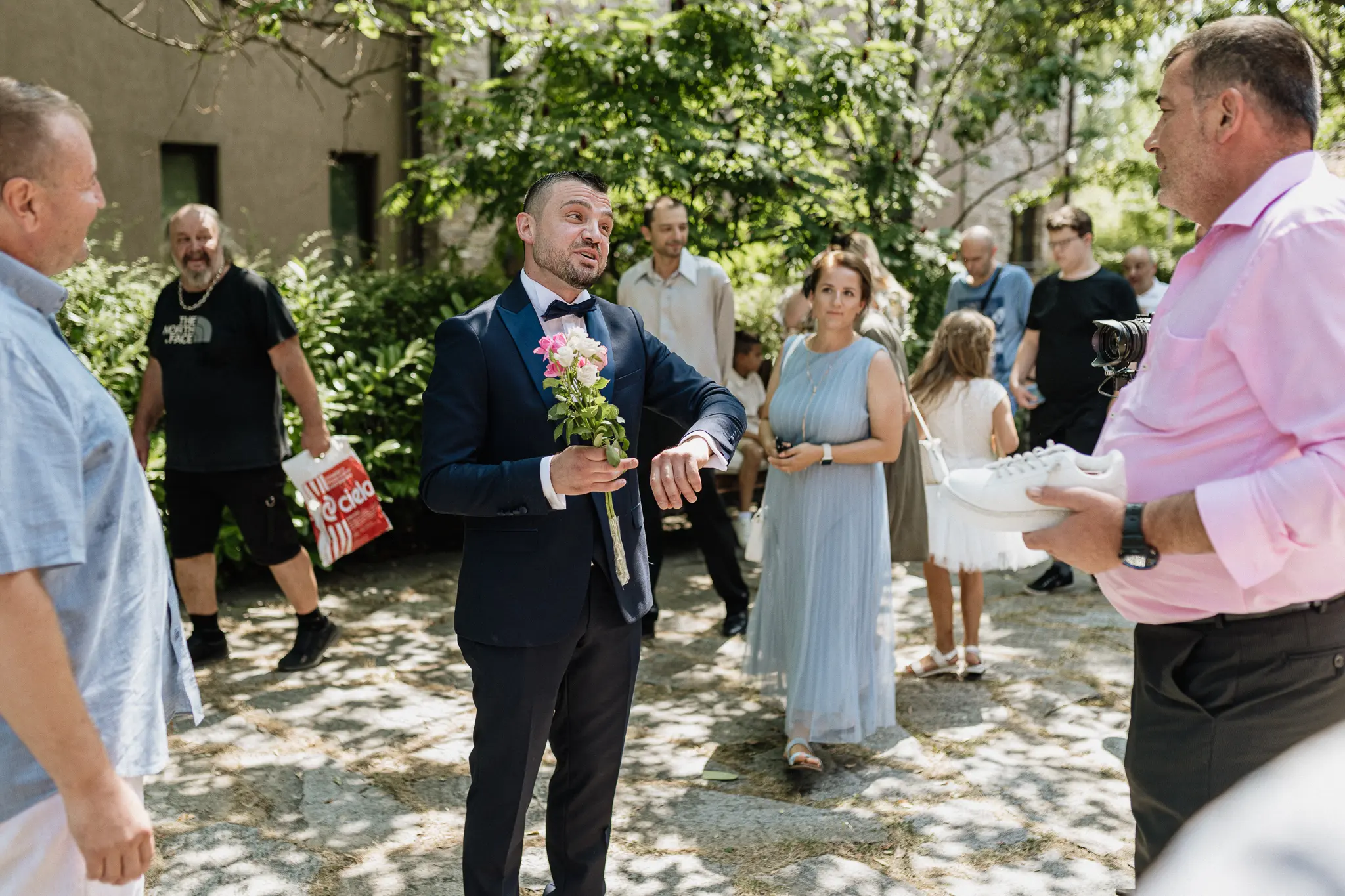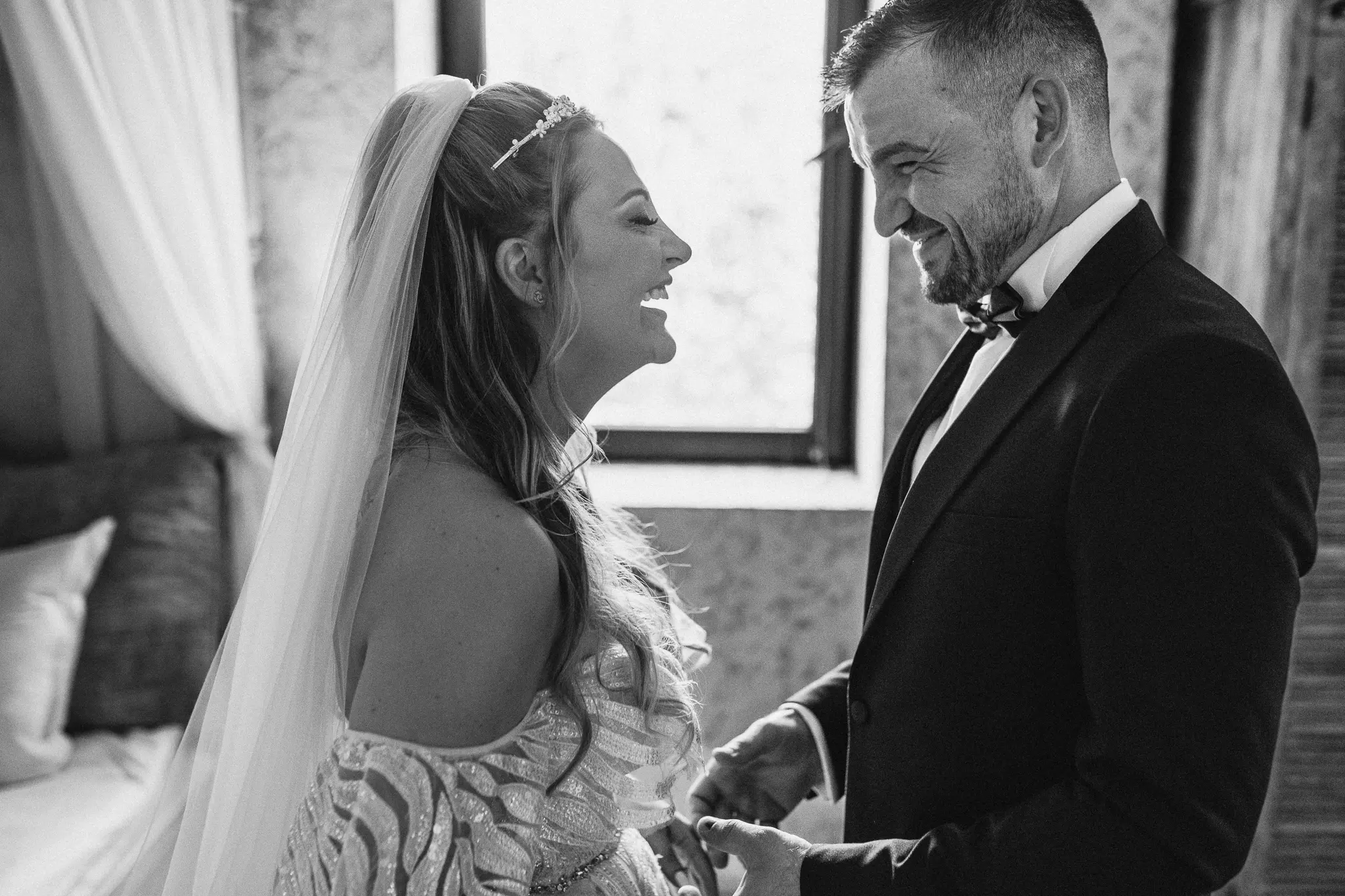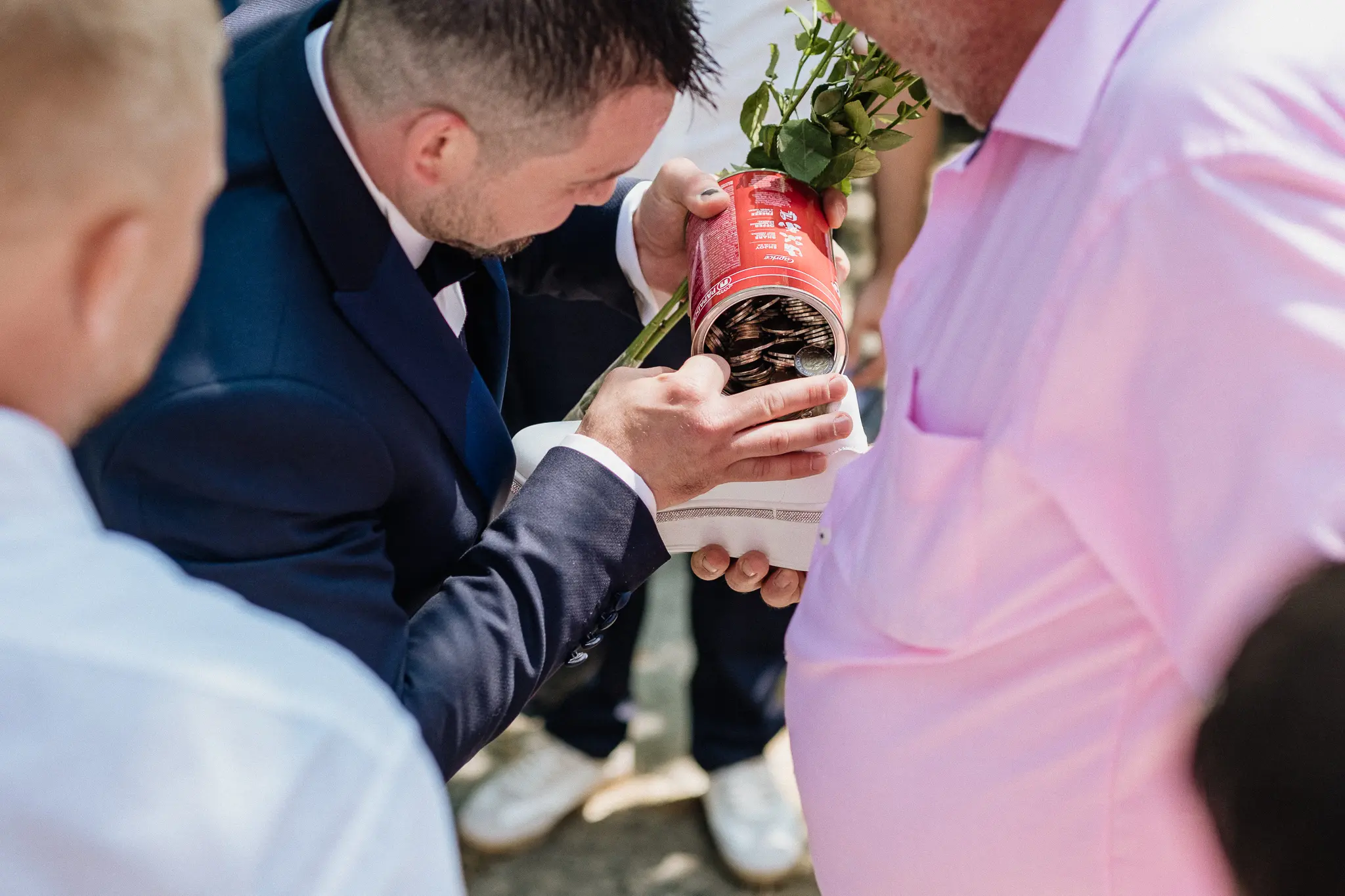 Денят започва с традиционни ритуали и класическо крадене на булката – момент, изпълнен с емоции, усмивки и много настроение. Тези сцени са любими за сватбена фотография, защото улавят автентичните реакции на семейството и гостите.