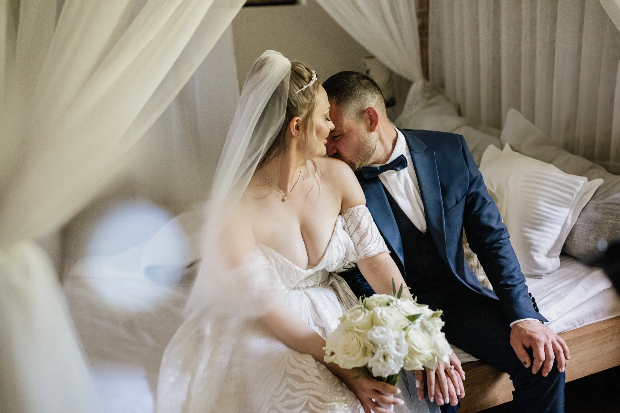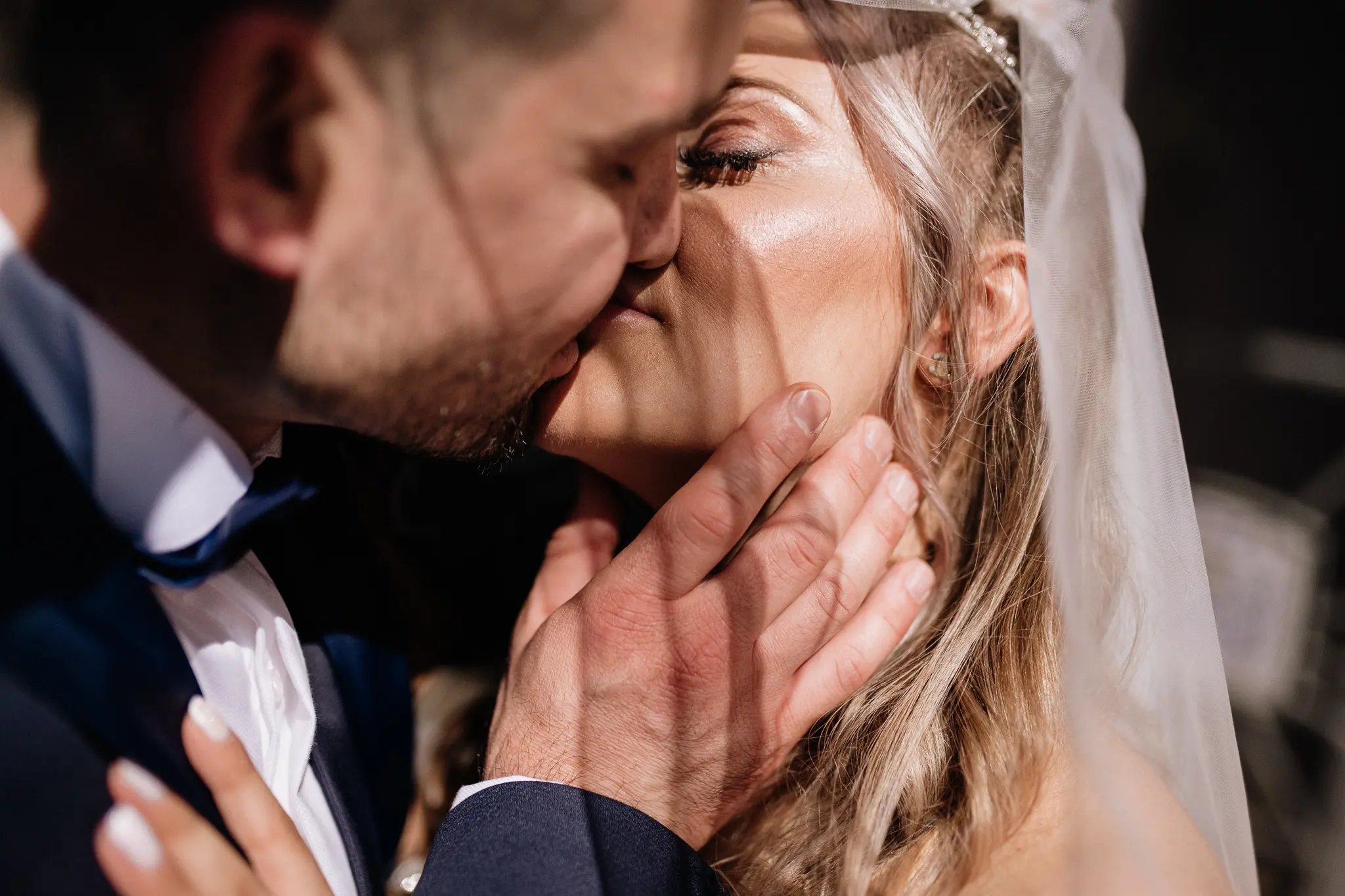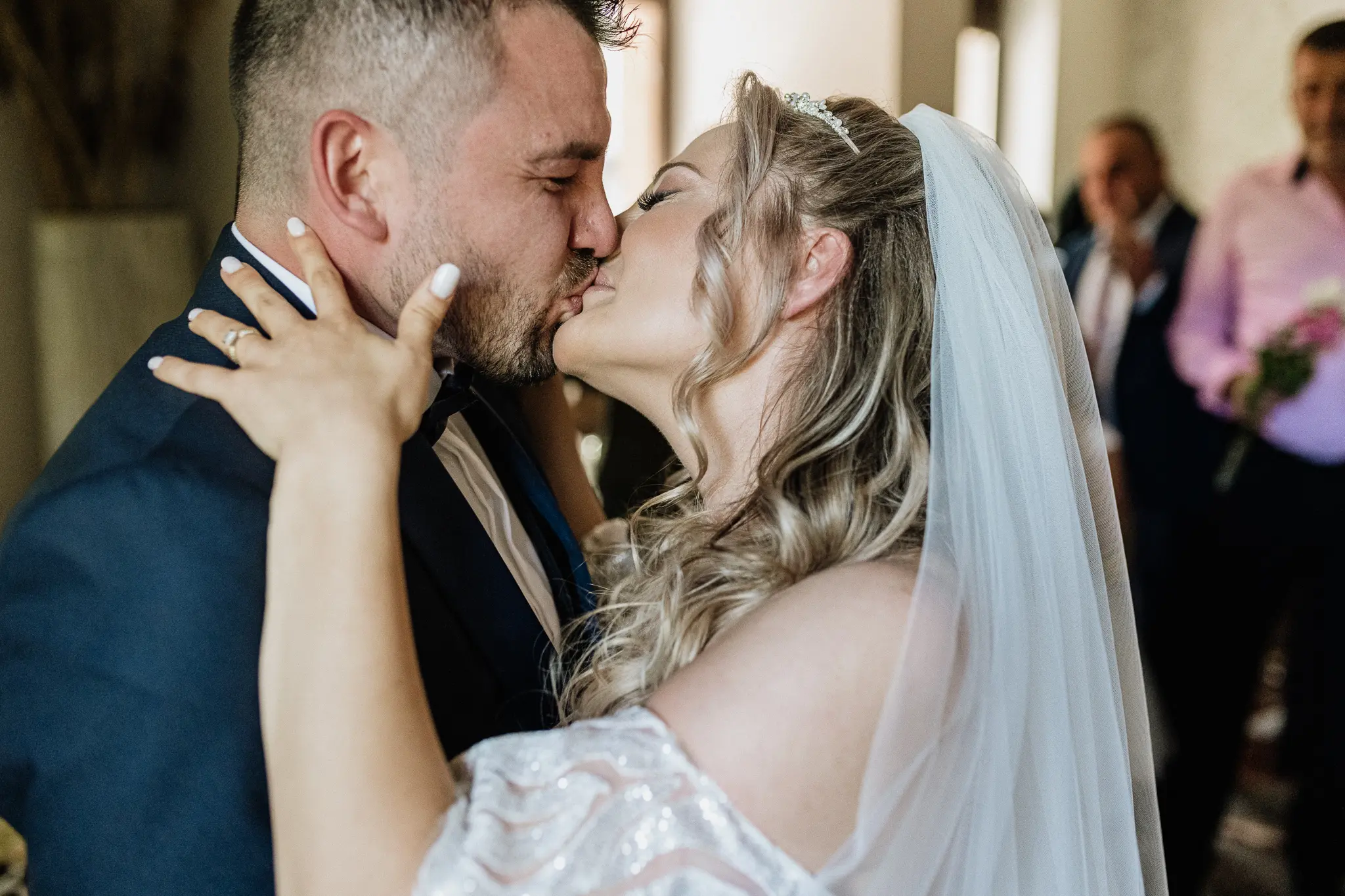 Църковният ритуал придава дълбок смисъл и духовност на сватбения ден. Тържествената атмосфера и светлината създават идеални условия за емоционални и нежни кадри, характерни за класическата сватбена фотография.